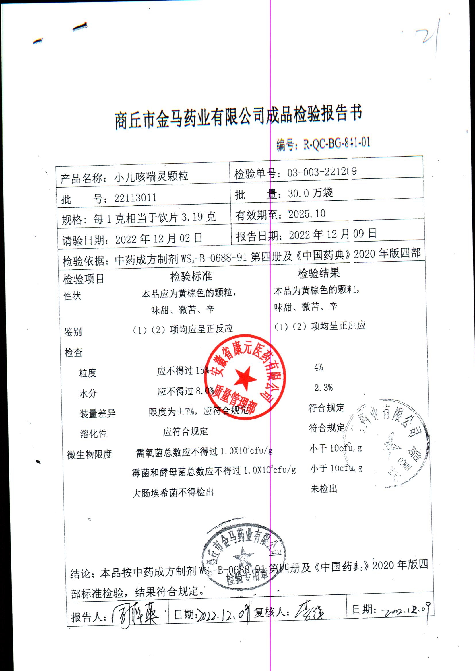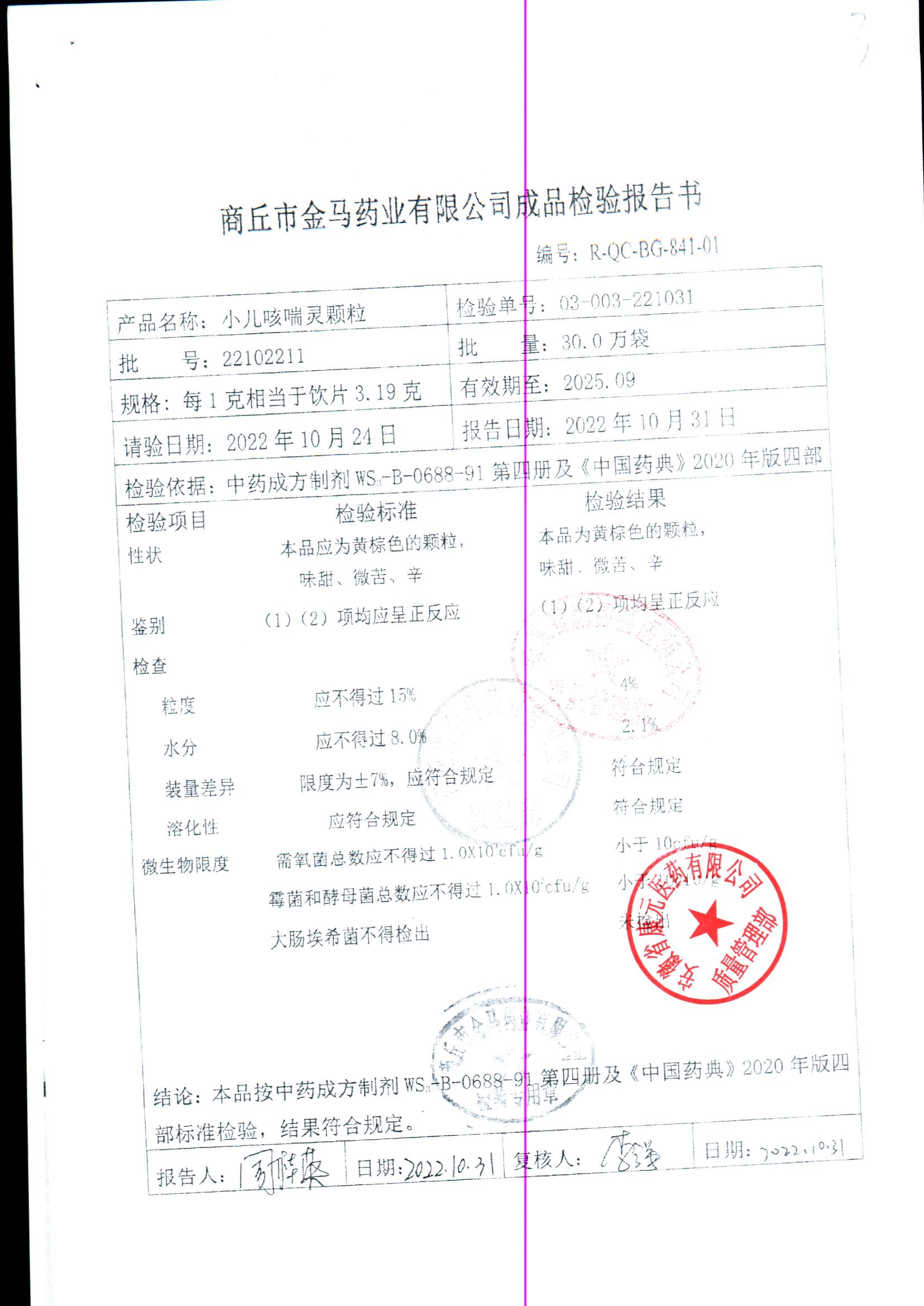 小儿咳喘灵颗粒 | 1克 | 22112211 | 查看详情 |