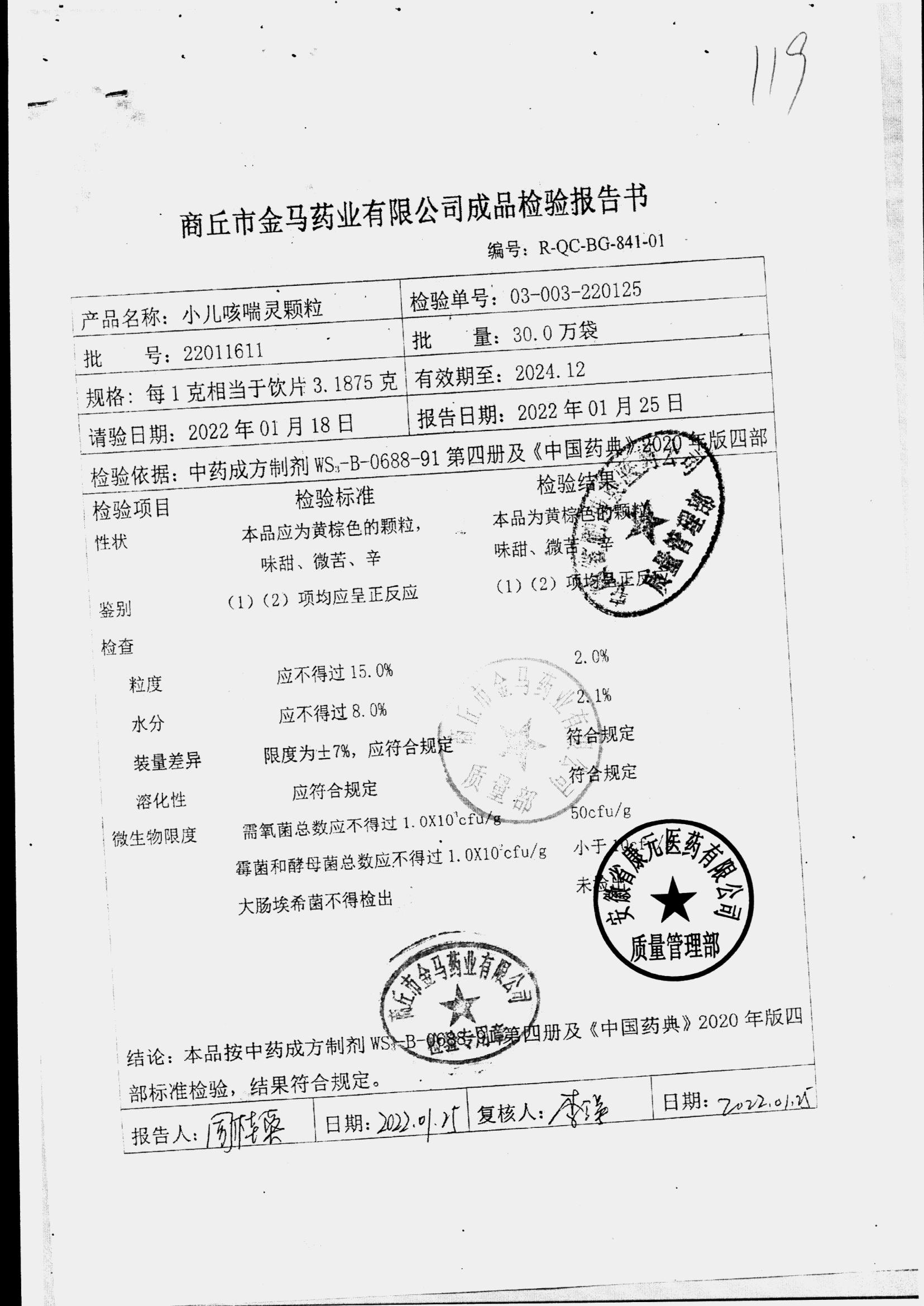 小儿咳喘灵颗粒 | 1克 | 22113011 | 查看详情 |