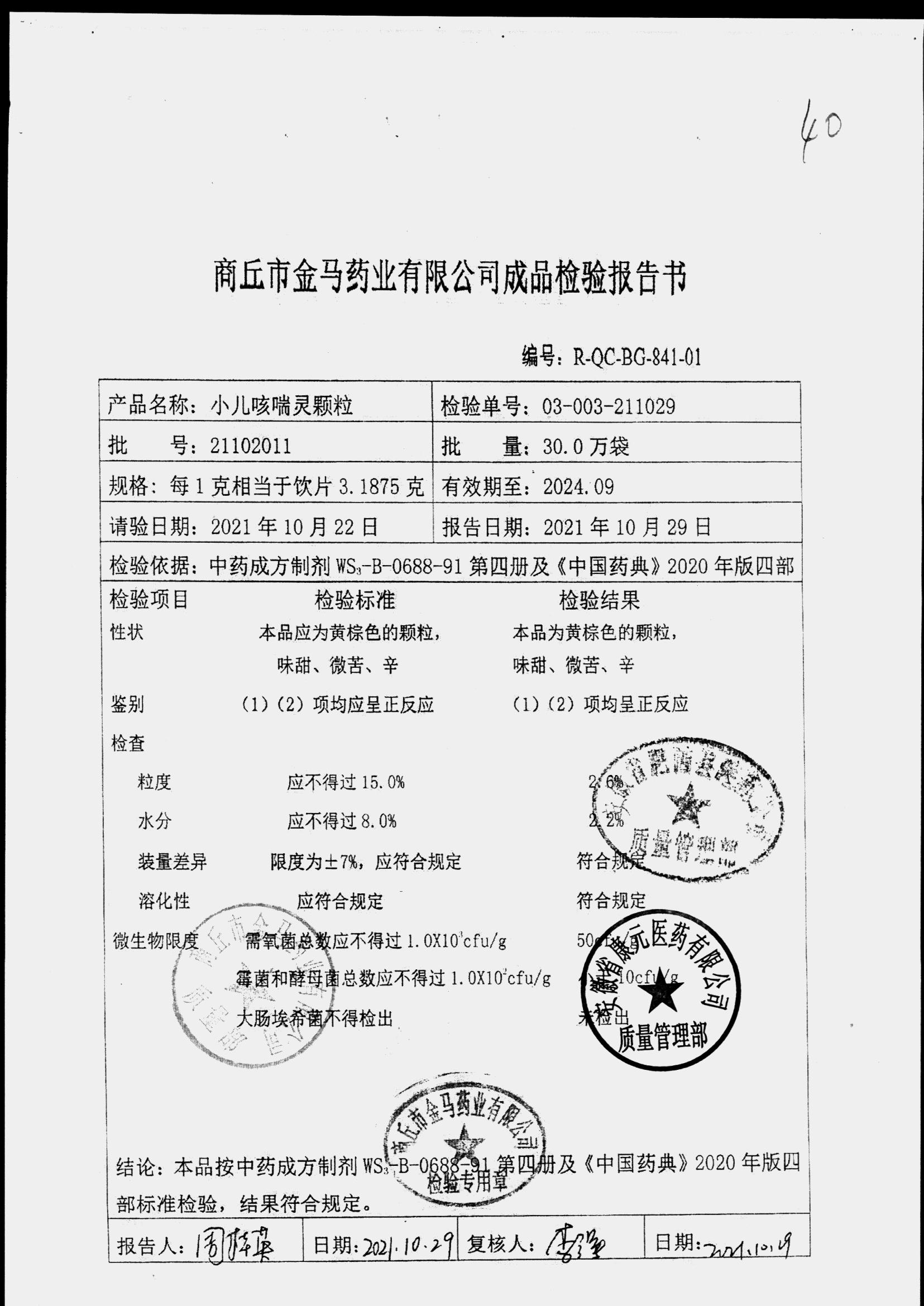 小儿咳喘灵颗粒 | 1克 | 21102011 | 查看详情 |