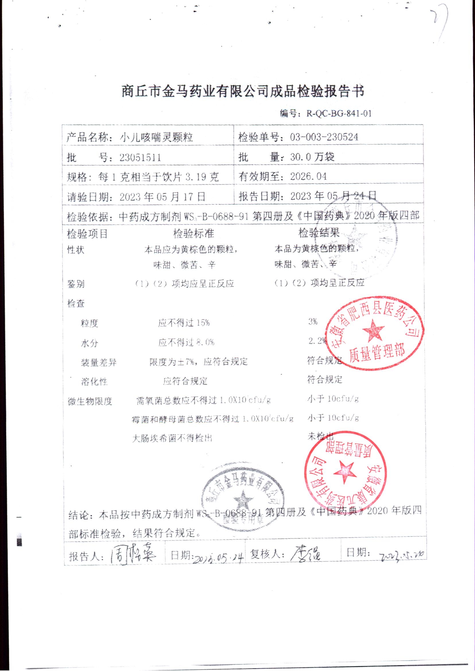 小儿咳喘灵颗粒 | 1克 | 23051511 | 查看详情 |
