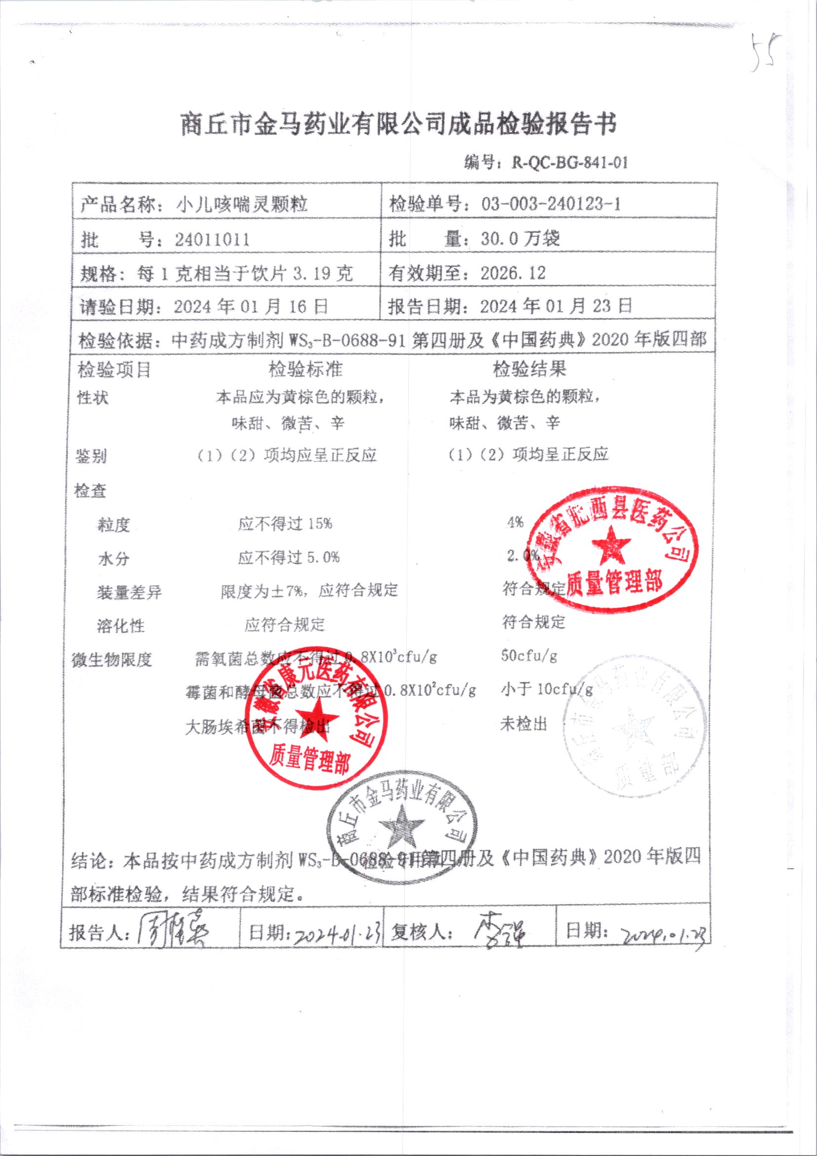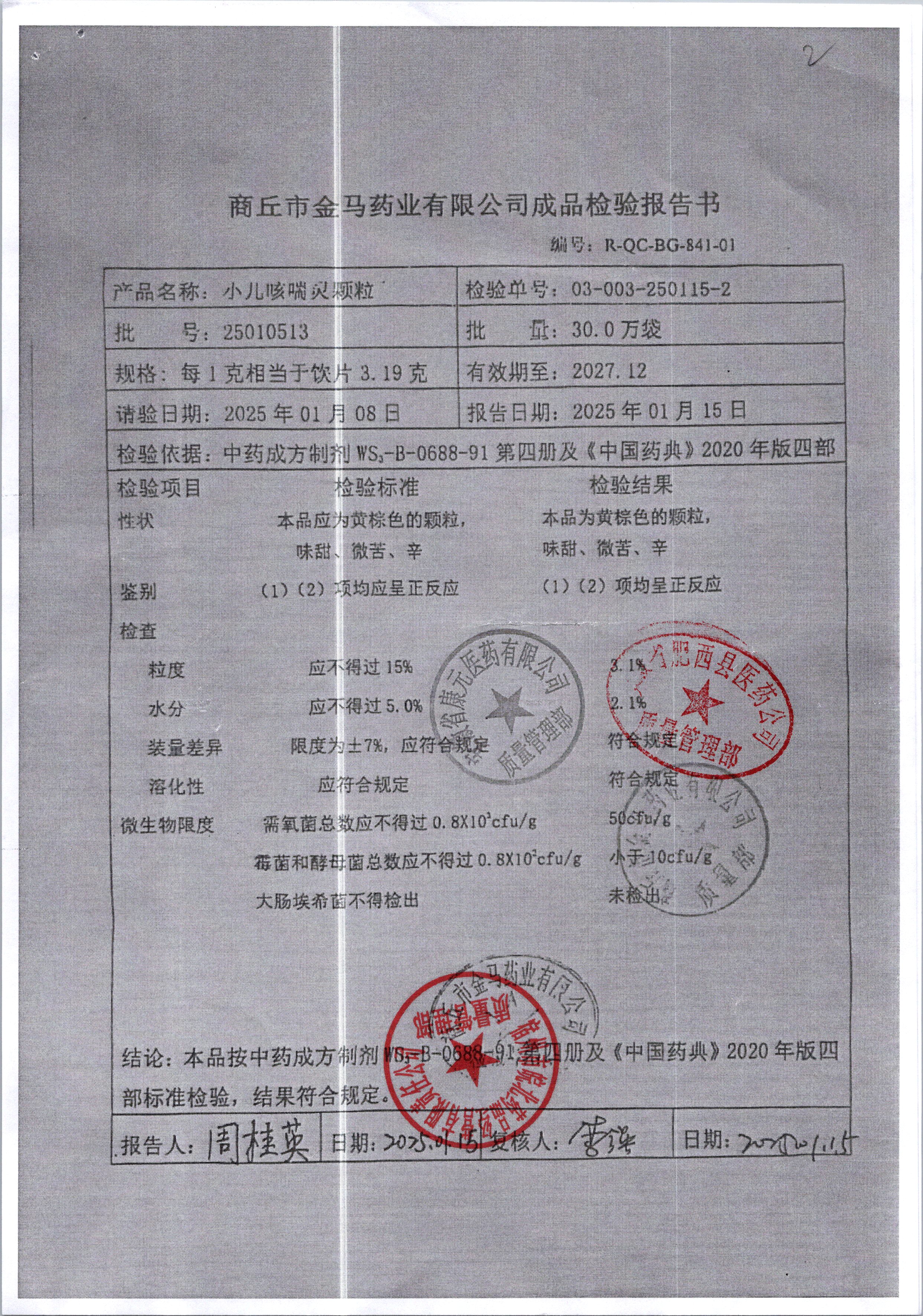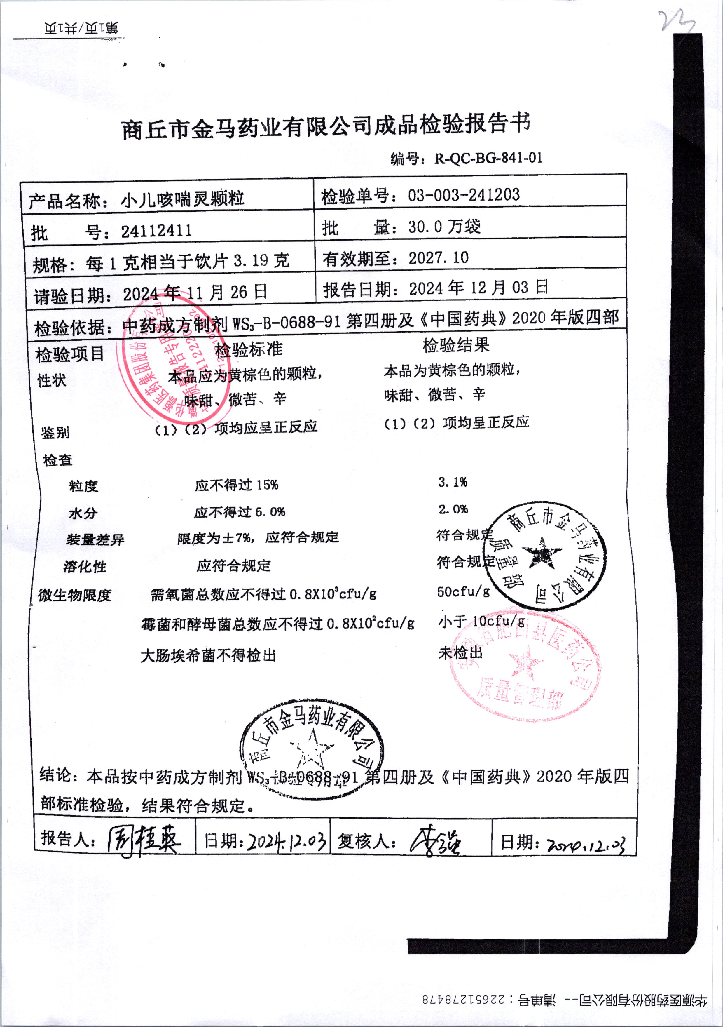 小儿咳喘灵颗粒 | 1克 | 24011011 | 查看详情 |