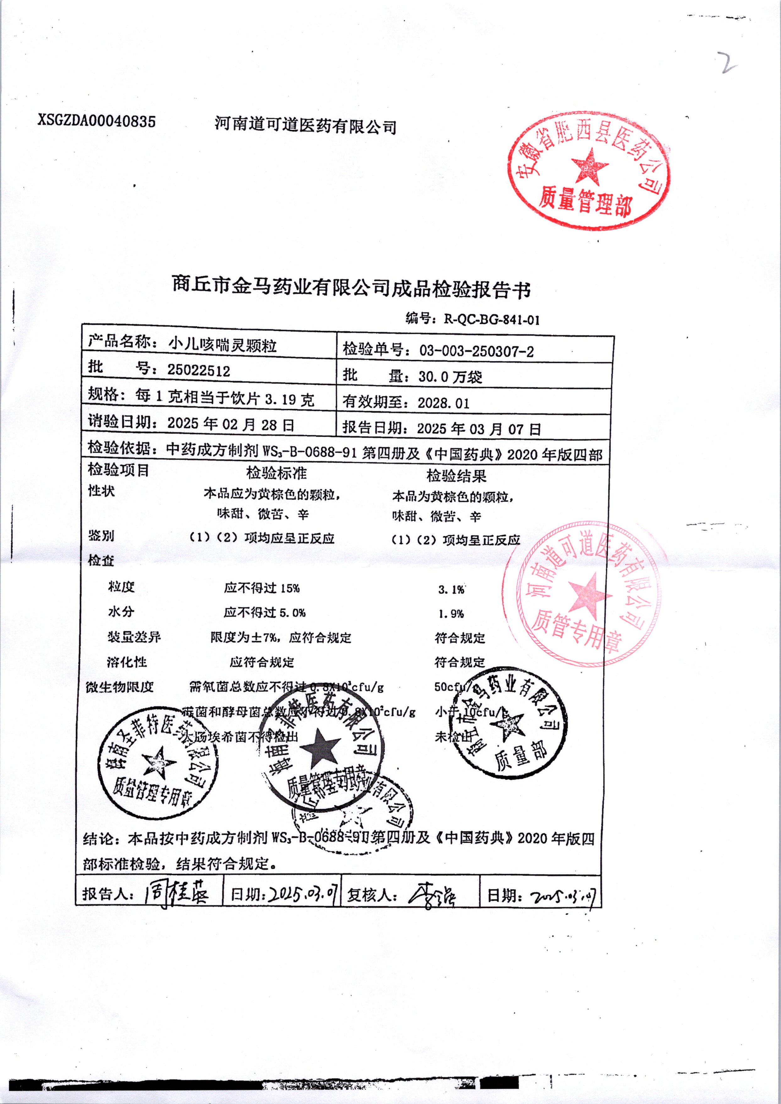 | 小儿咳喘灵颗粒 | 1克 | 25010513 | 查看详情 |