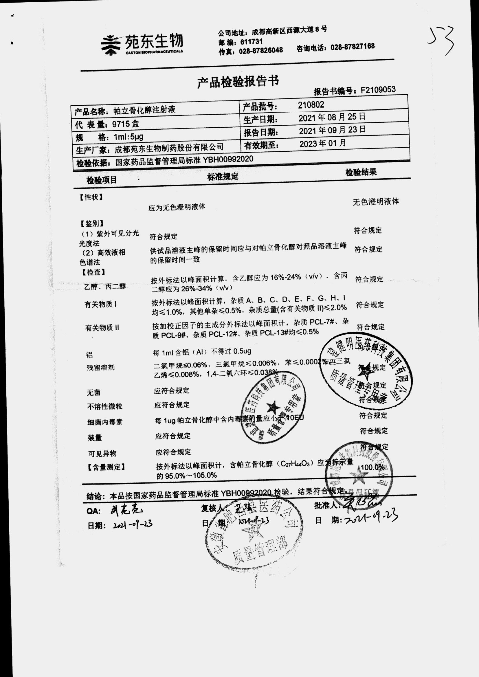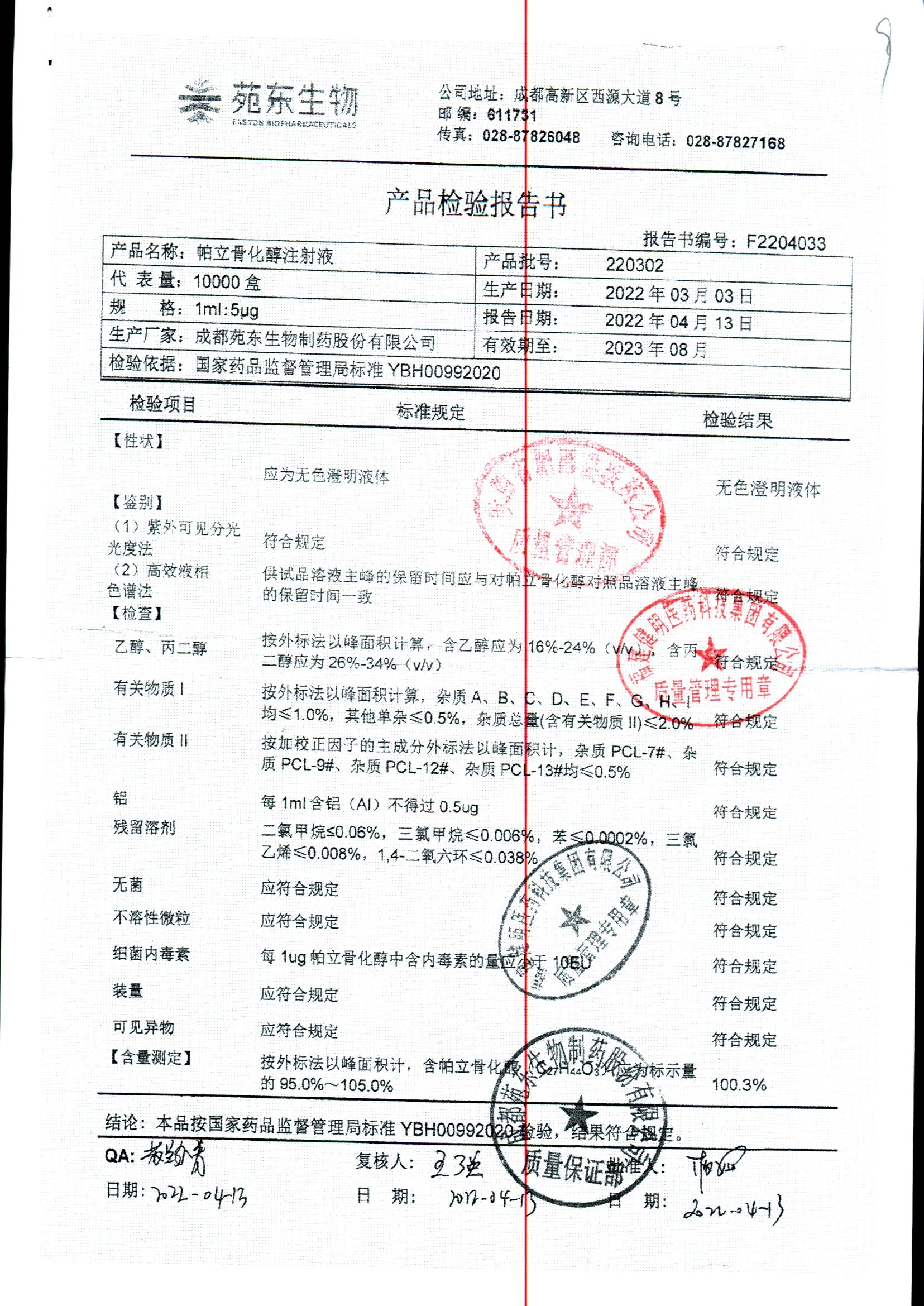 药检报告