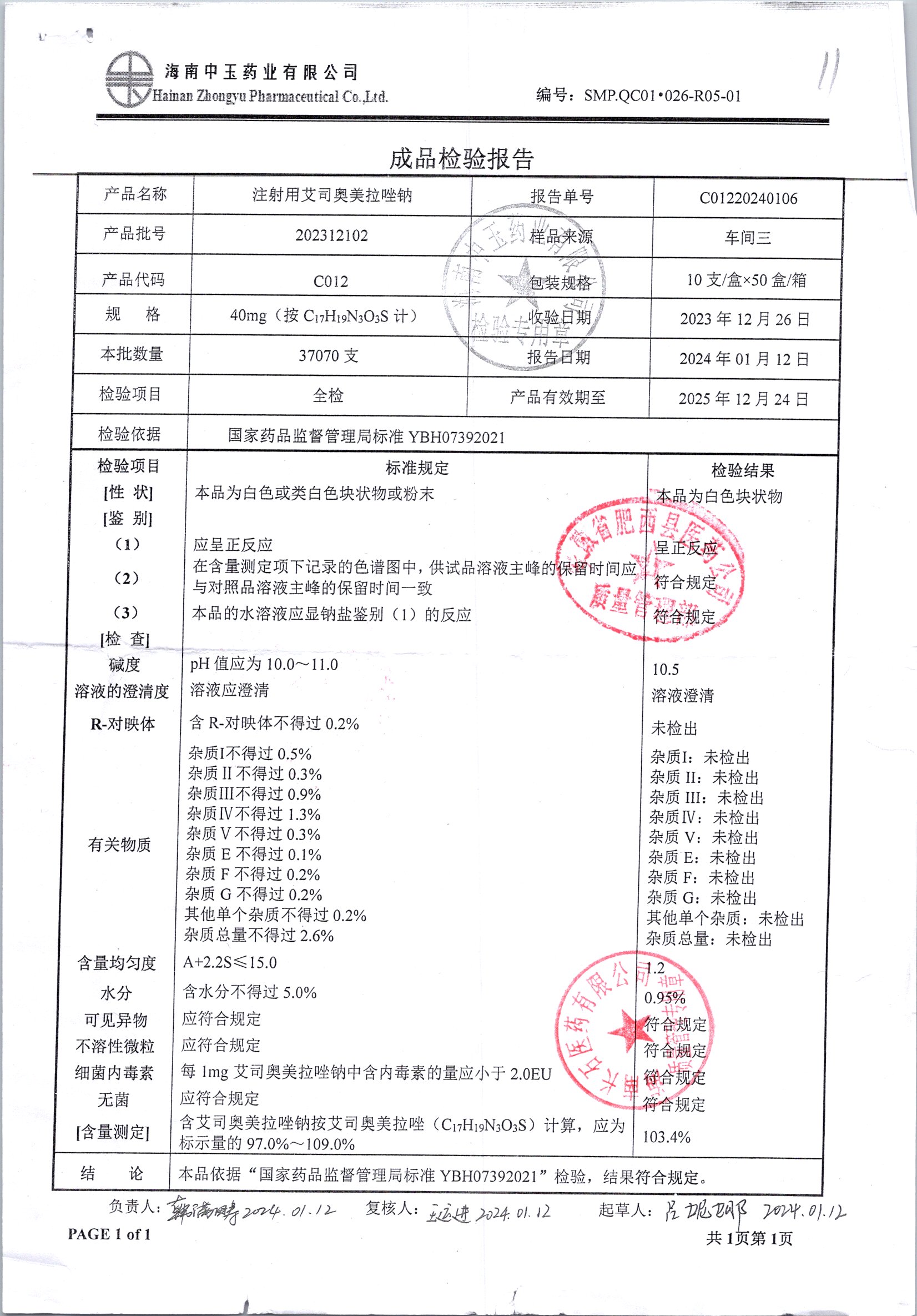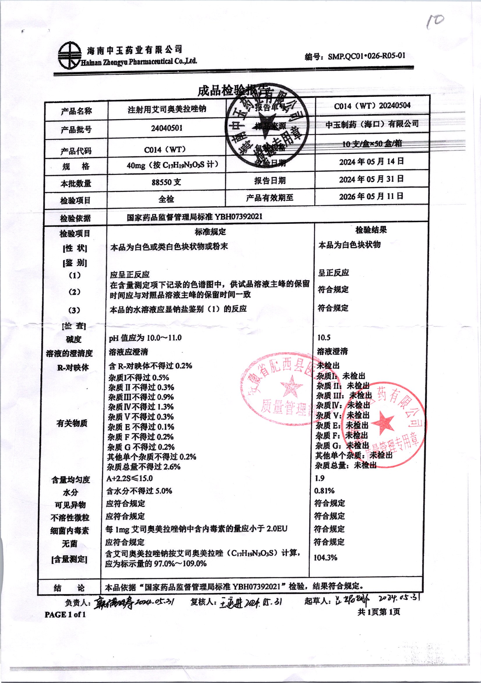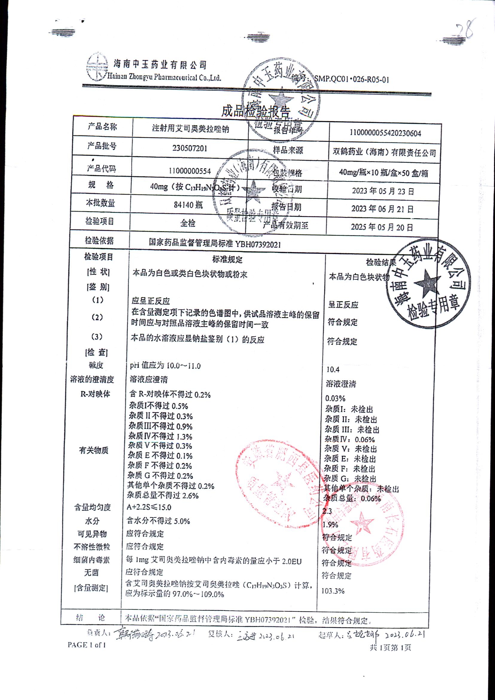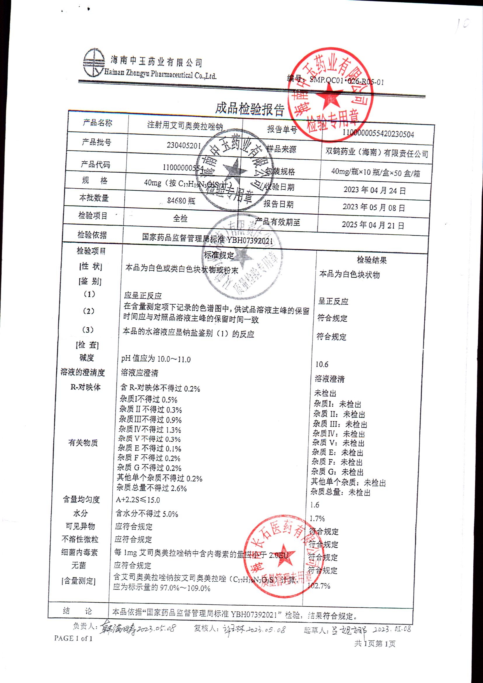 注射用艾司奥美拉唑钠 | 40mgx10支 | 24040501 | 查看详情 |