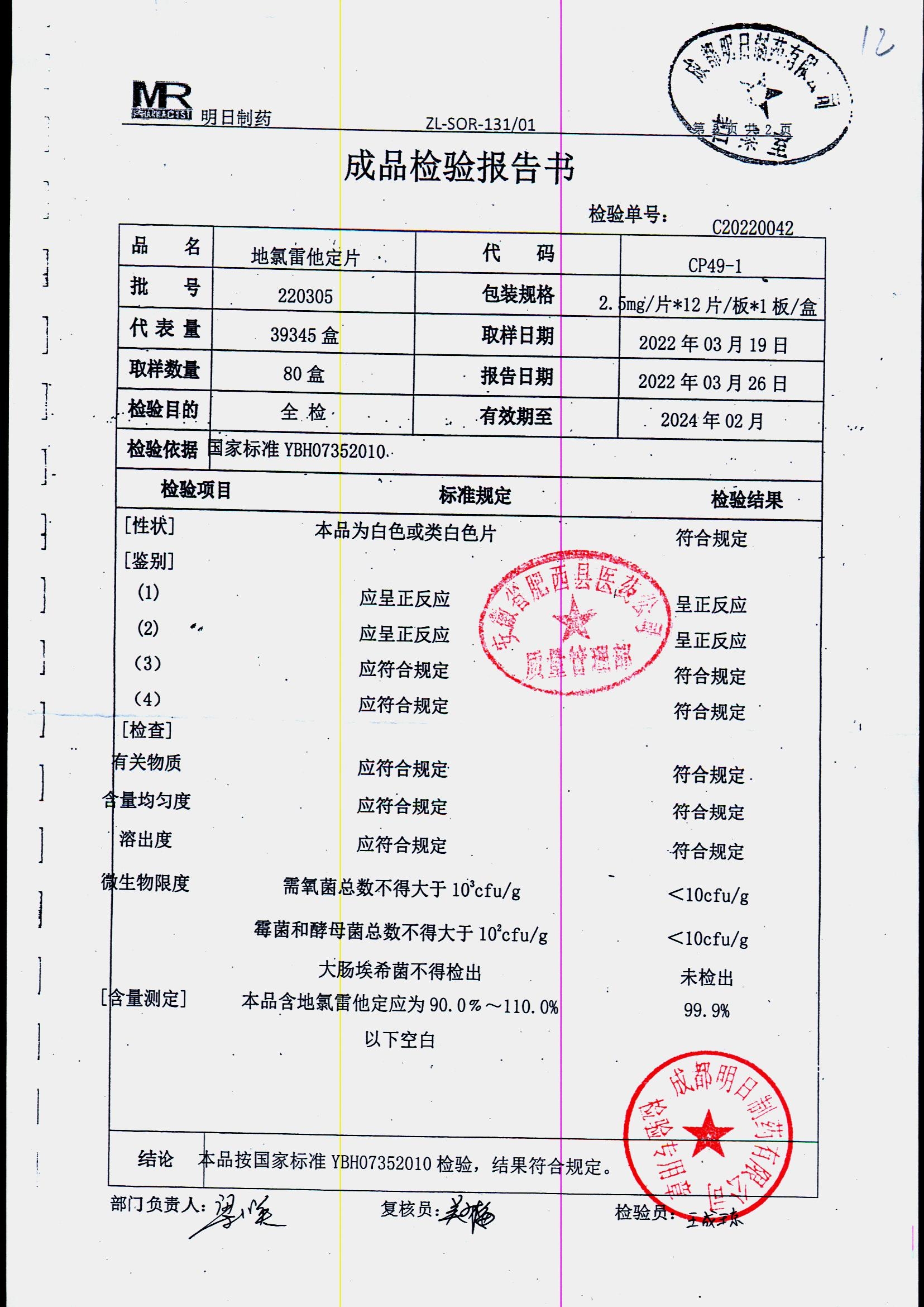 地氯雷他定片 | 2.5mg*12片 | 220305 | 查看详情 |