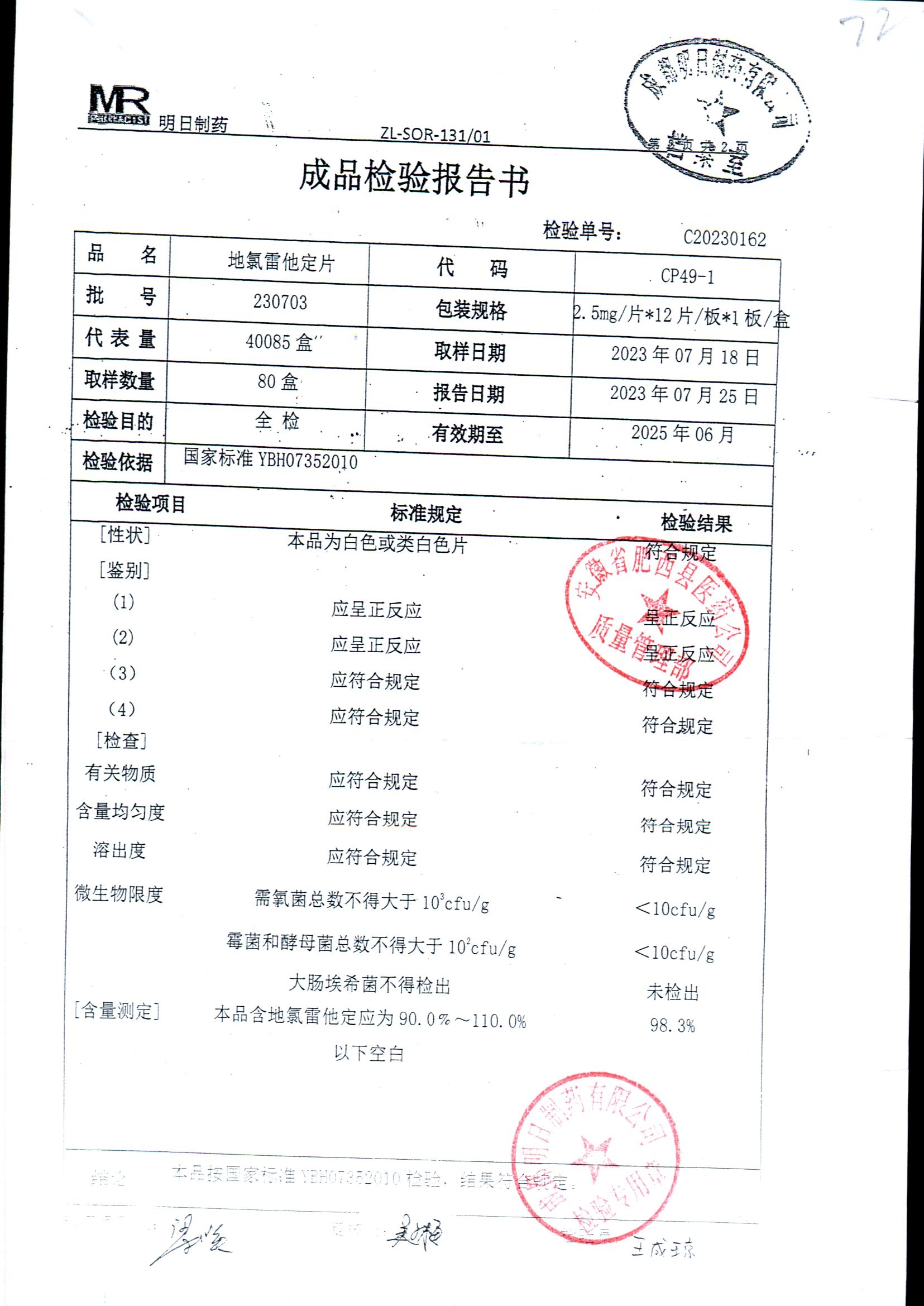 地氯雷他定片 | 2.5mg*12片 | 230703 | 查看详情 |