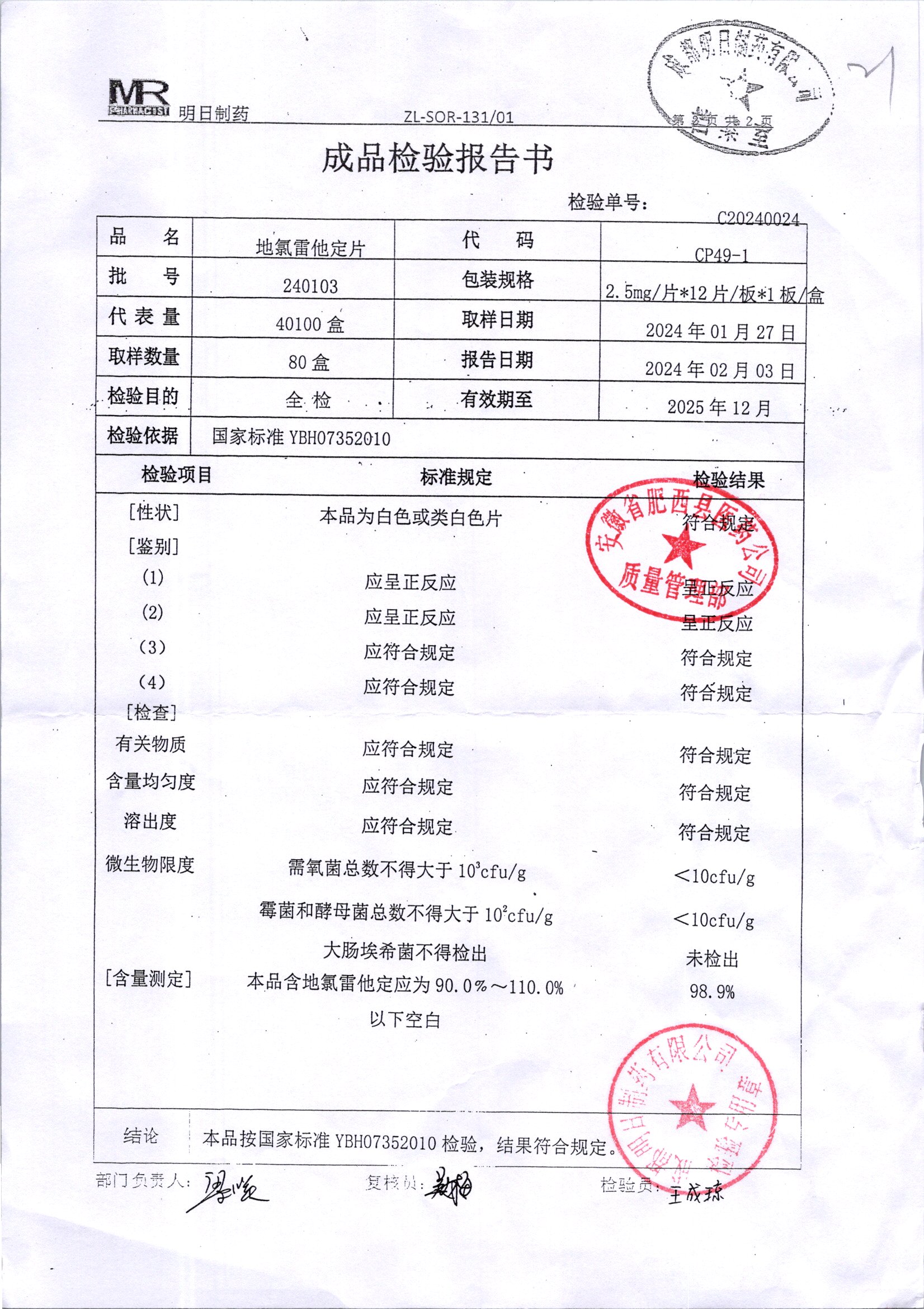 地氯雷他定片 | 2.5mg*12片 | 240103 | 查看详情 |