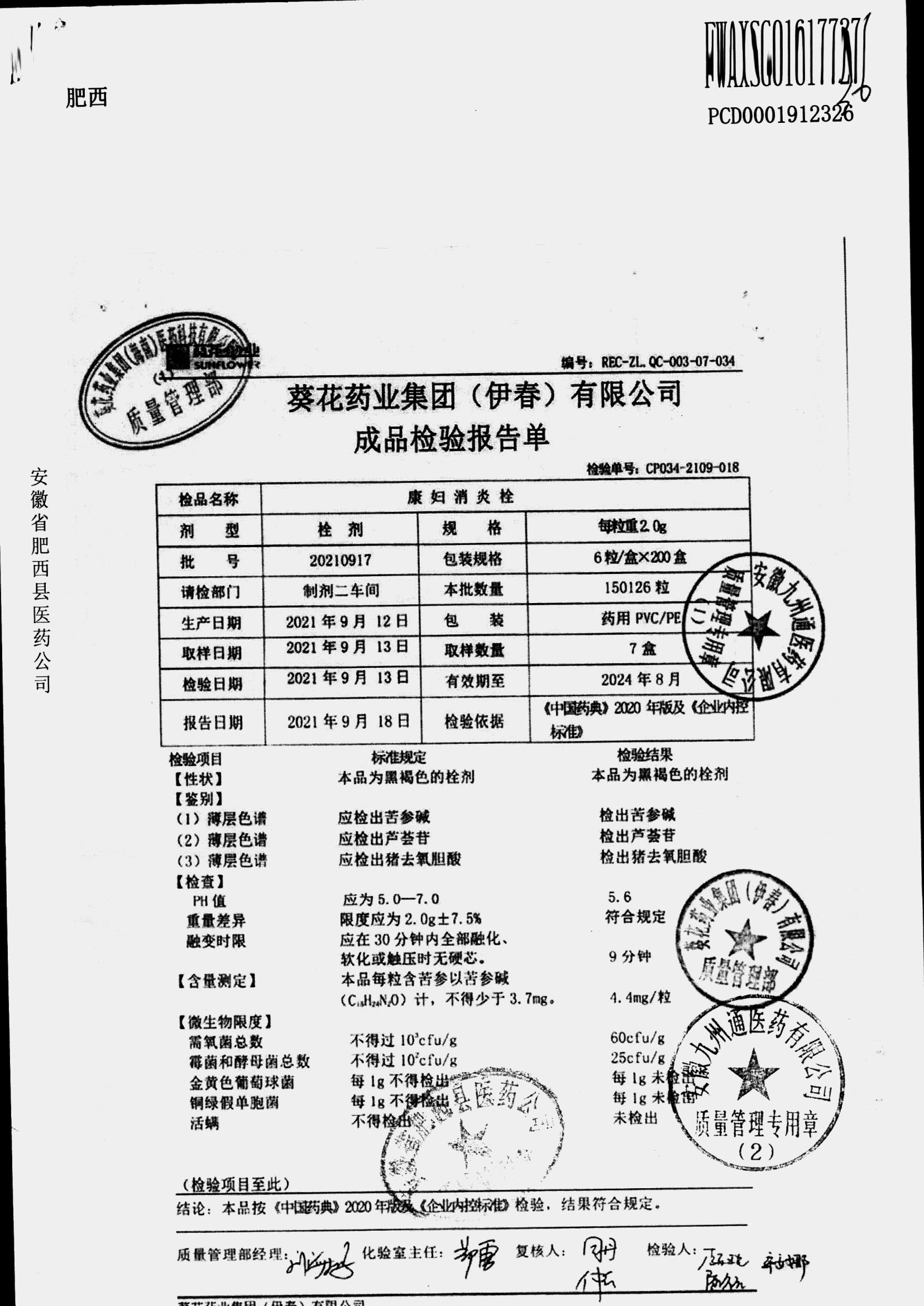 康妇消炎栓 | 2.0g*6粒 | 20210918 | 查看详情 |