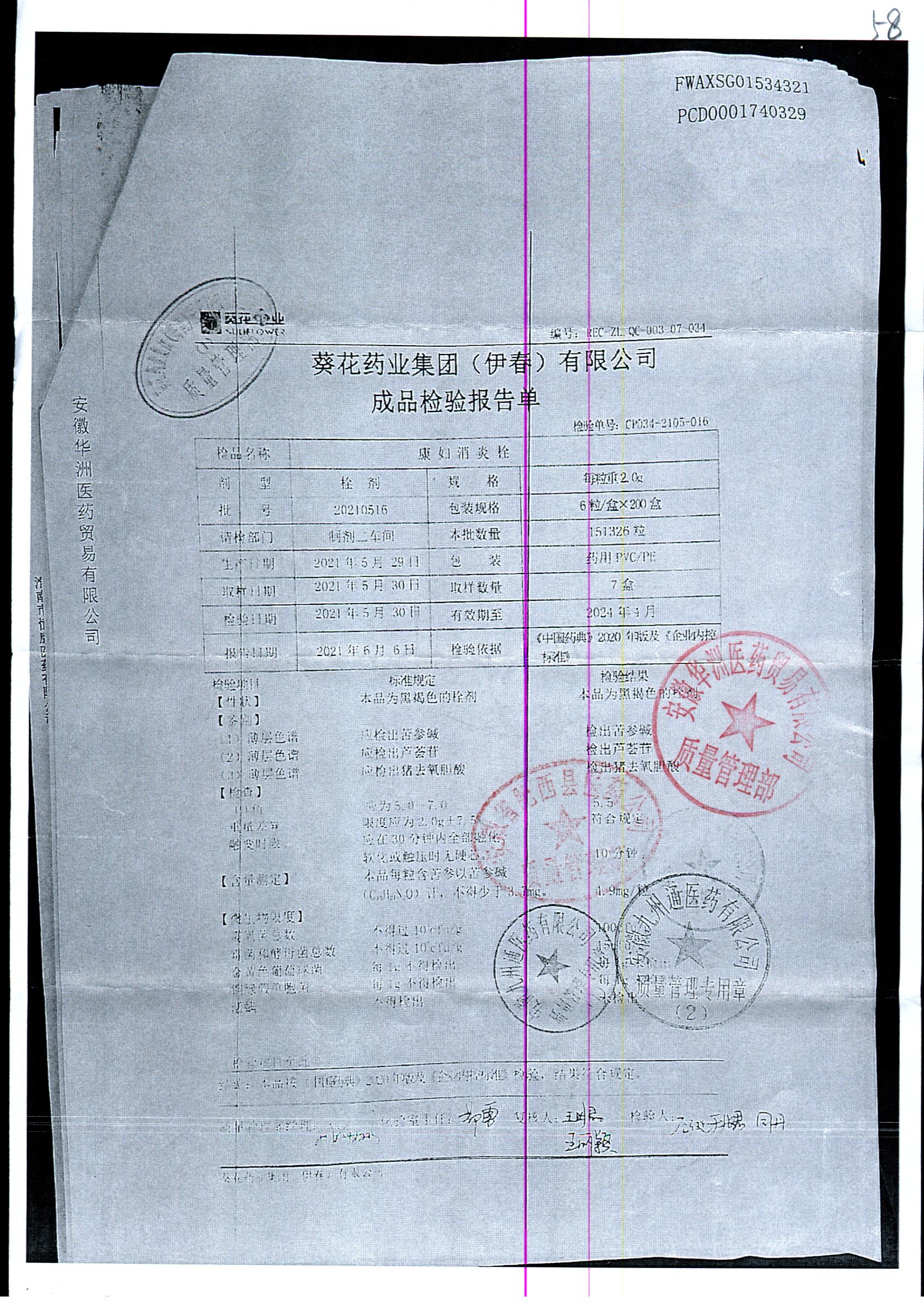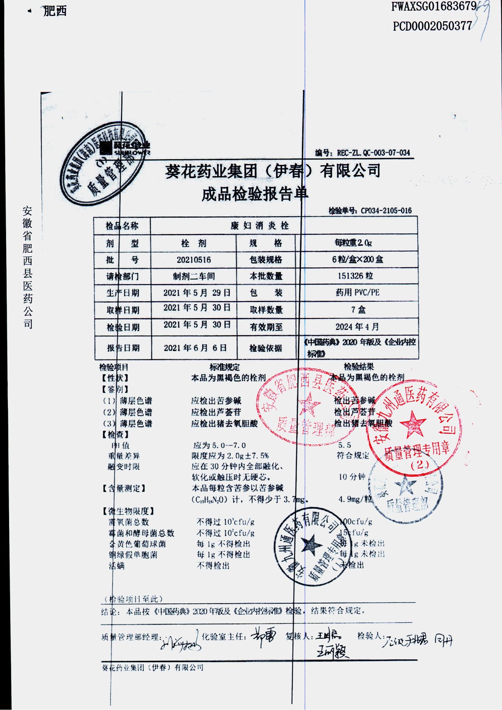 康妇消炎栓 | 2.0g*6粒 | 20210516 | 查看详情 |