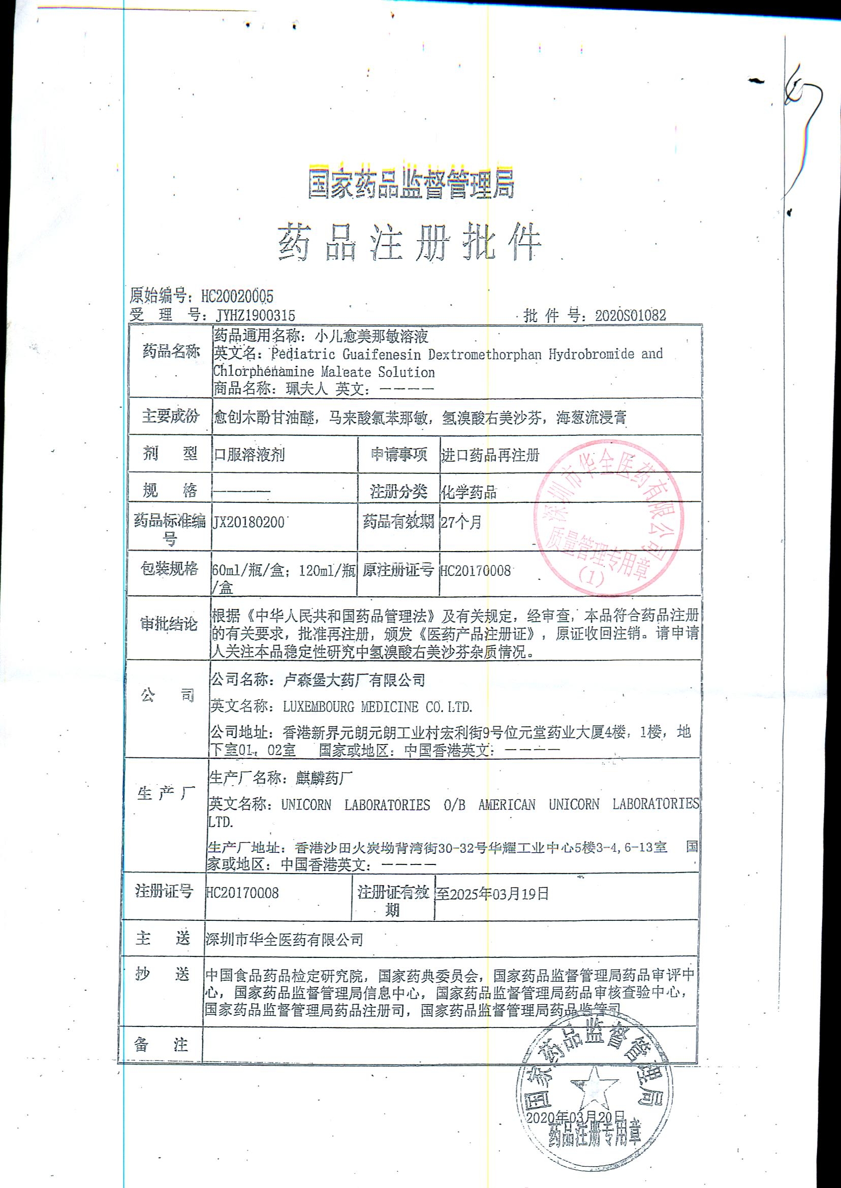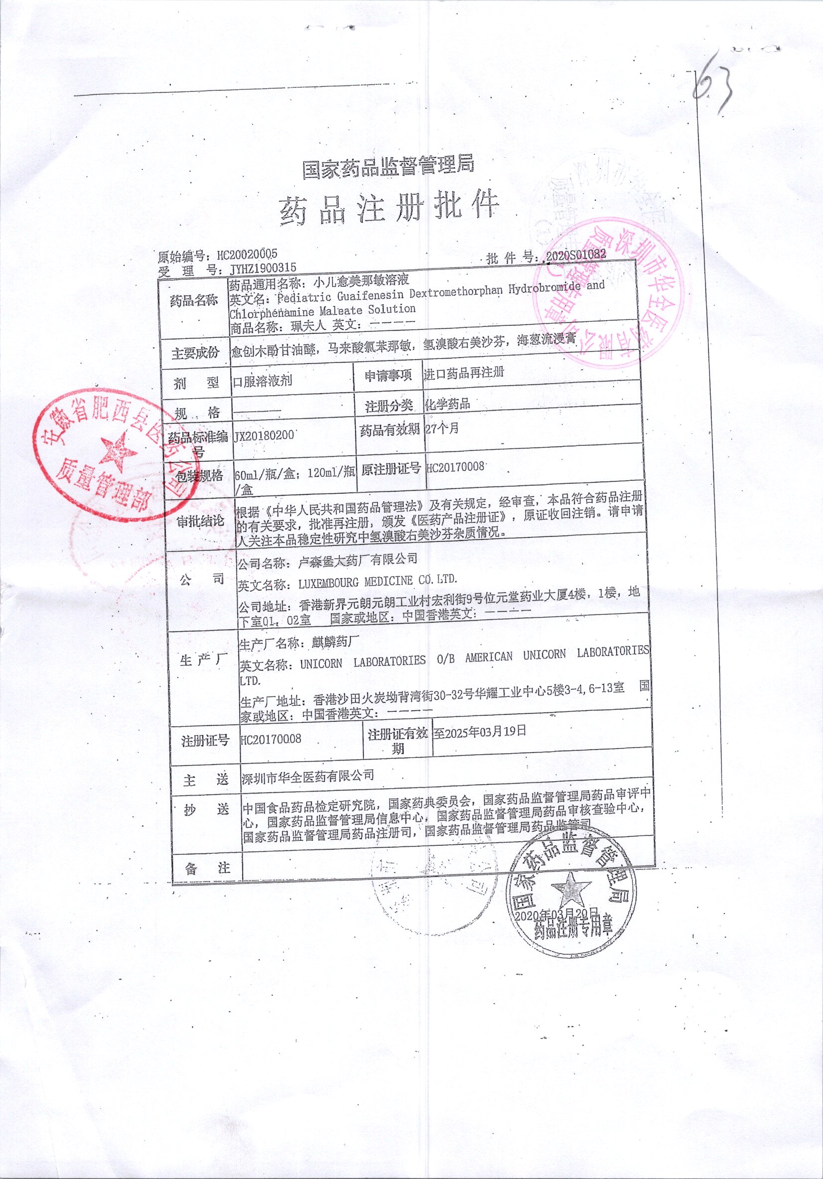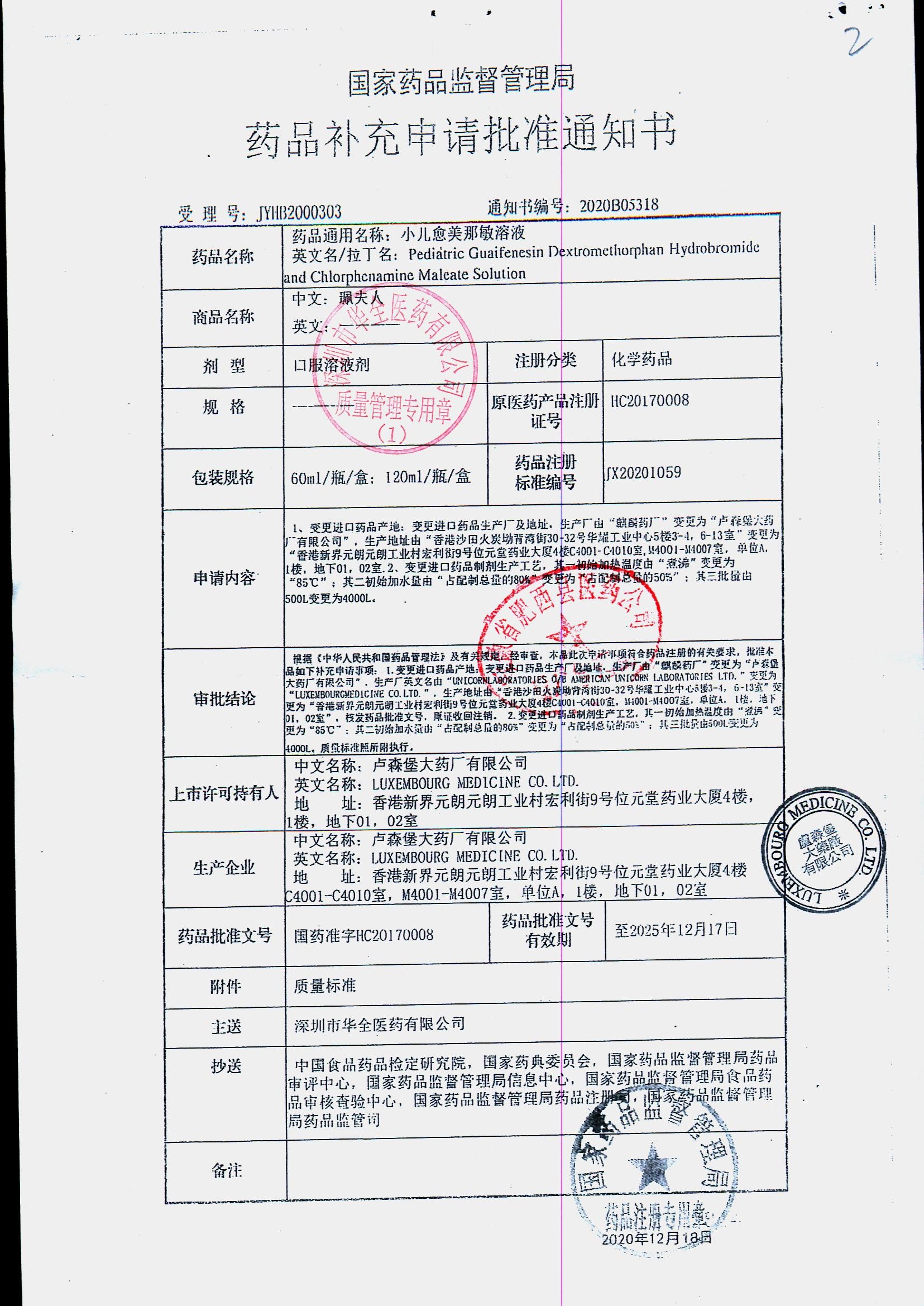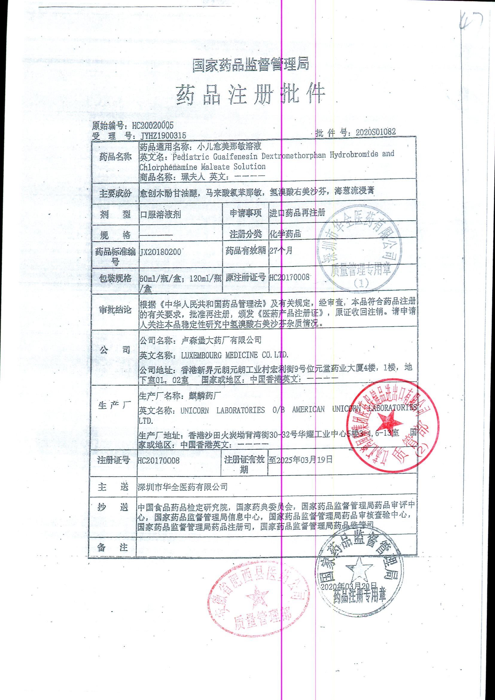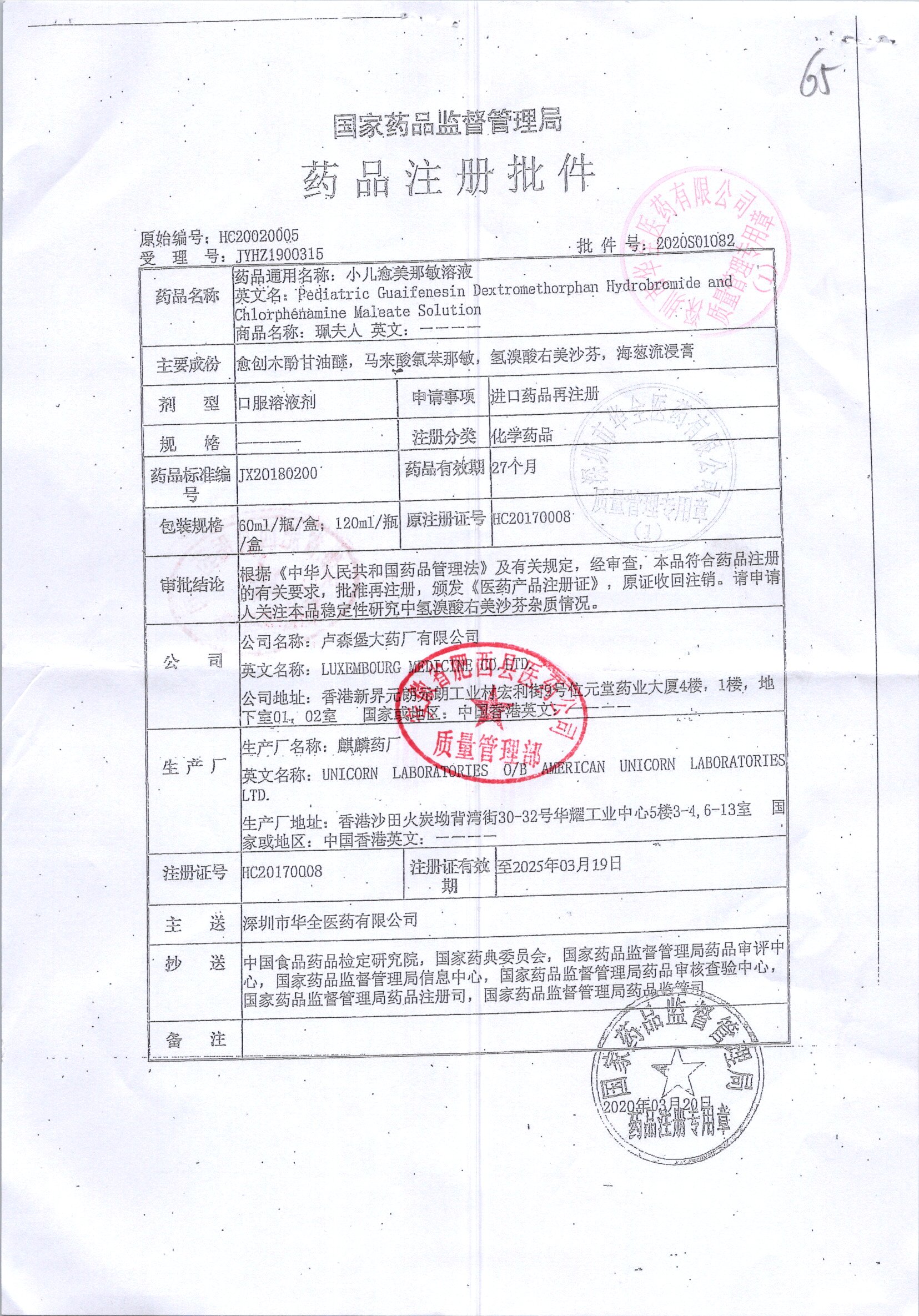 小儿愈美那敏溶液 | 60ml | 2023015/1 | 查看详情 |