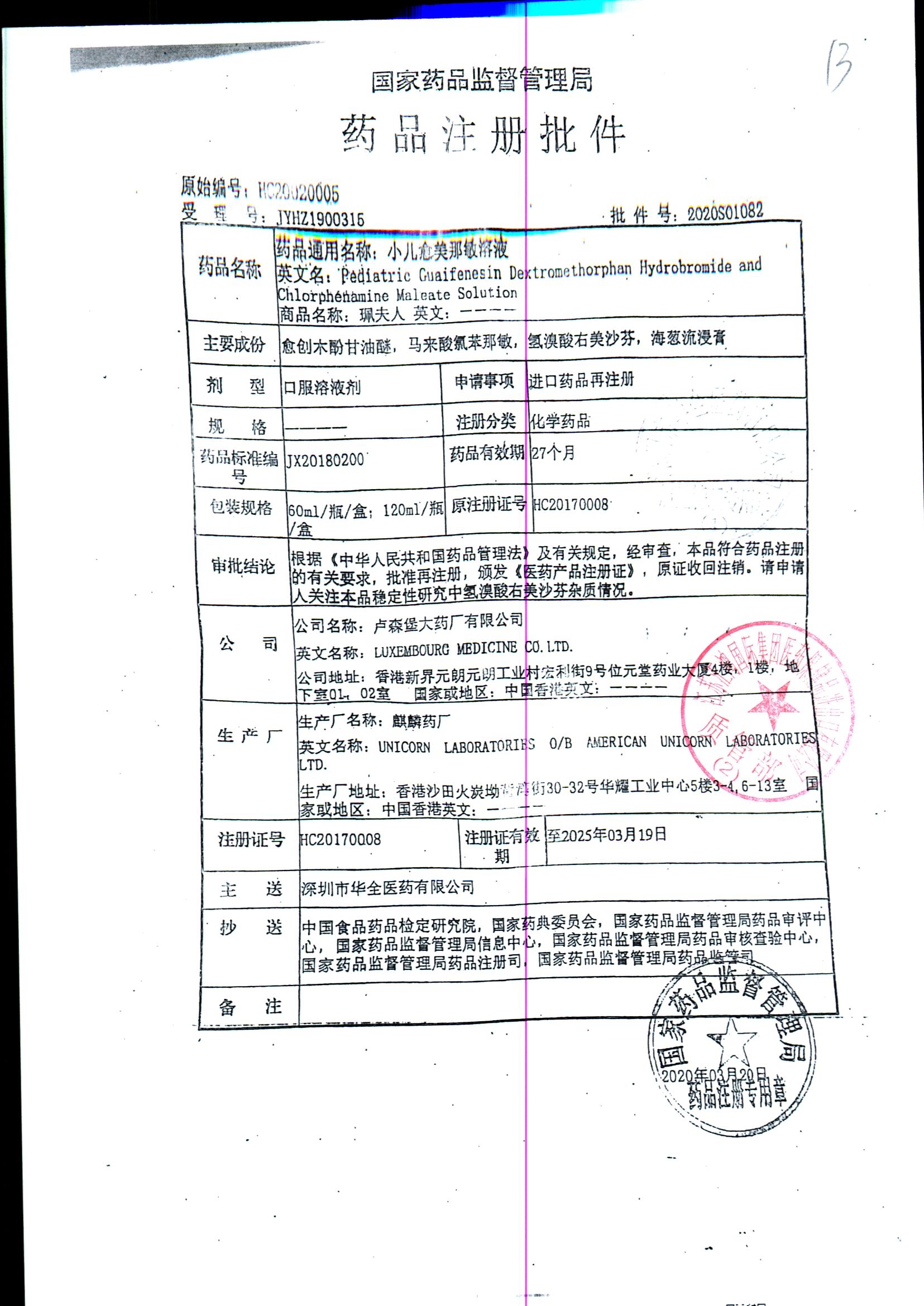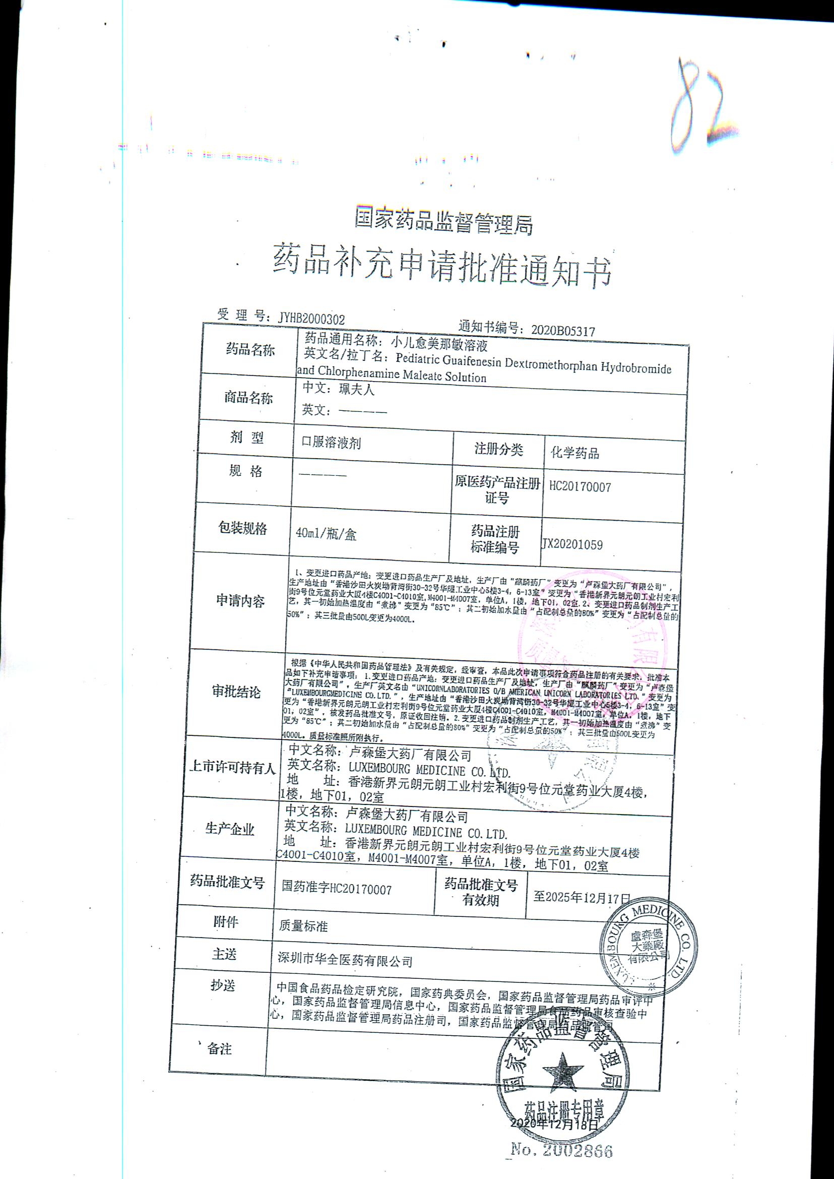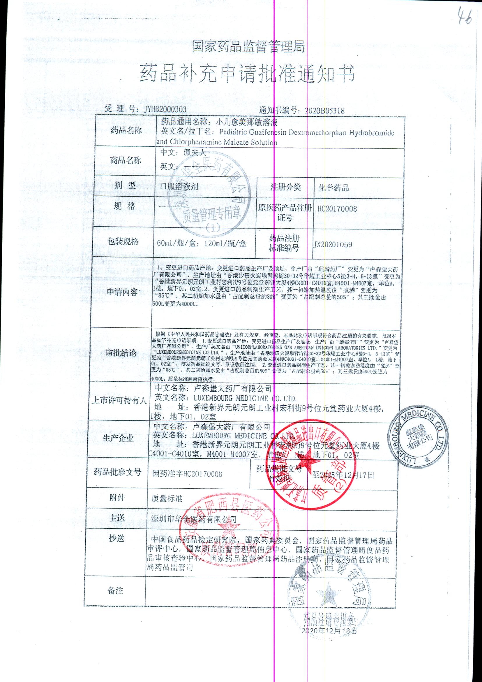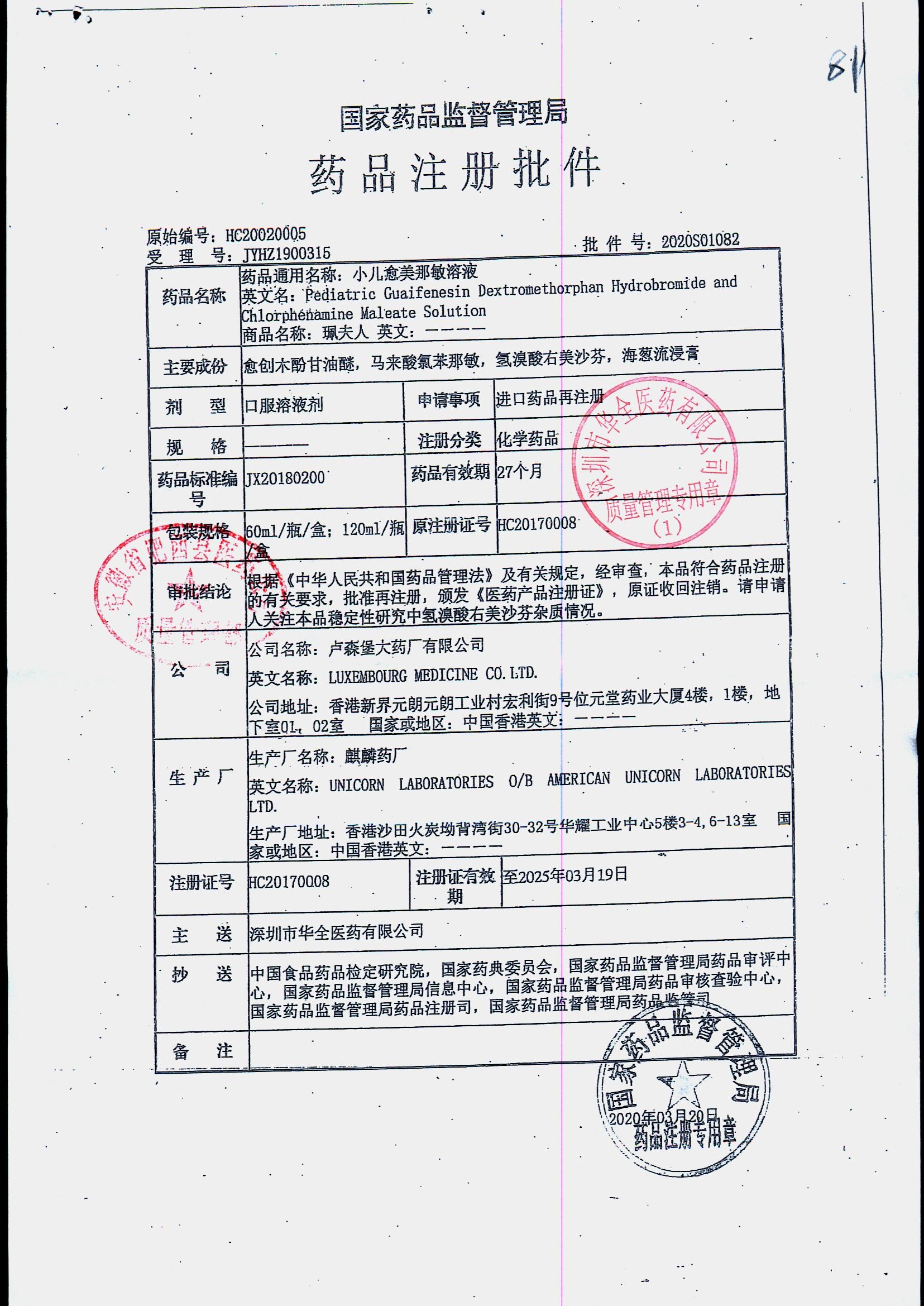小儿愈美那敏溶液 | 60ml | 2023015/1 | 查看详情 |