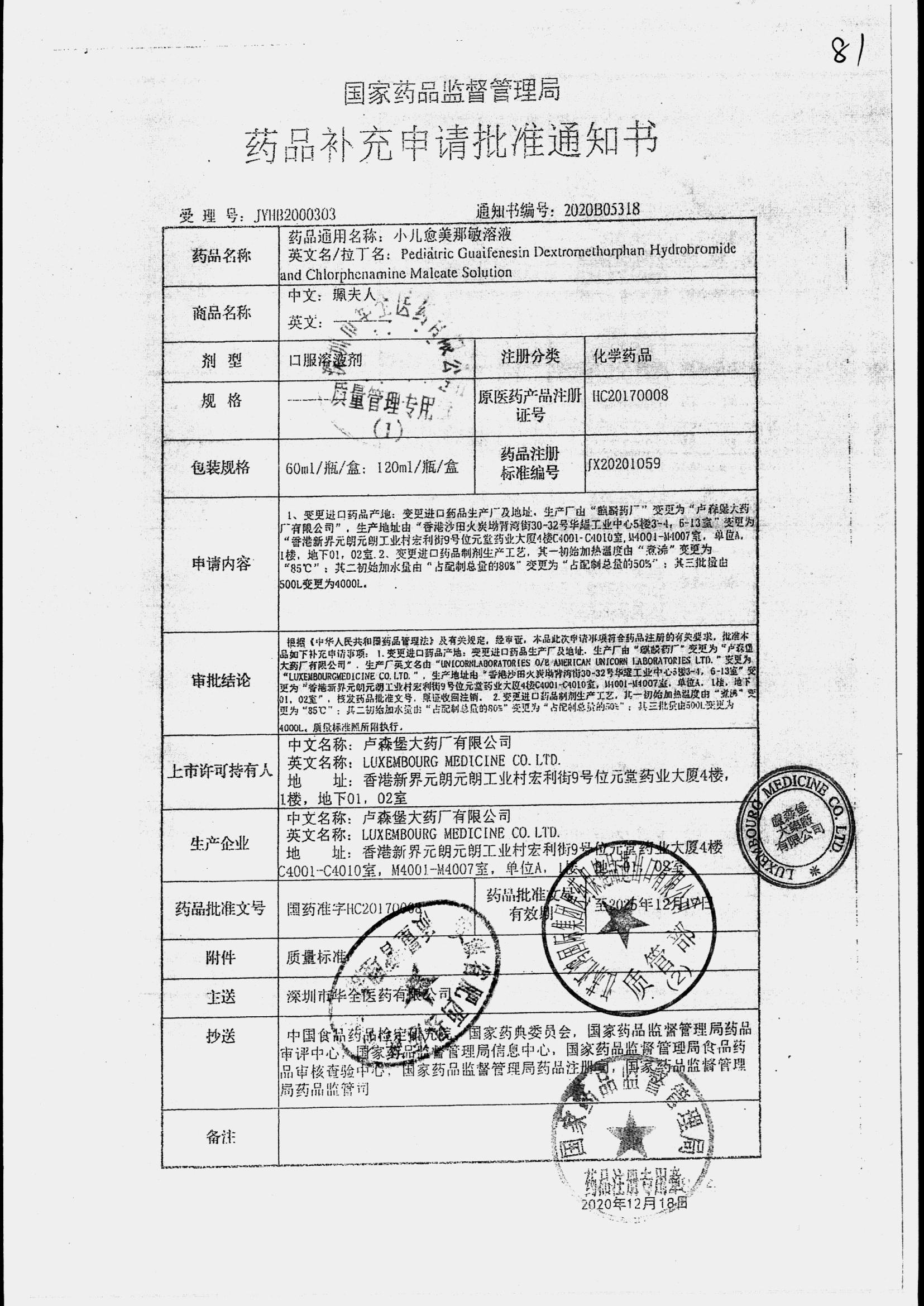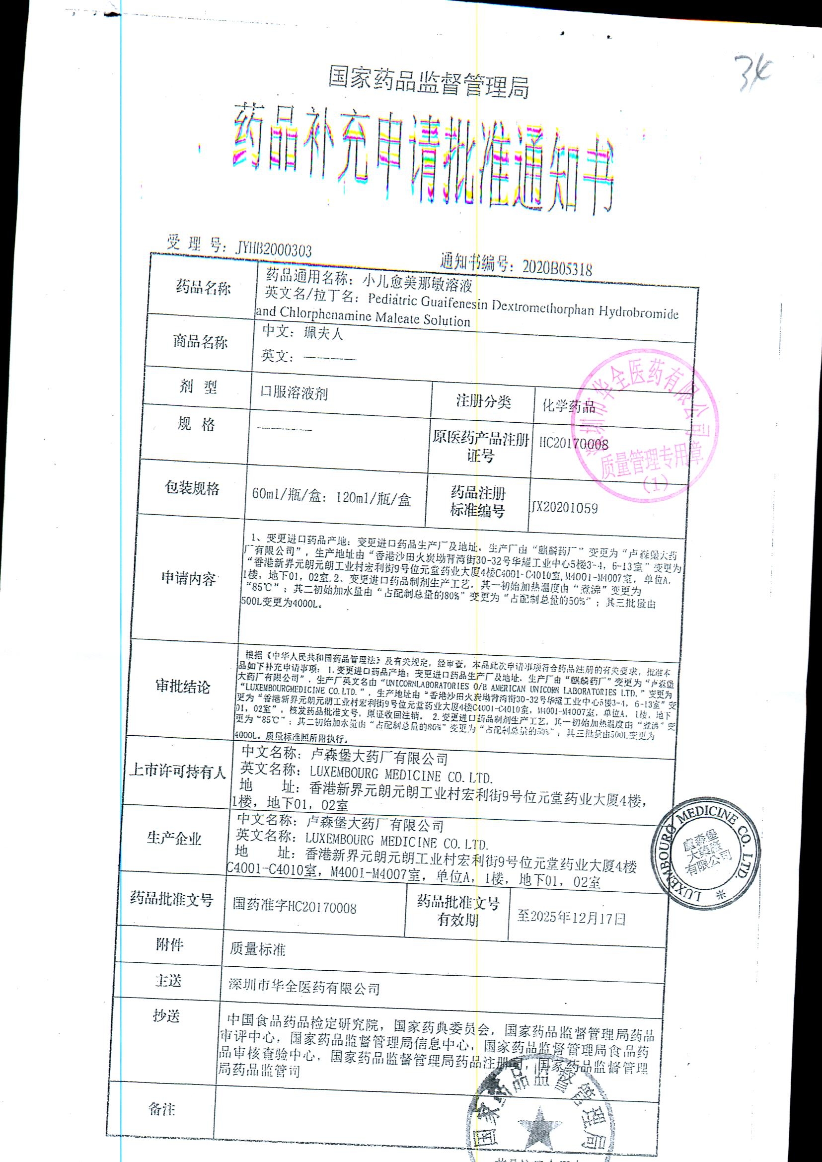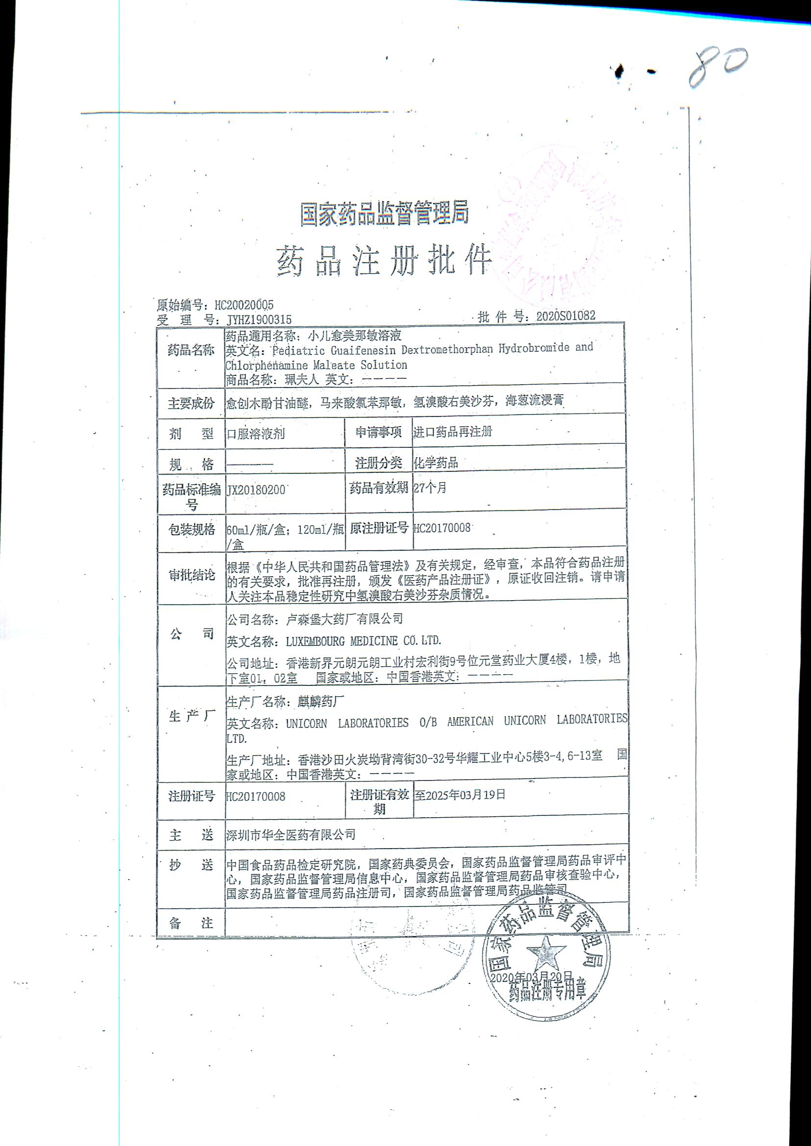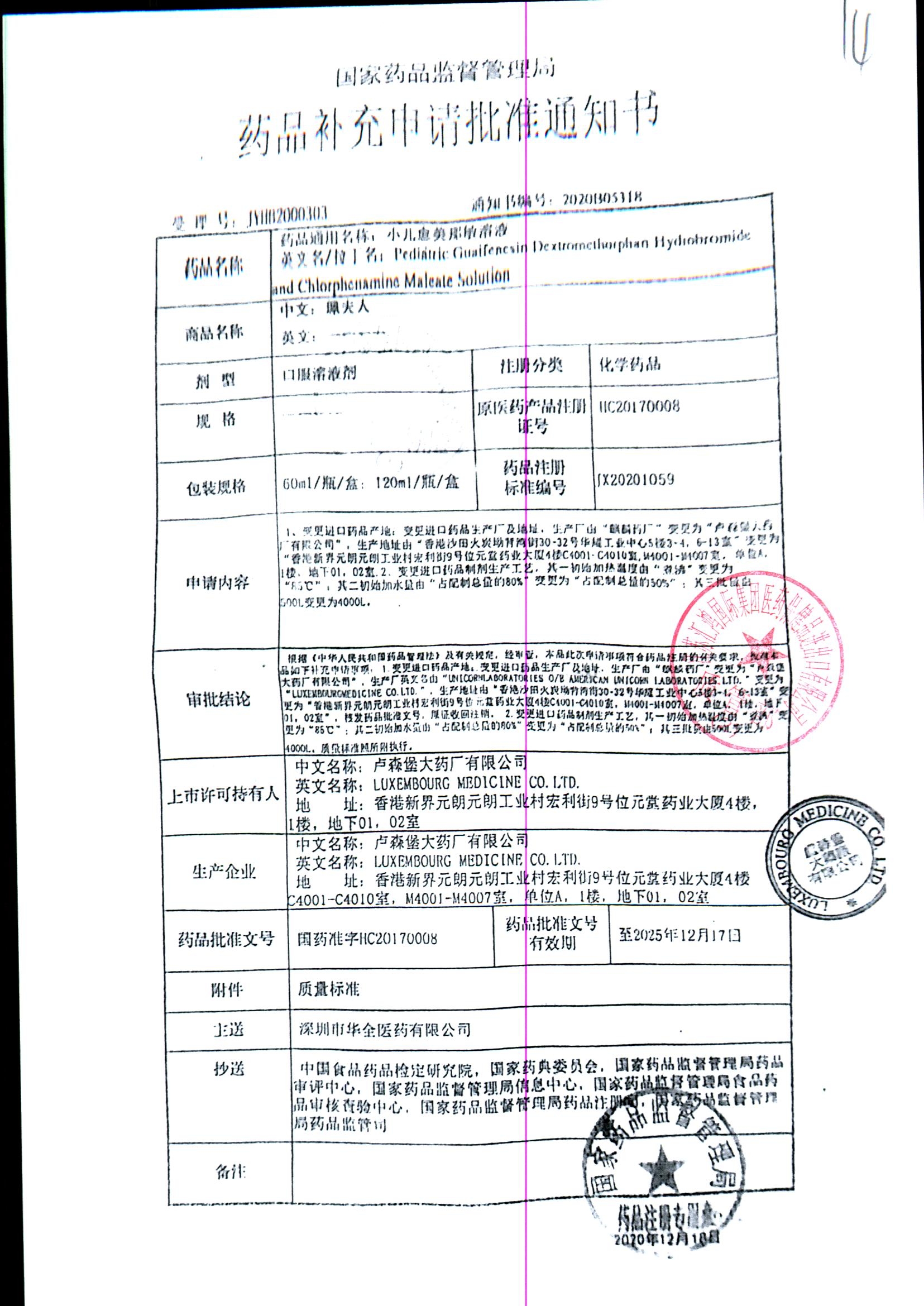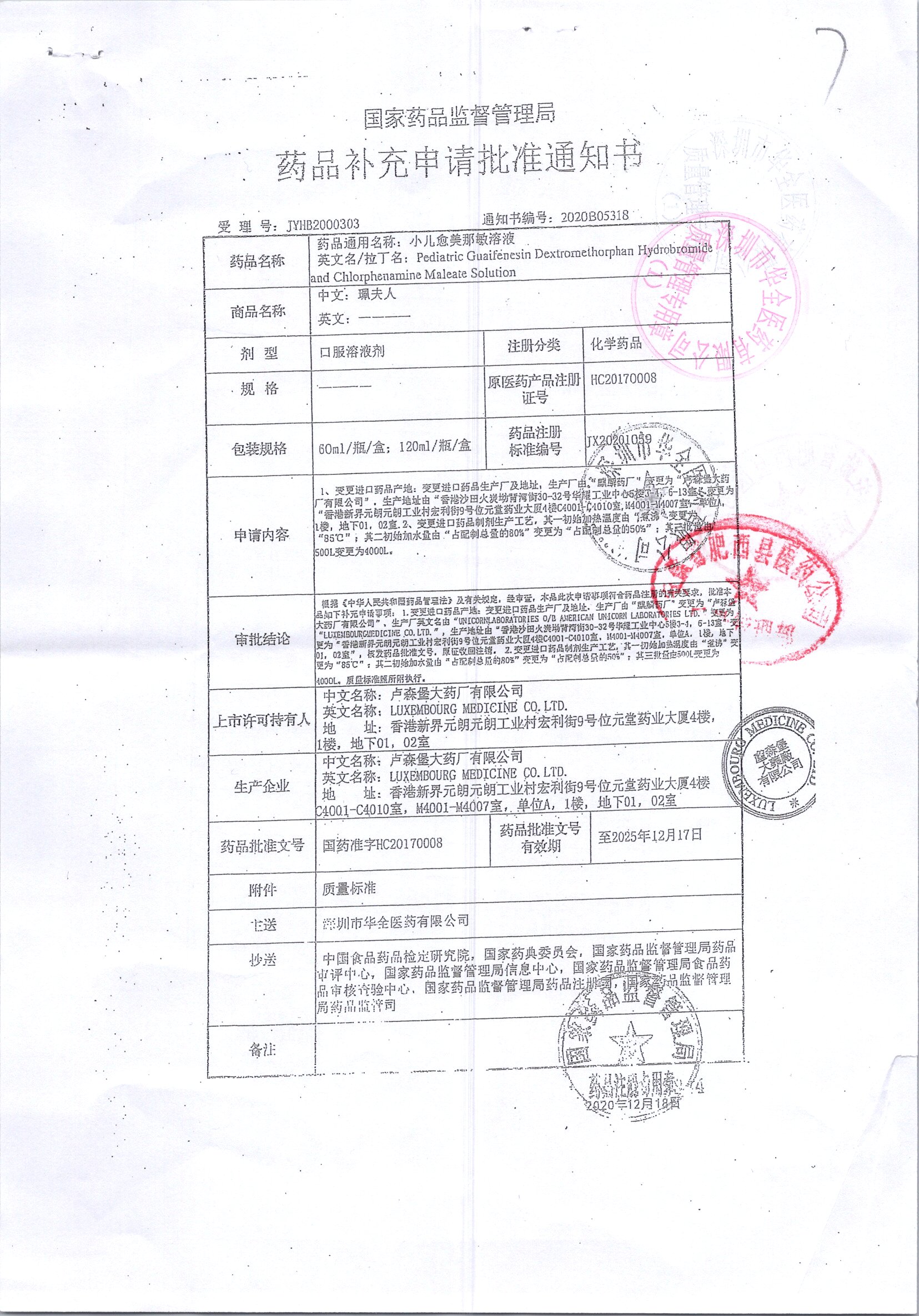 小儿愈美那敏溶液 | 60ml | 2023015/1 | 查看详情 |