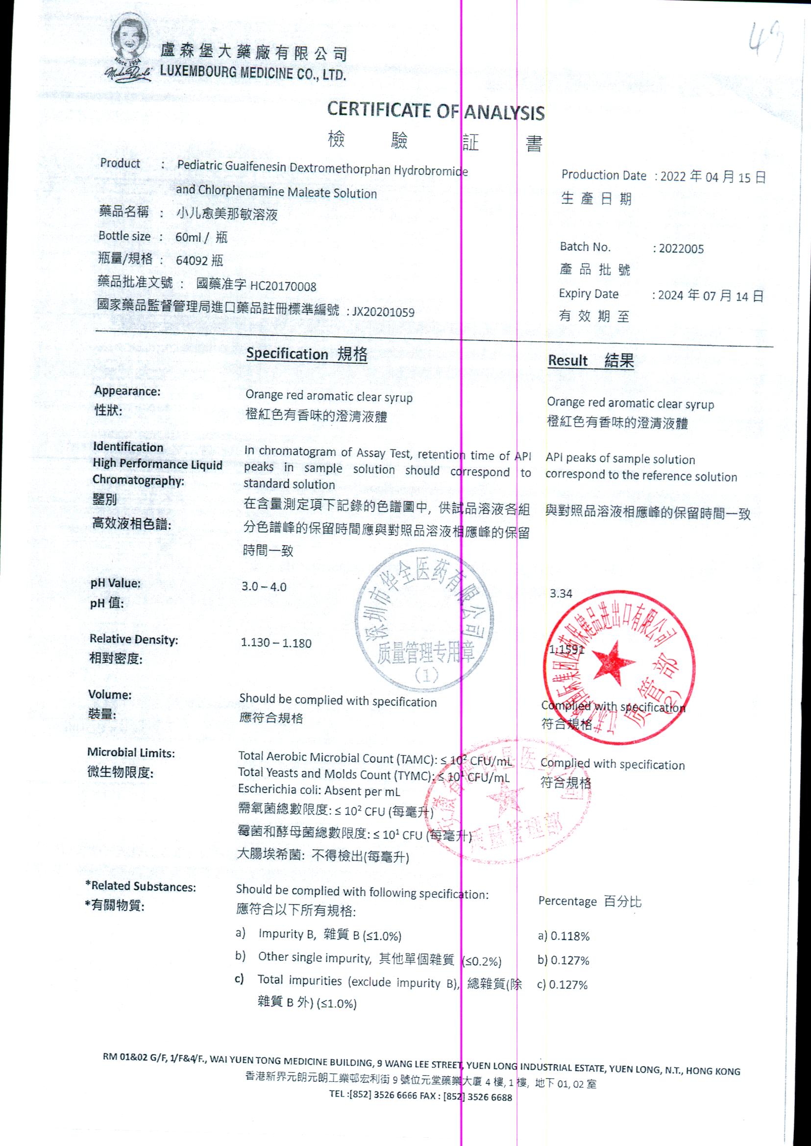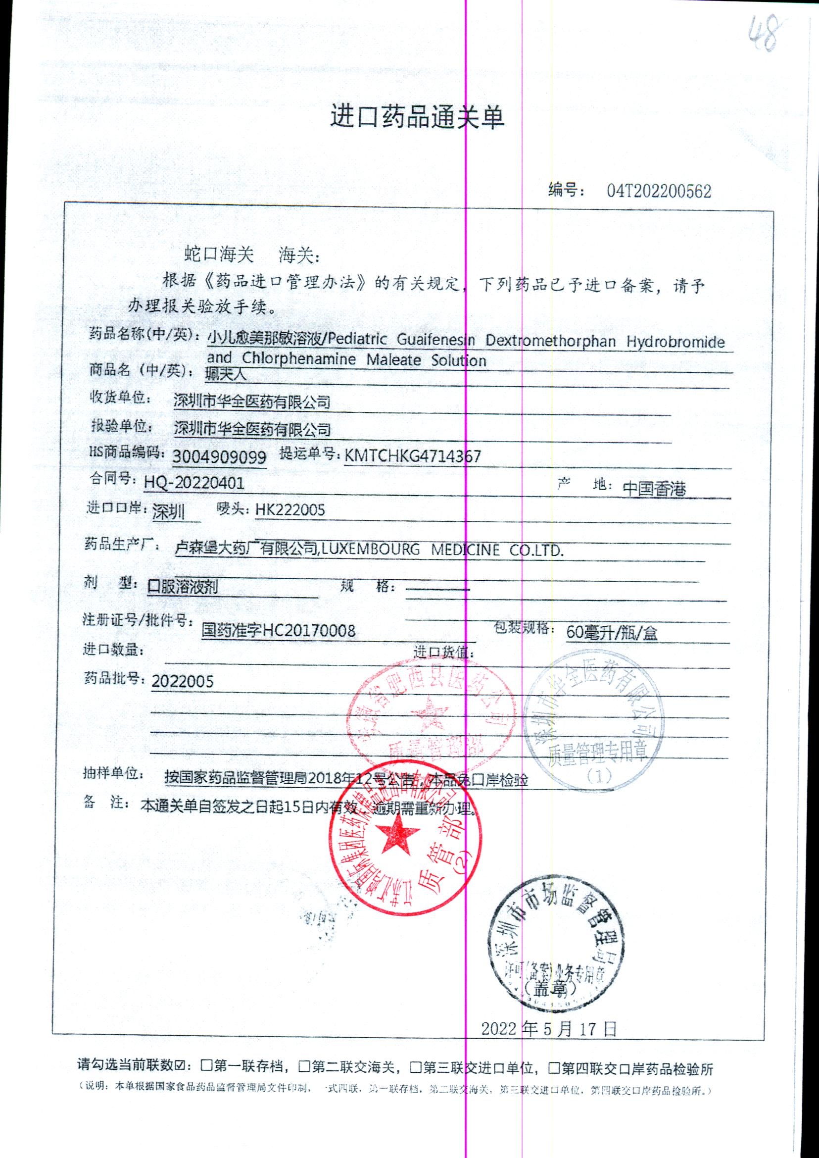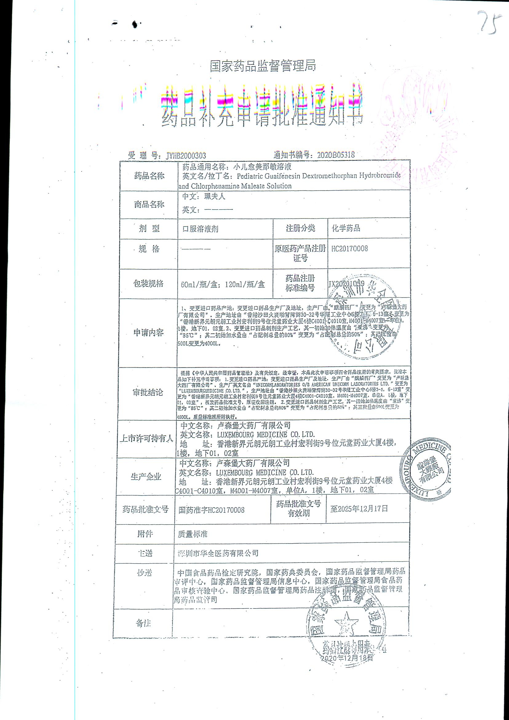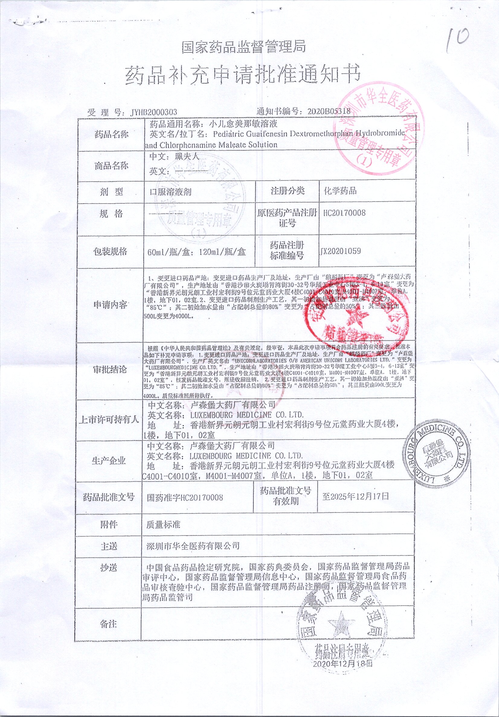 小儿愈美那敏溶液 | 60ml | 2023015/1 | 查看详情 |