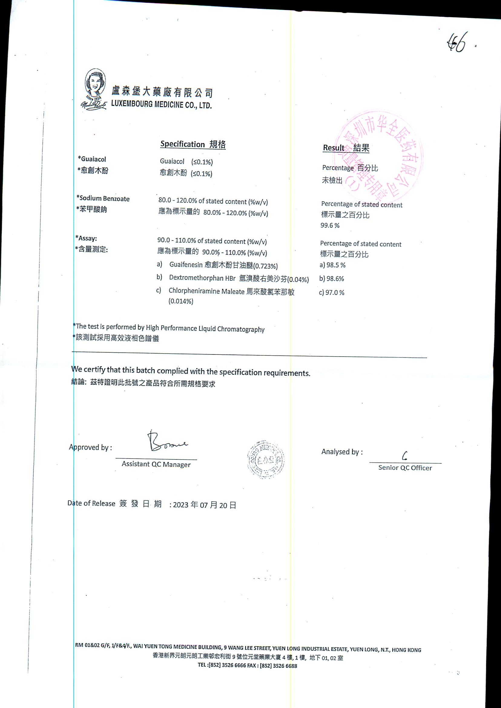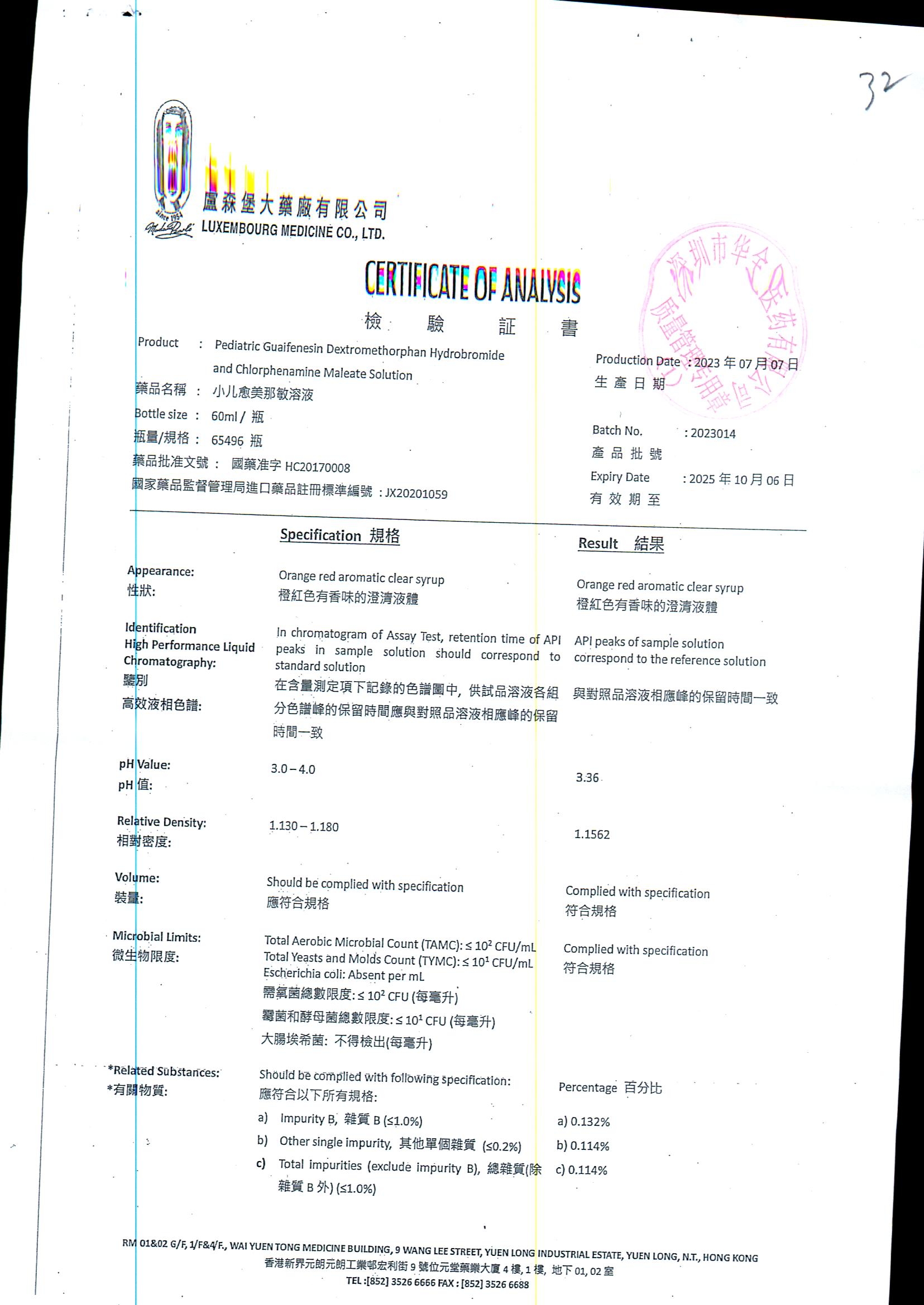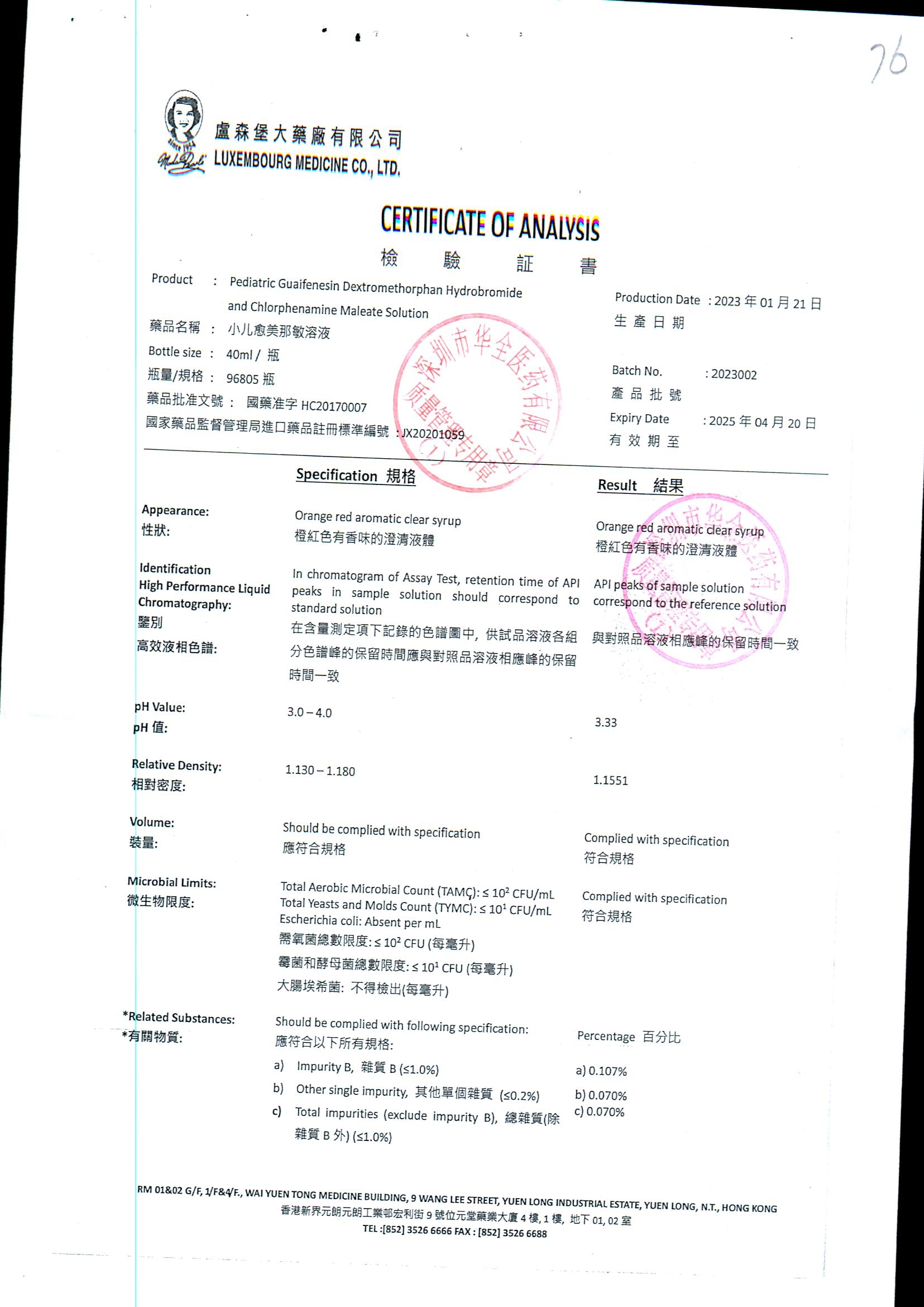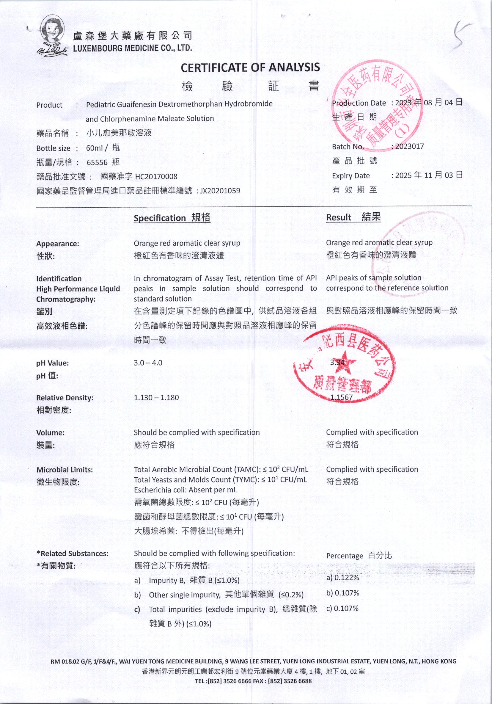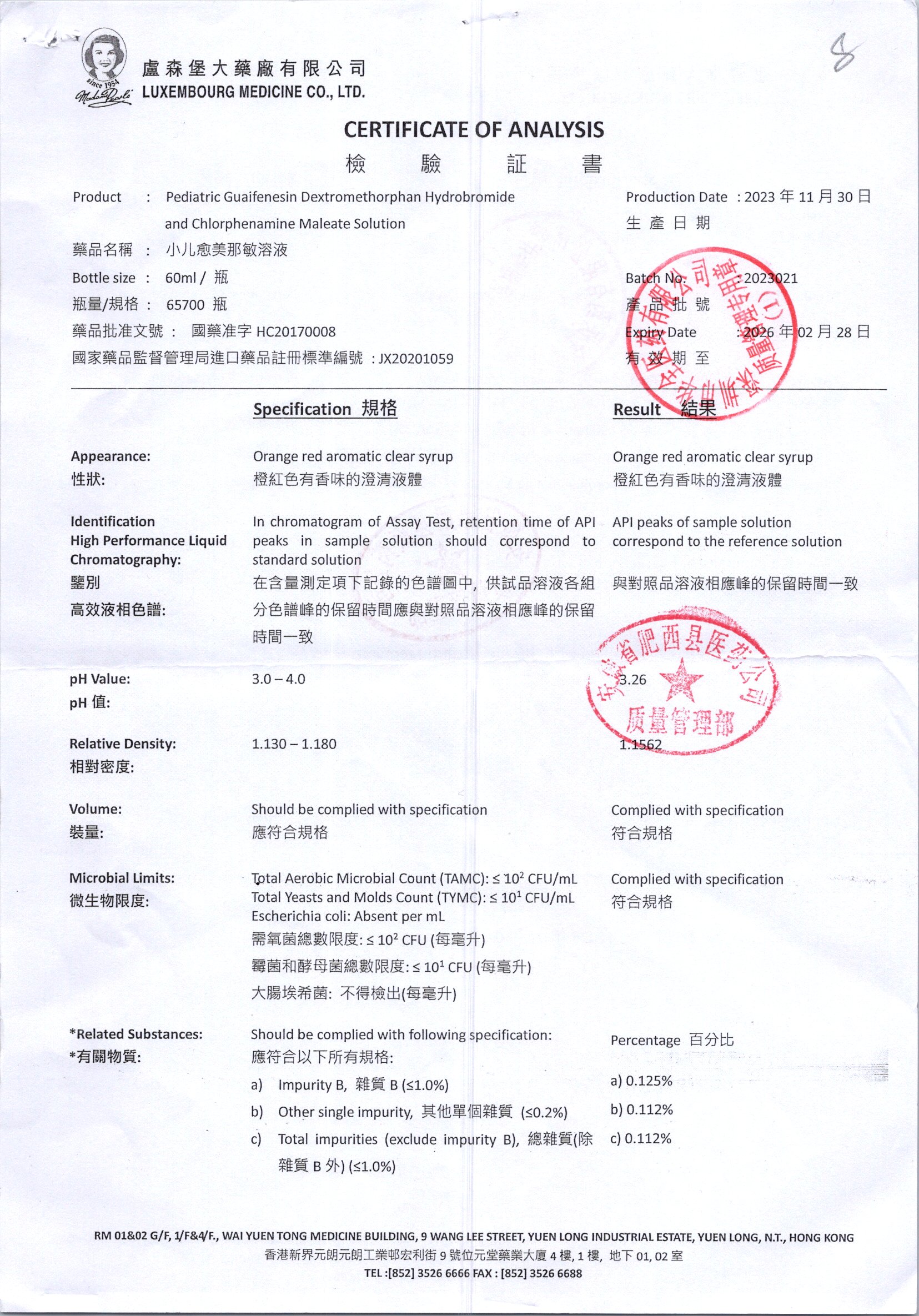 小儿愈美那敏溶液 | 60ml | 2023015/1 | 查看详情 |