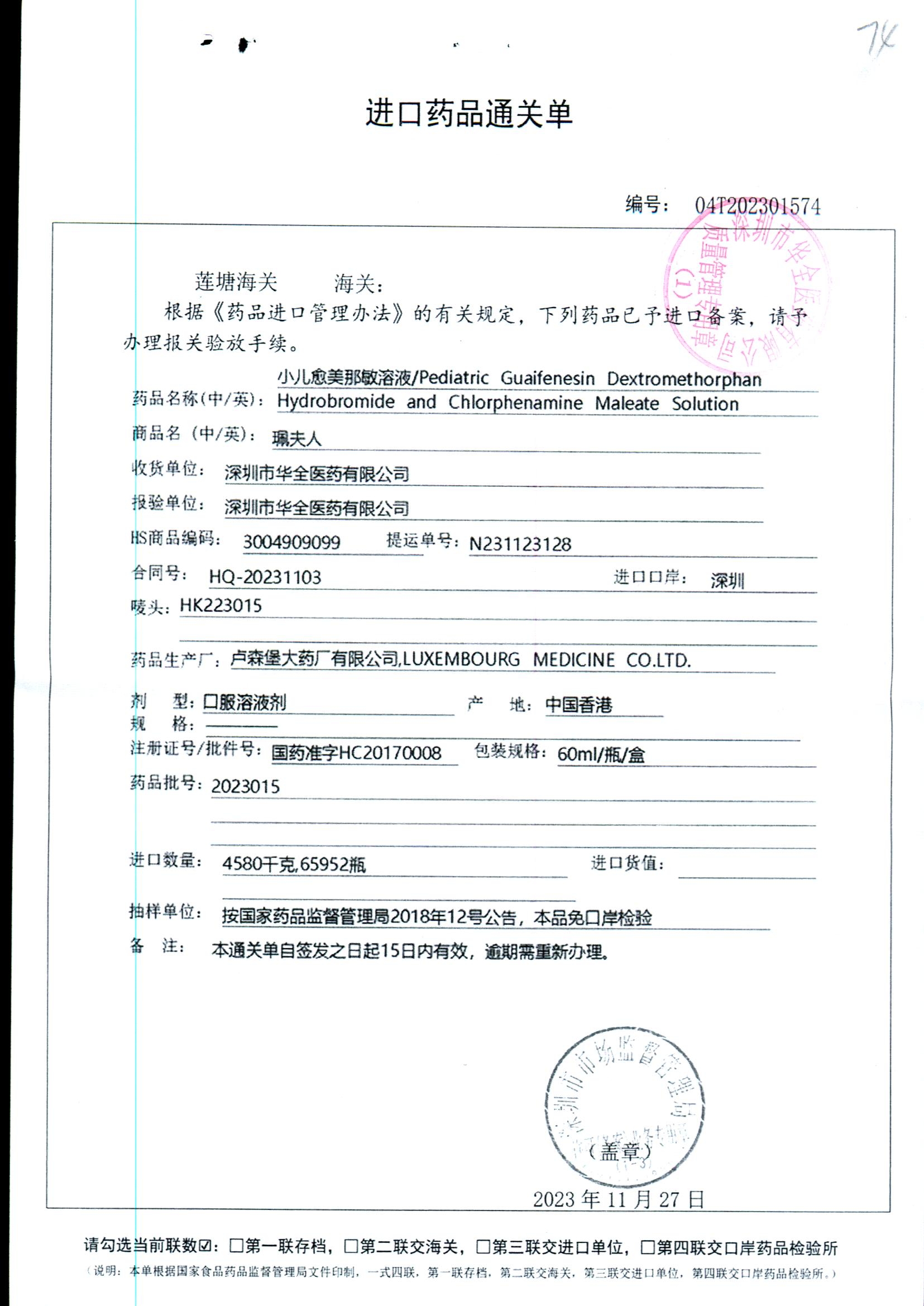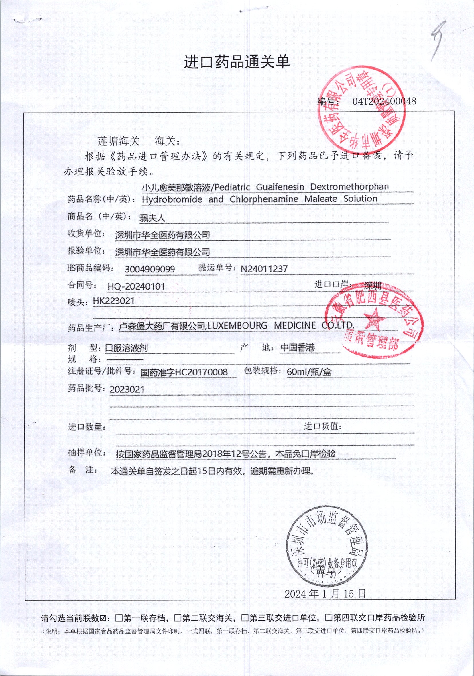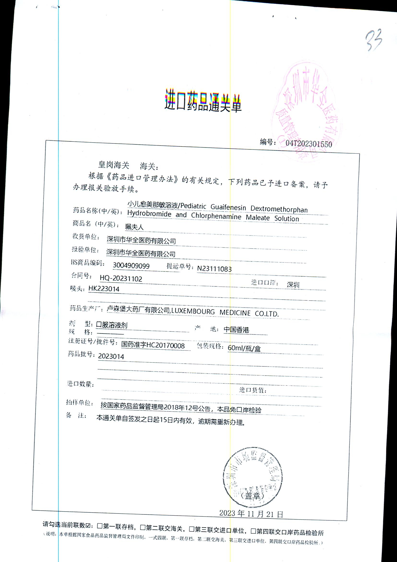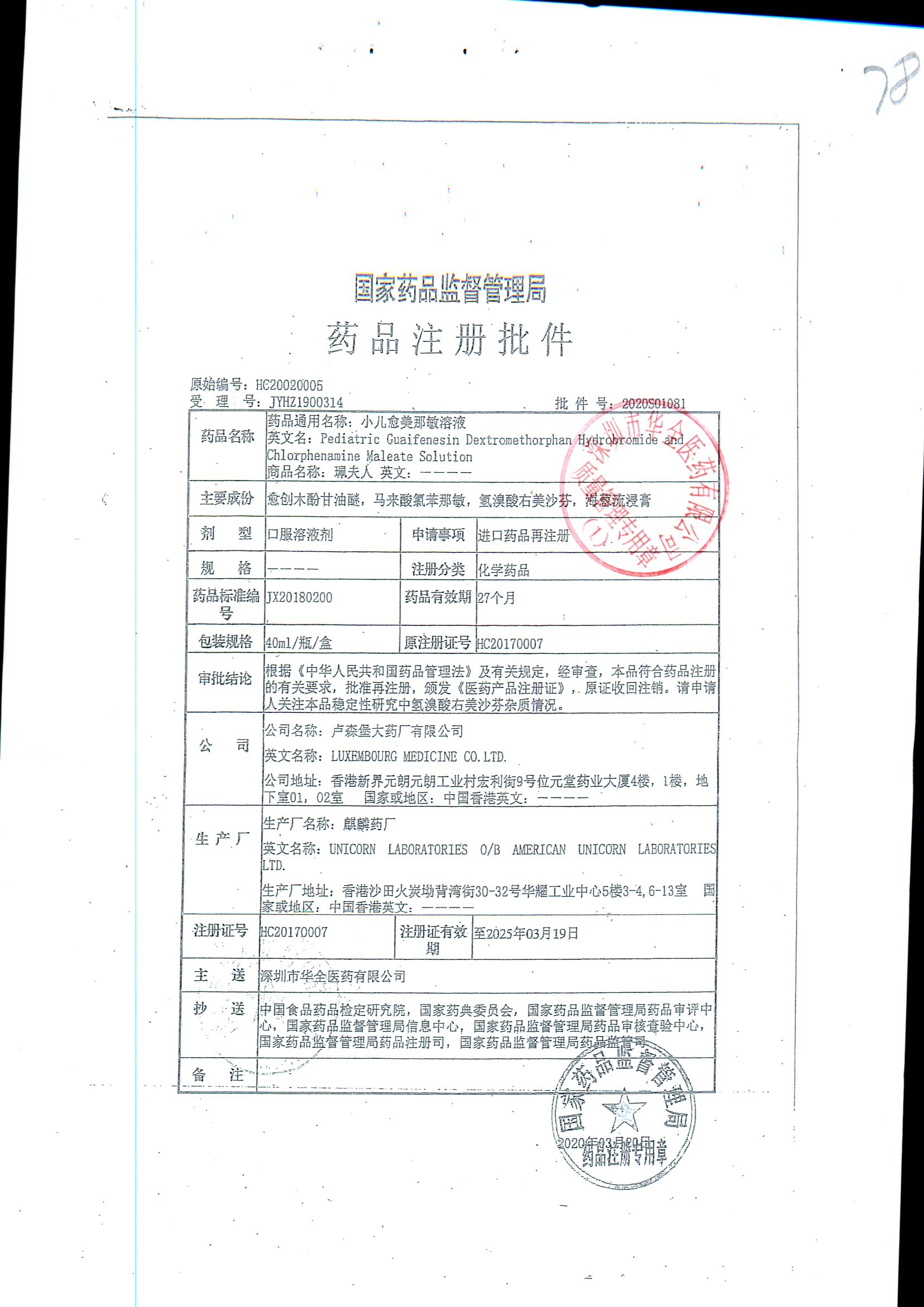小儿愈美那敏溶液 | 60ml | 2023015/3 | 查看详情 |