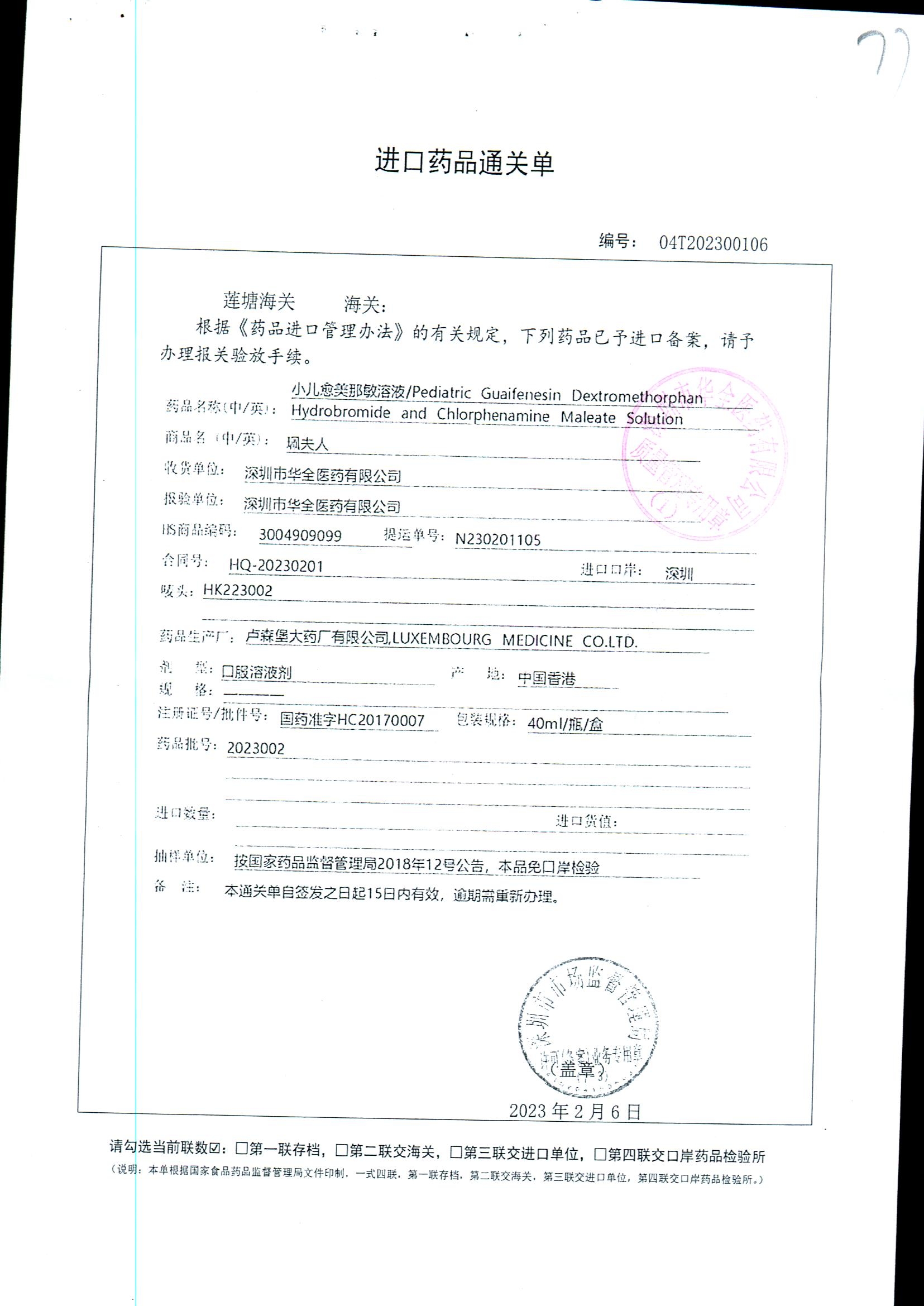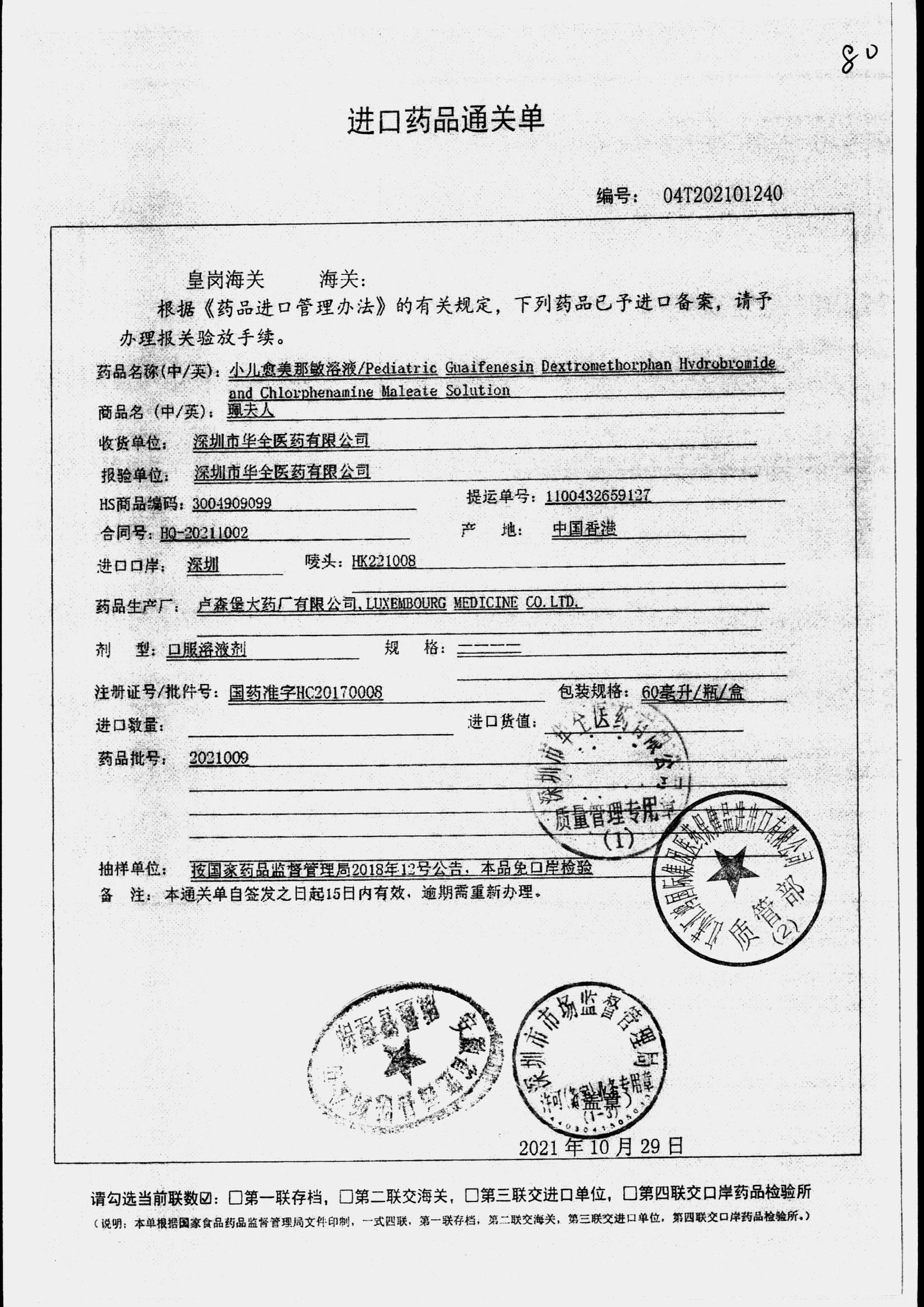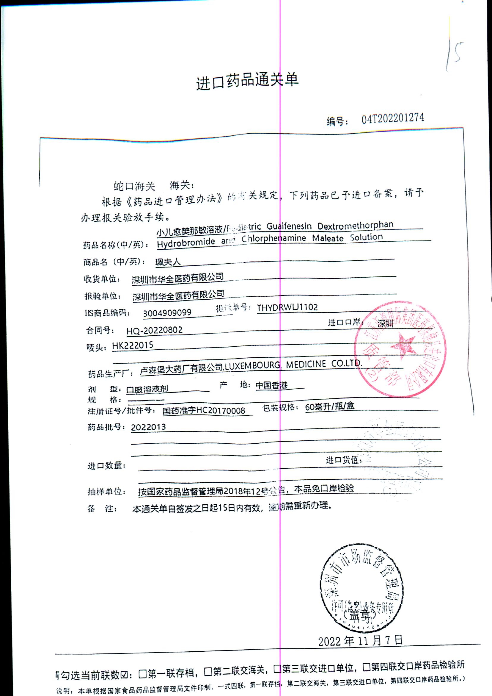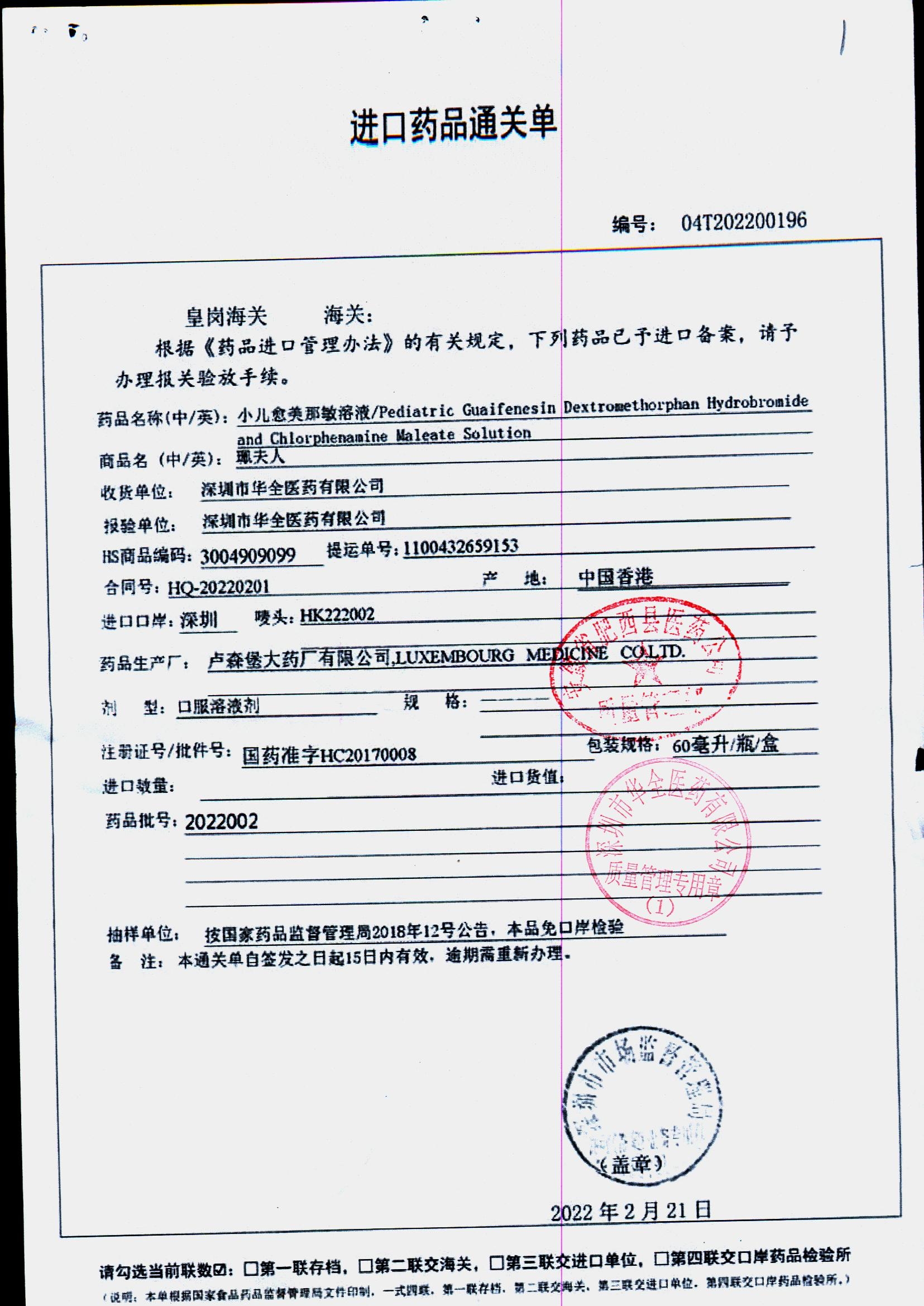 小儿愈美那敏溶液 | 60ml | 2023015/3 | 查看详情 |