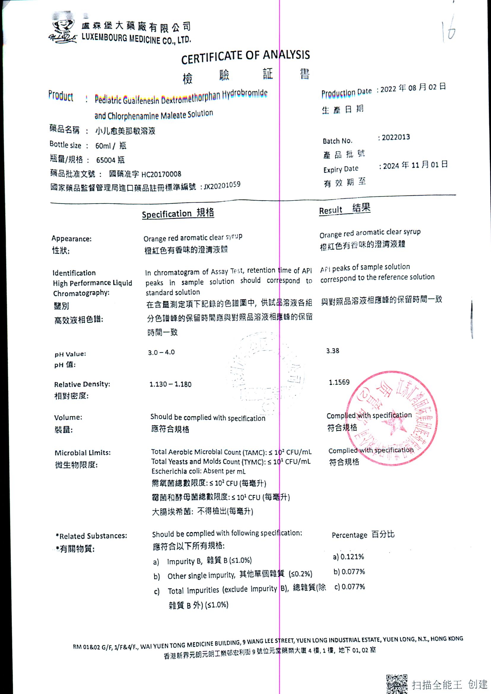 小儿愈美那敏溶液 | 60ml | 2022013/2 | 查看详情 |