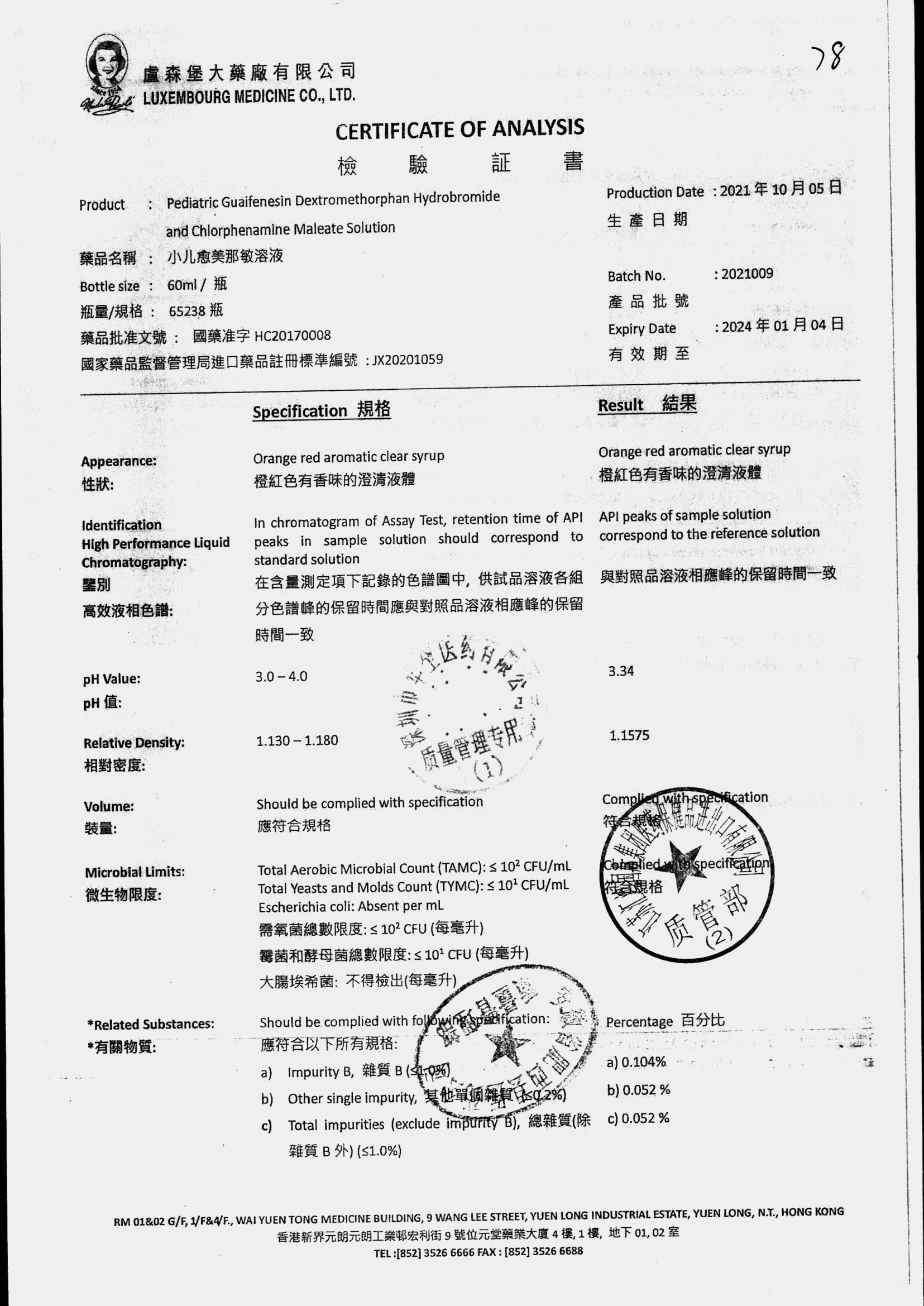 小儿愈美那敏溶液 | 60ml | 2021009/5 | 查看详情 |