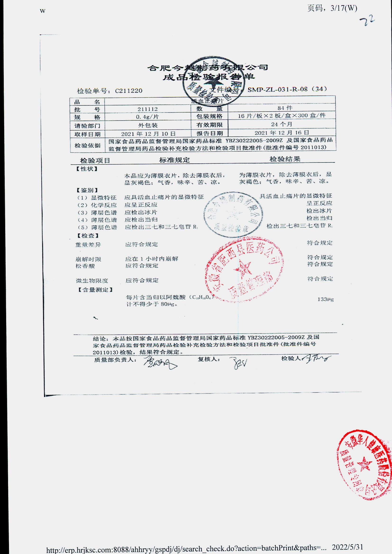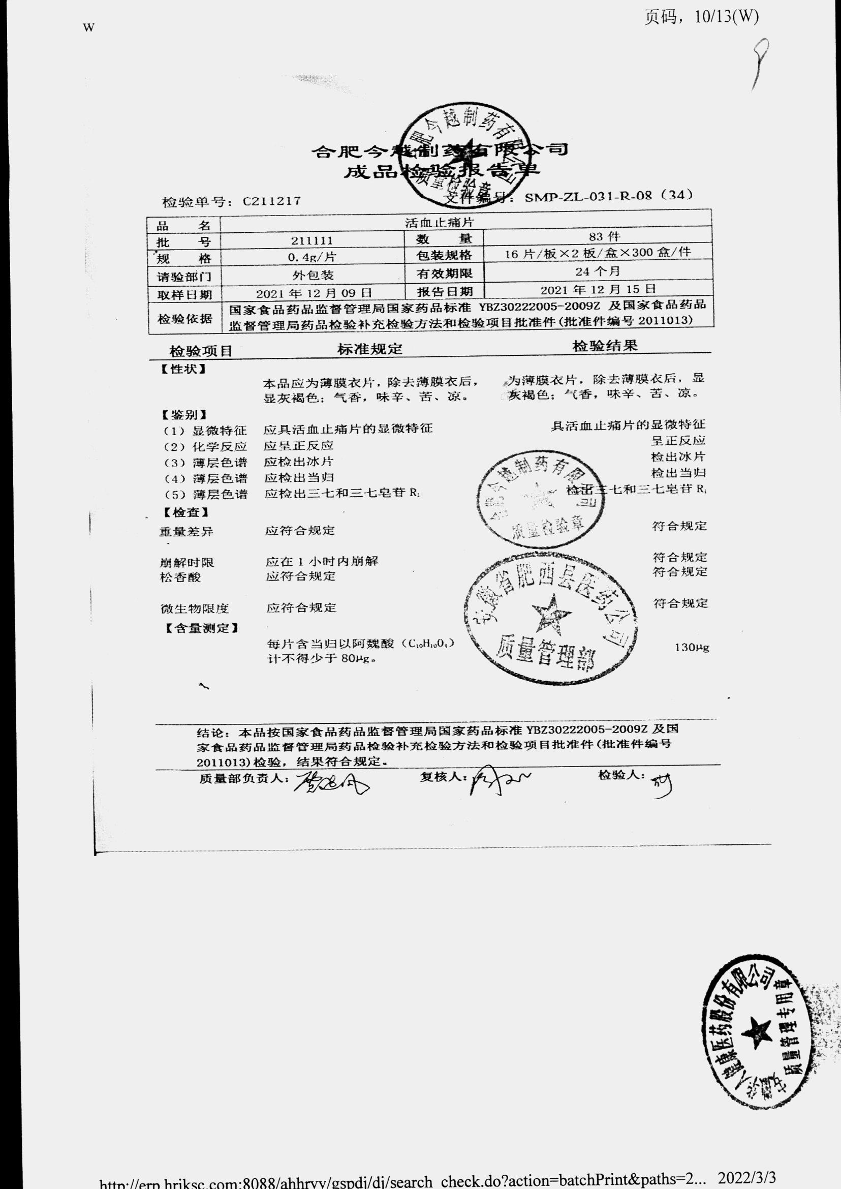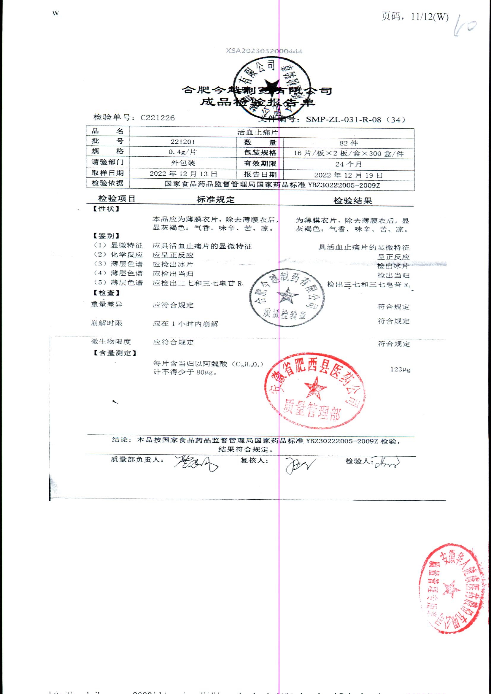 活血止痛片 | 0.4gx16片x2板 | 211112 | 查看详情 |