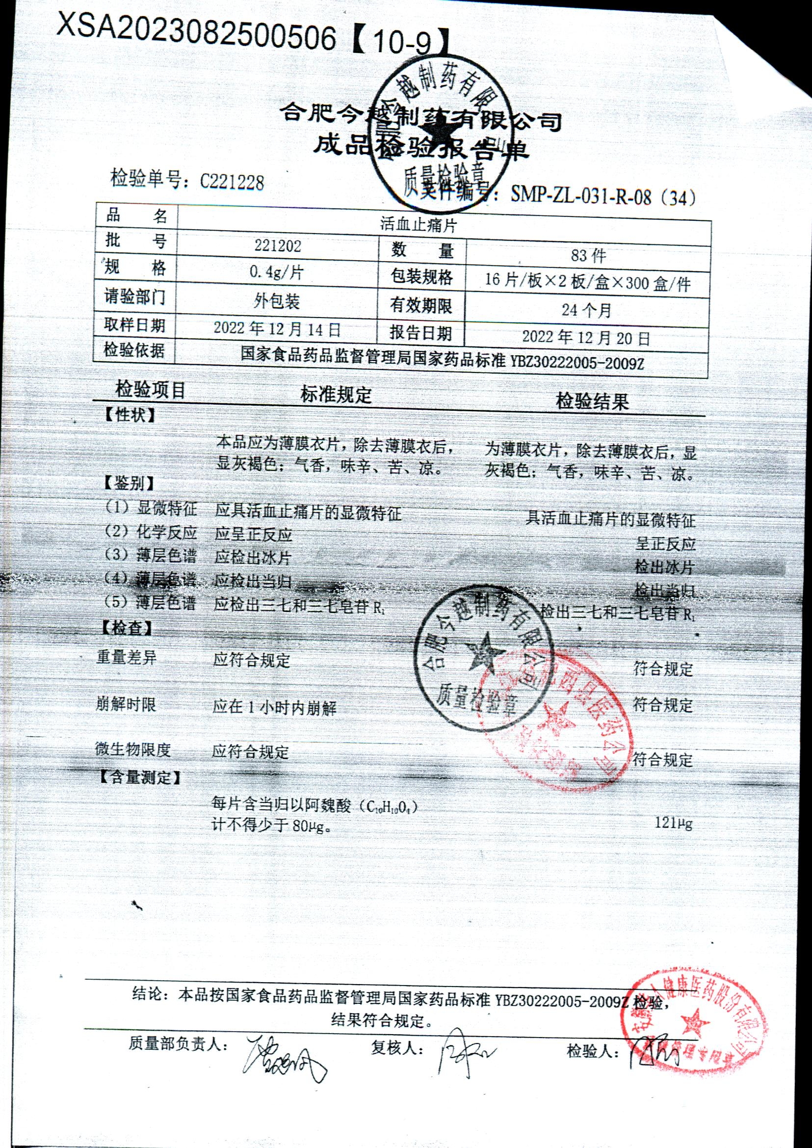 活血止痛片 | 0.4gx16片x2板 | 221202 | 查看详情 |