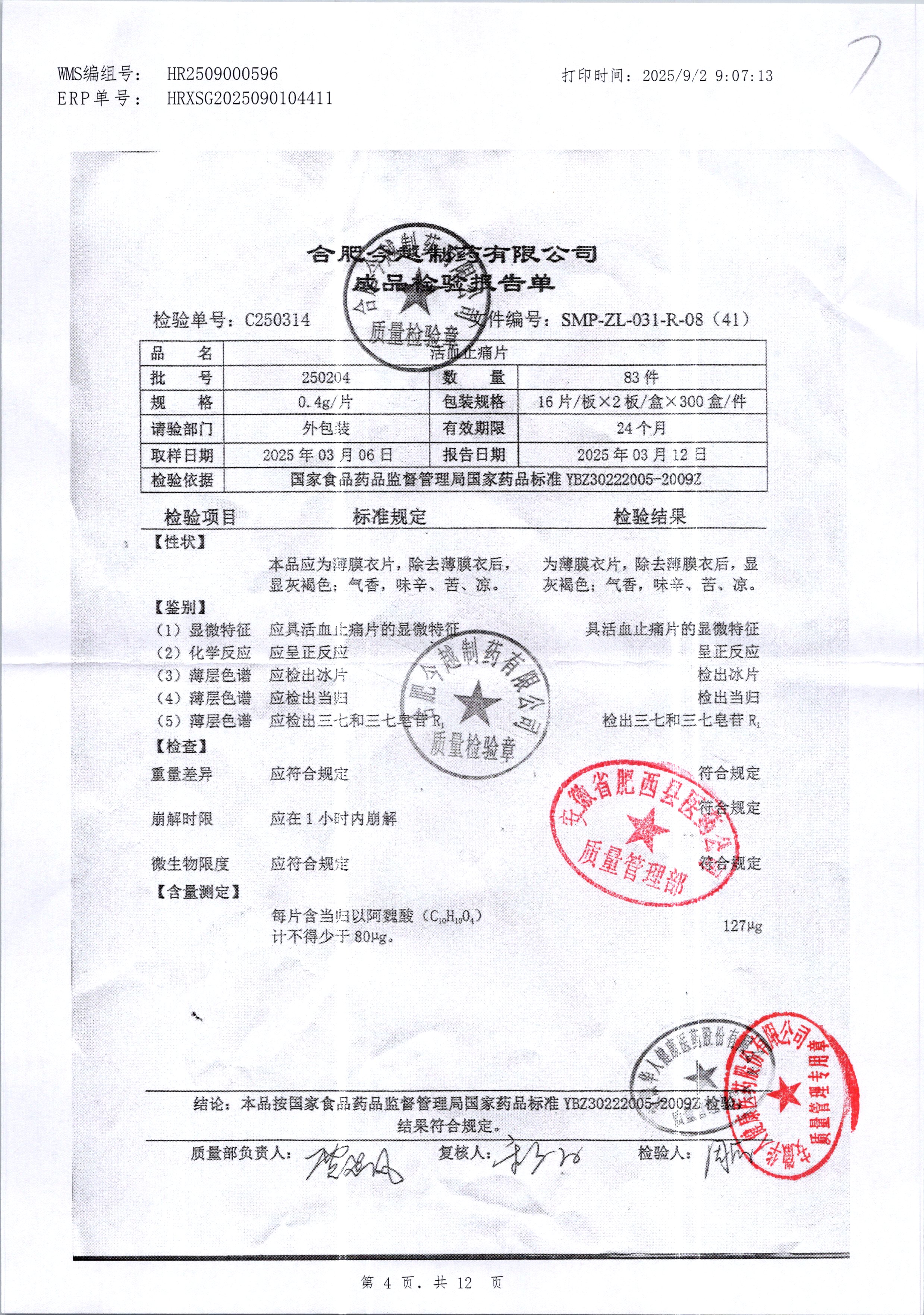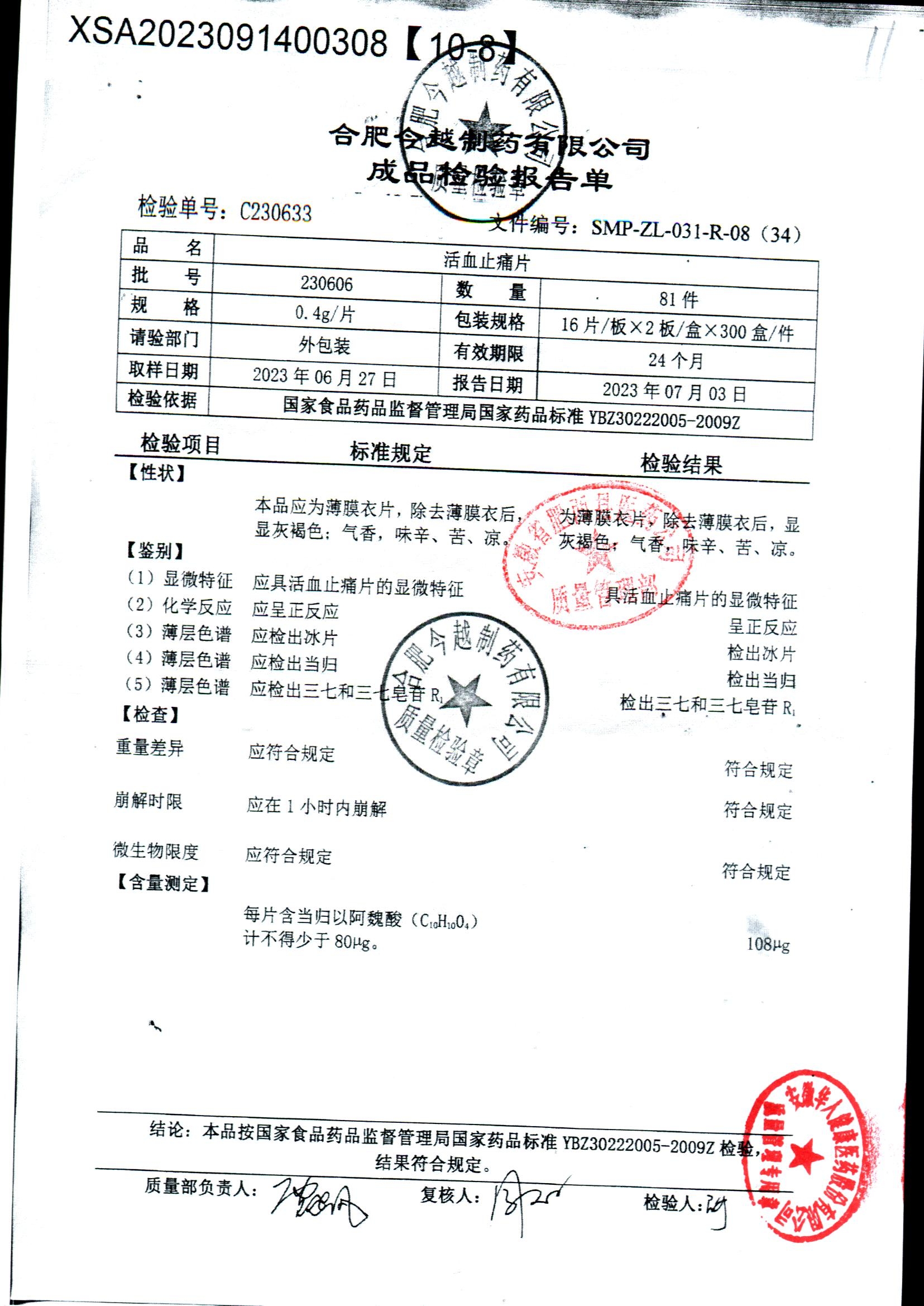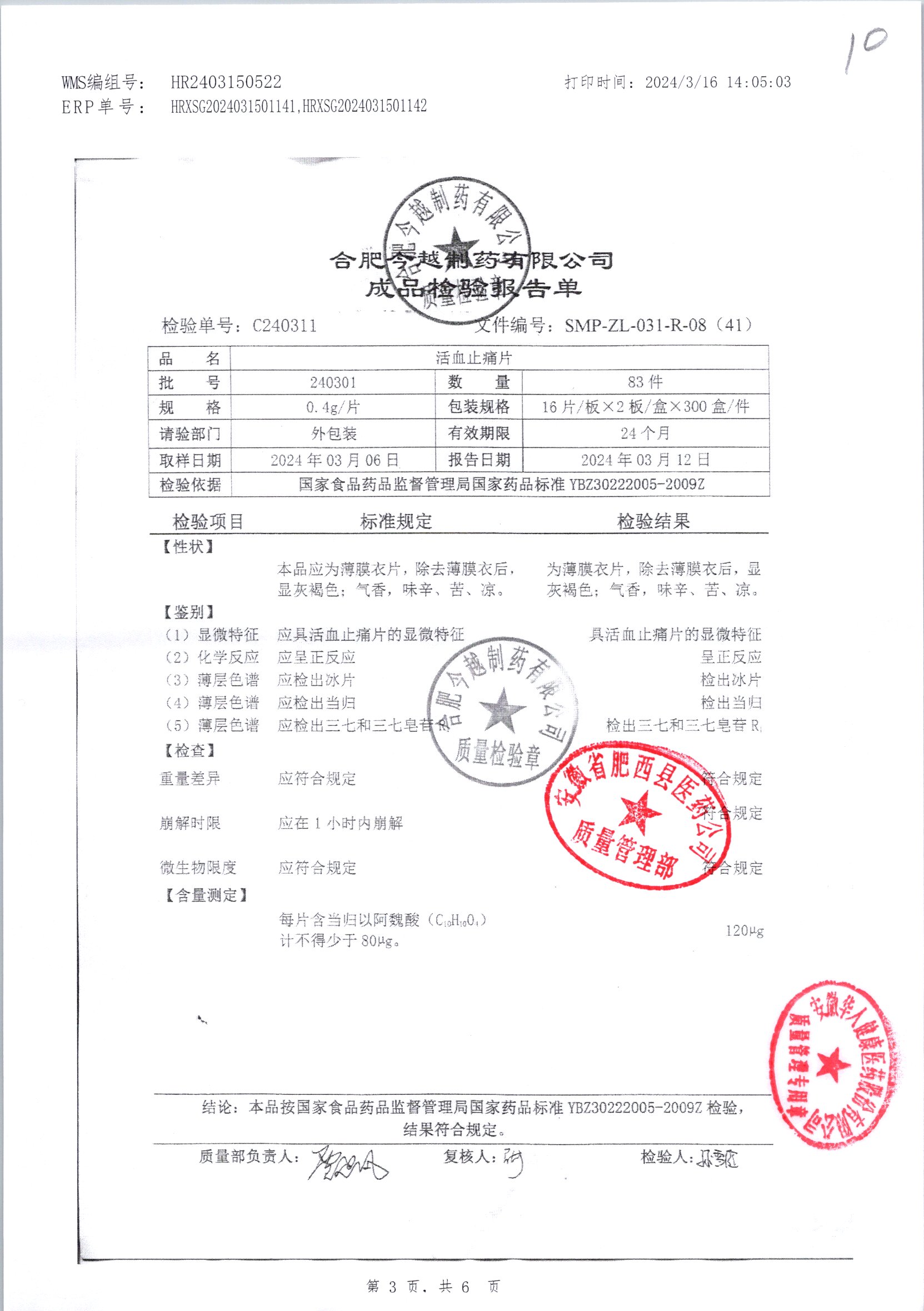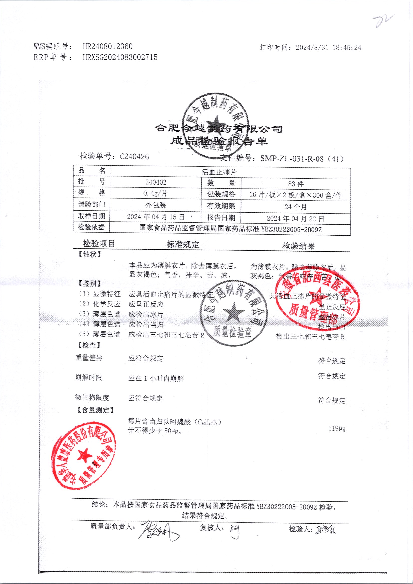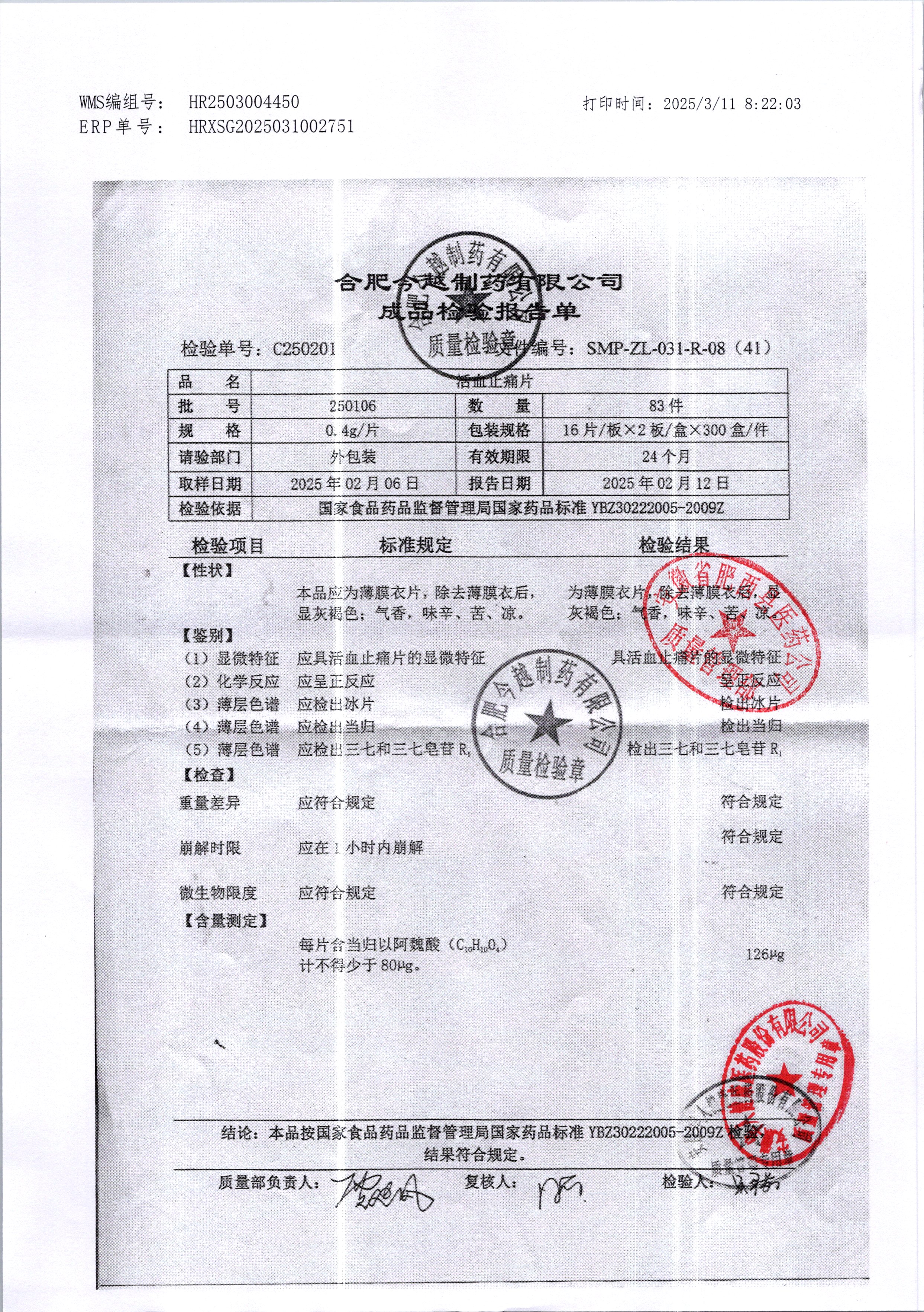 活血止痛片 | 0.4gx16片x2板 | 240403 | 查看详情 |