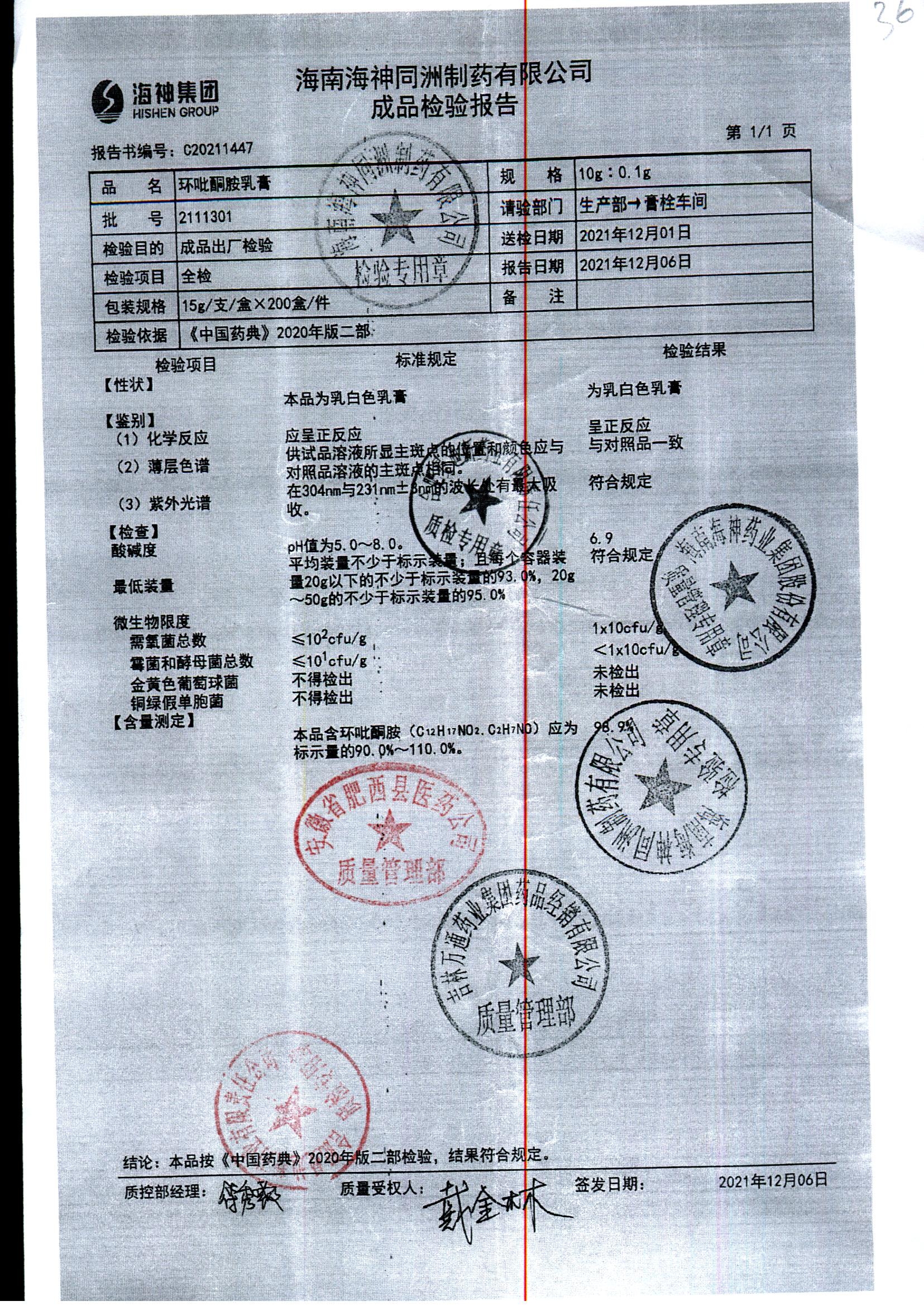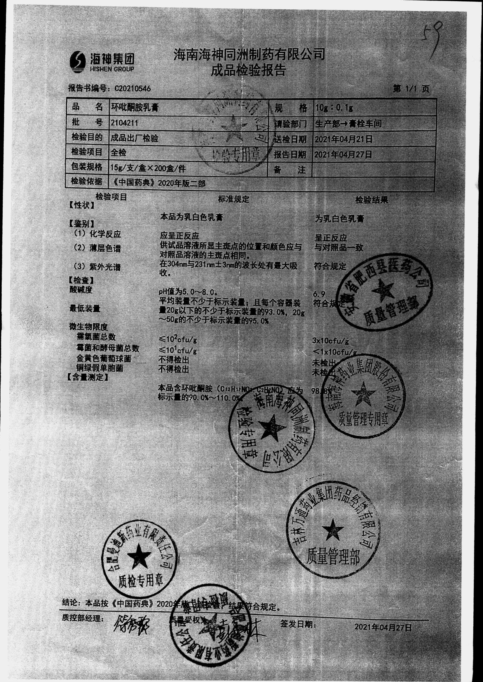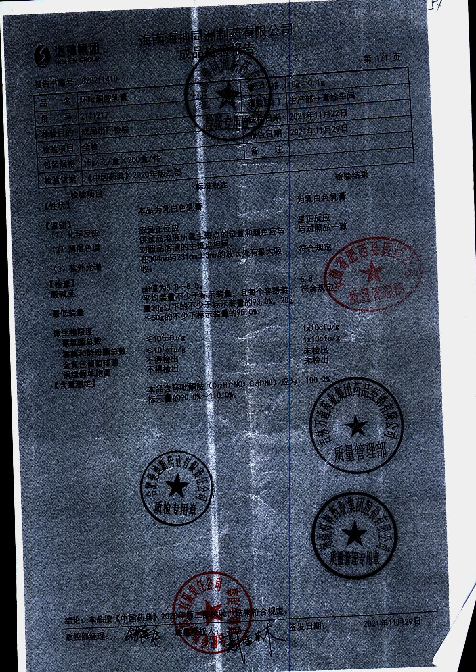 环吡酮胺乳膏 | 10g | 2111212 | 查看详情 |