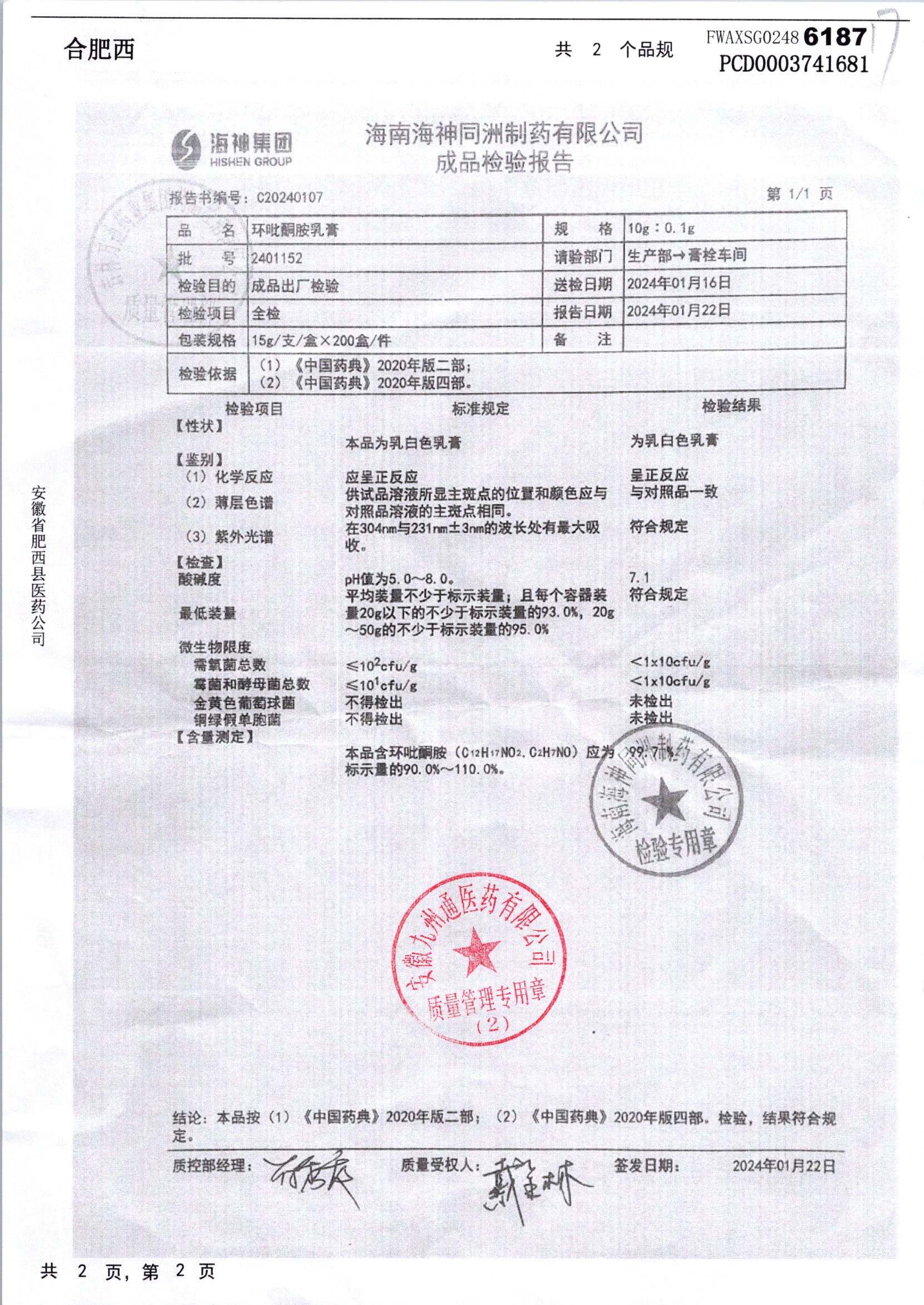 环吡酮胺乳膏 | 10g | 2401152 | 查看详情 |