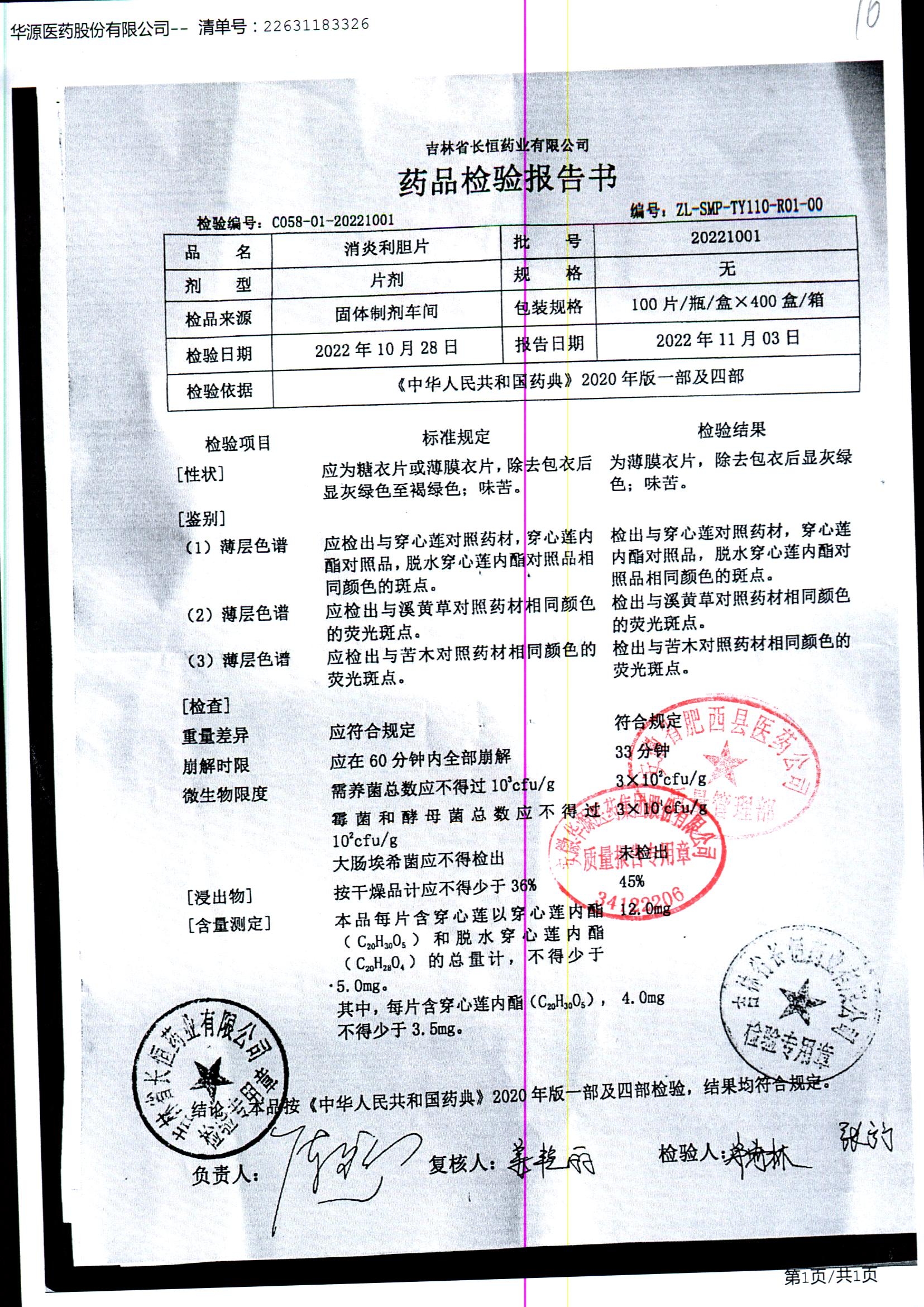 消炎利胆片 | 100片 | 20221001 | 查看详情 |