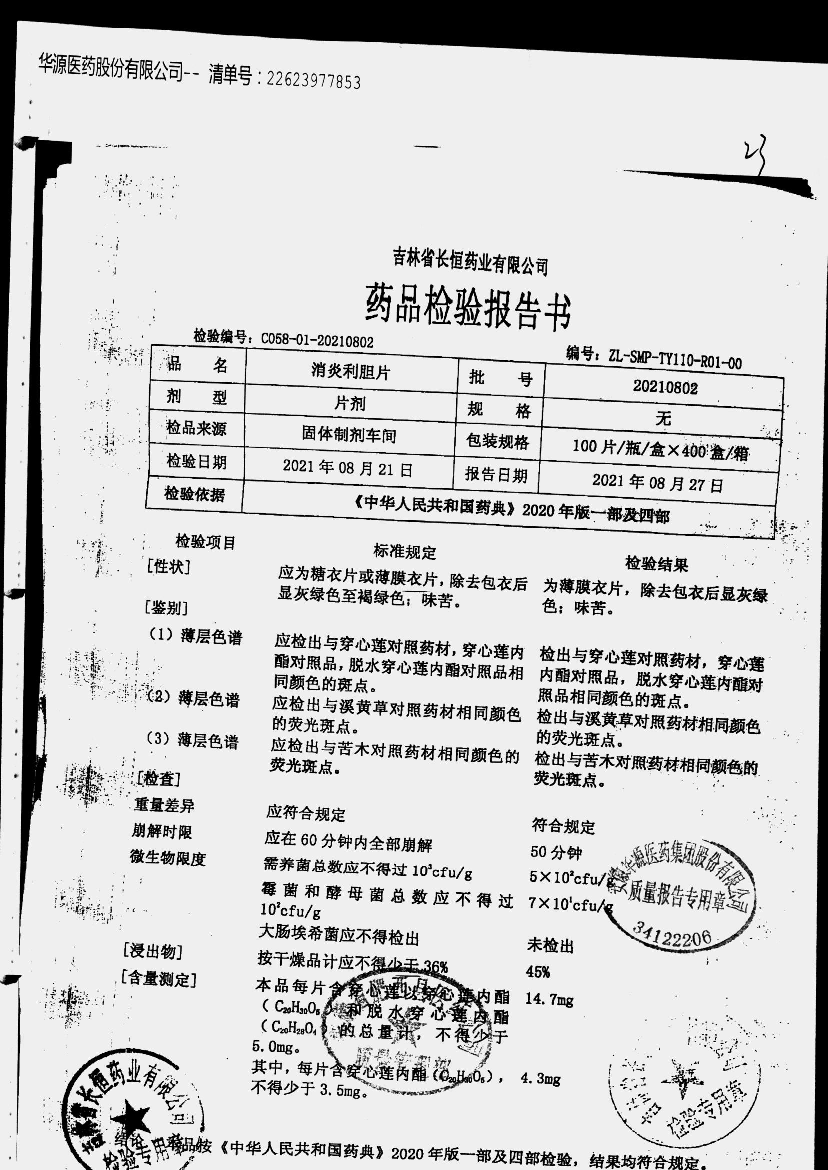 消炎利胆片 | 100片 | 20210802 | 查看详情 |
