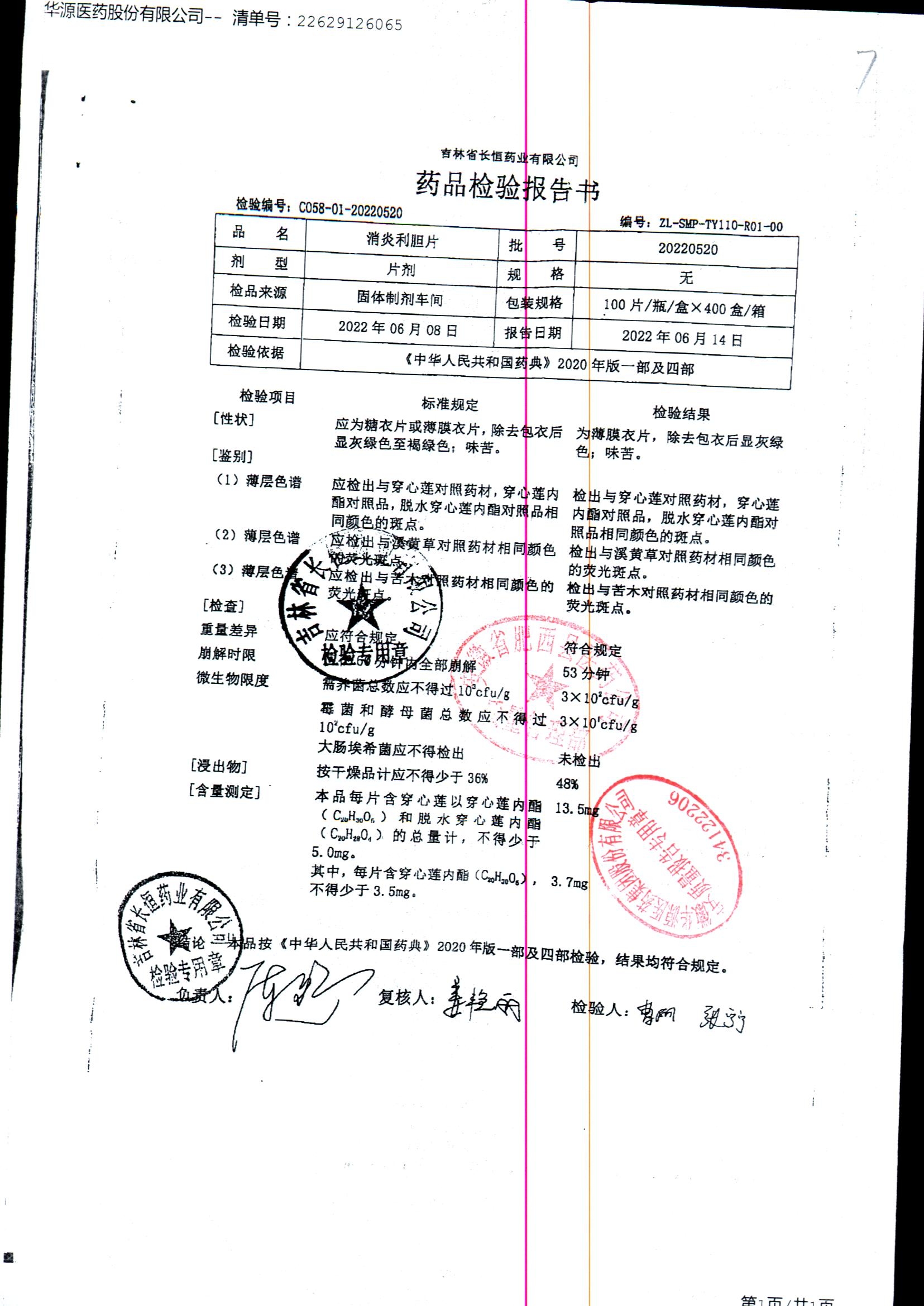 消炎利胆片 | 100片 | 20220520 | 查看详情 |