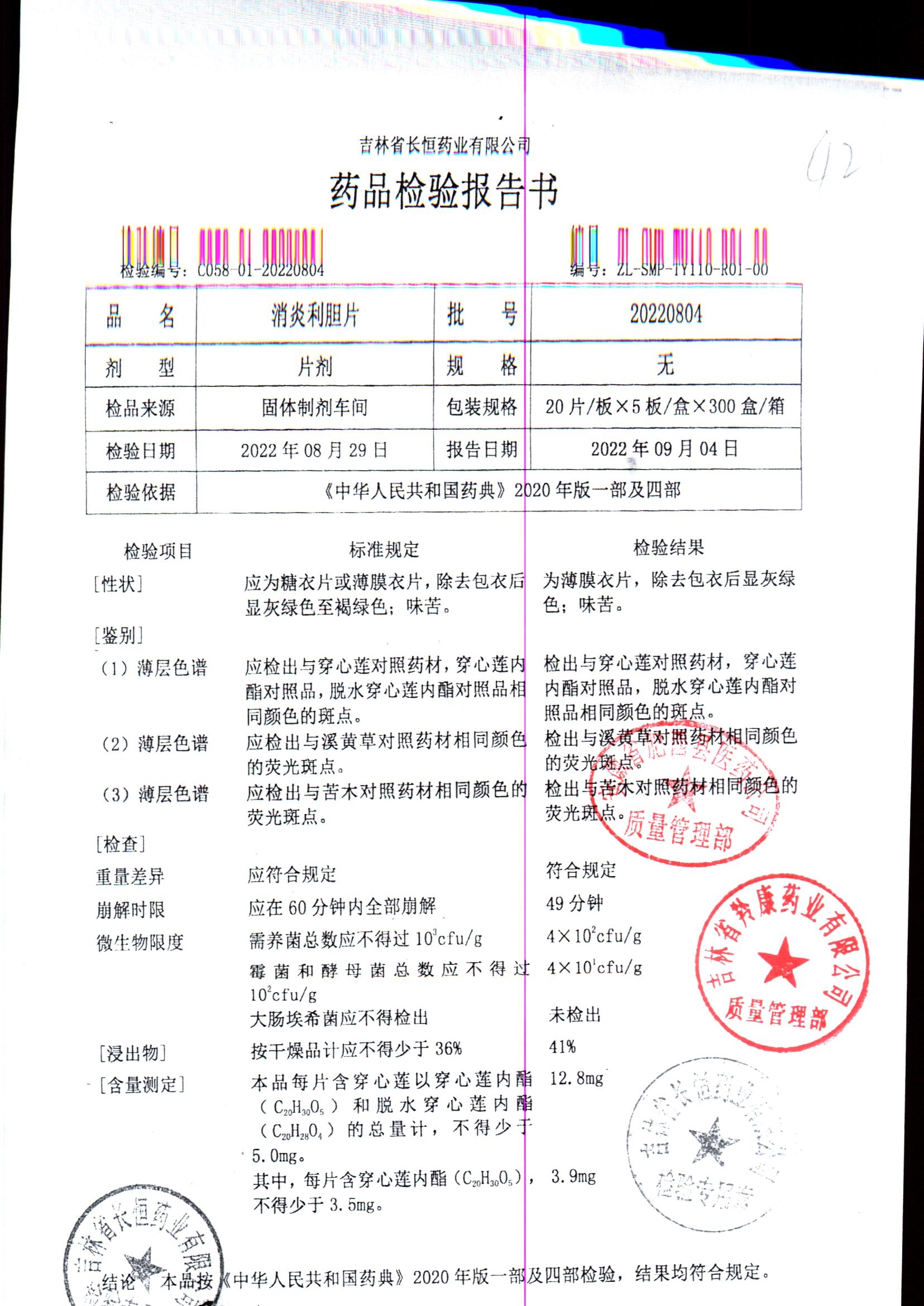 消炎利胆片 | 100片 | 20220804 | 查看详情 |