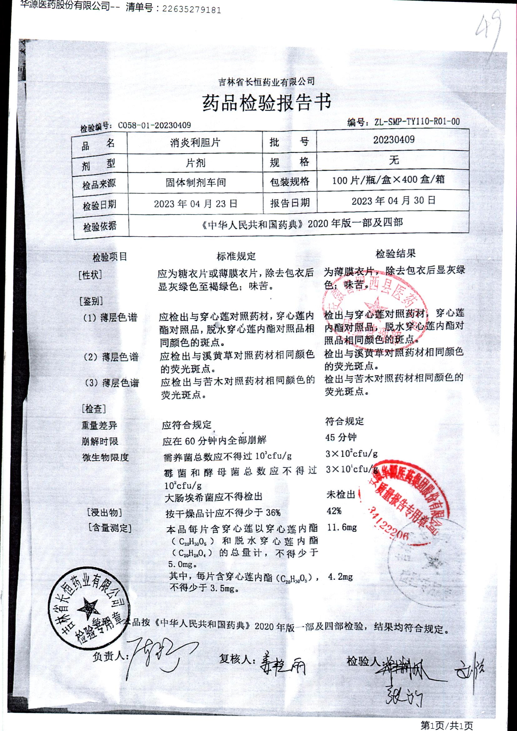 消炎利胆片 | 100片 | 20230409 | 查看详情 |