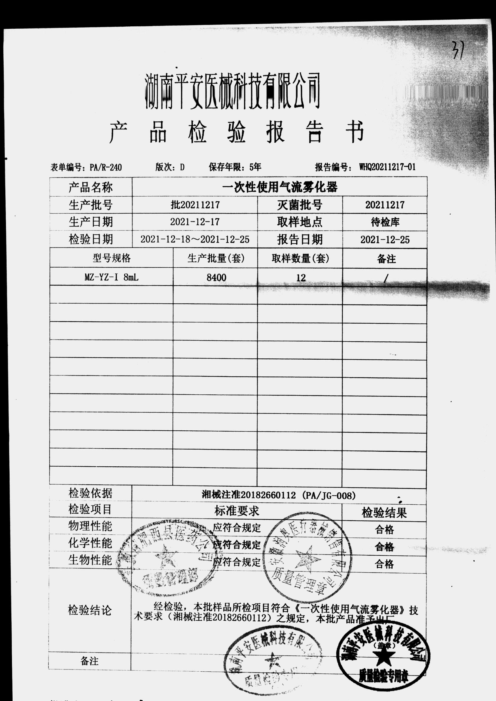 药检报告