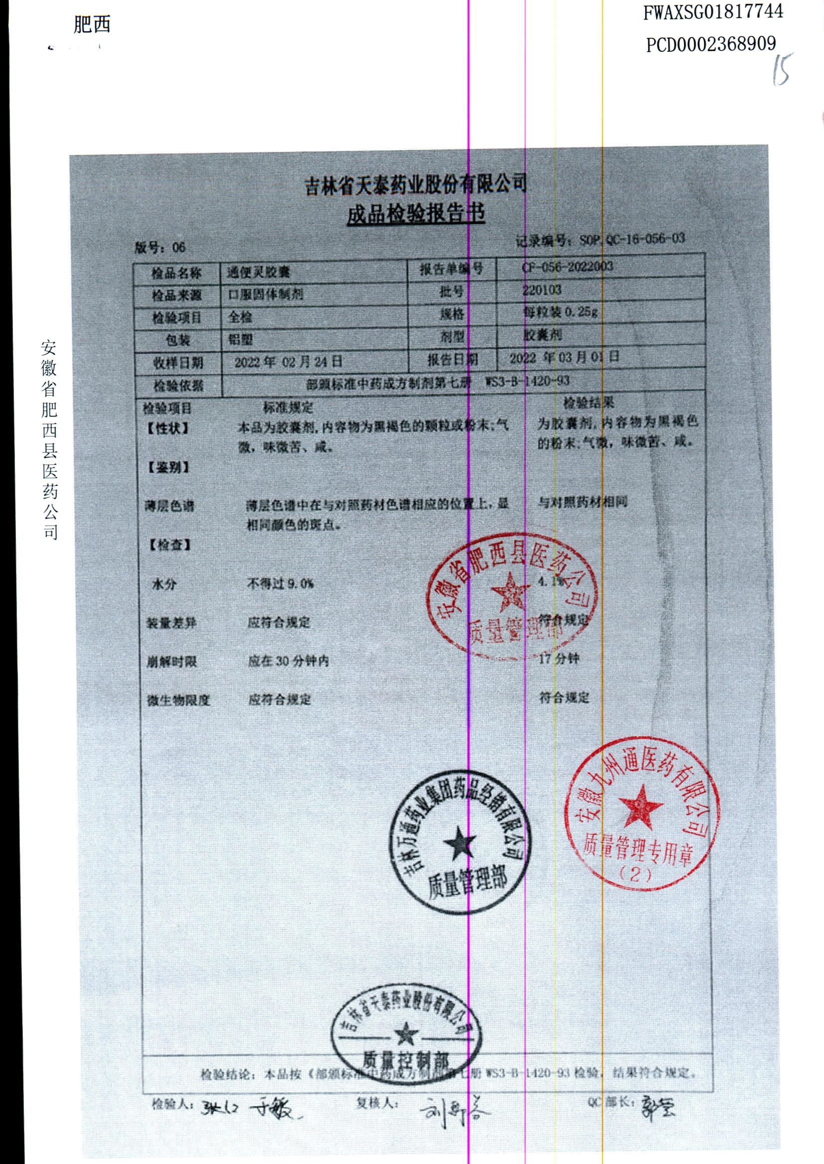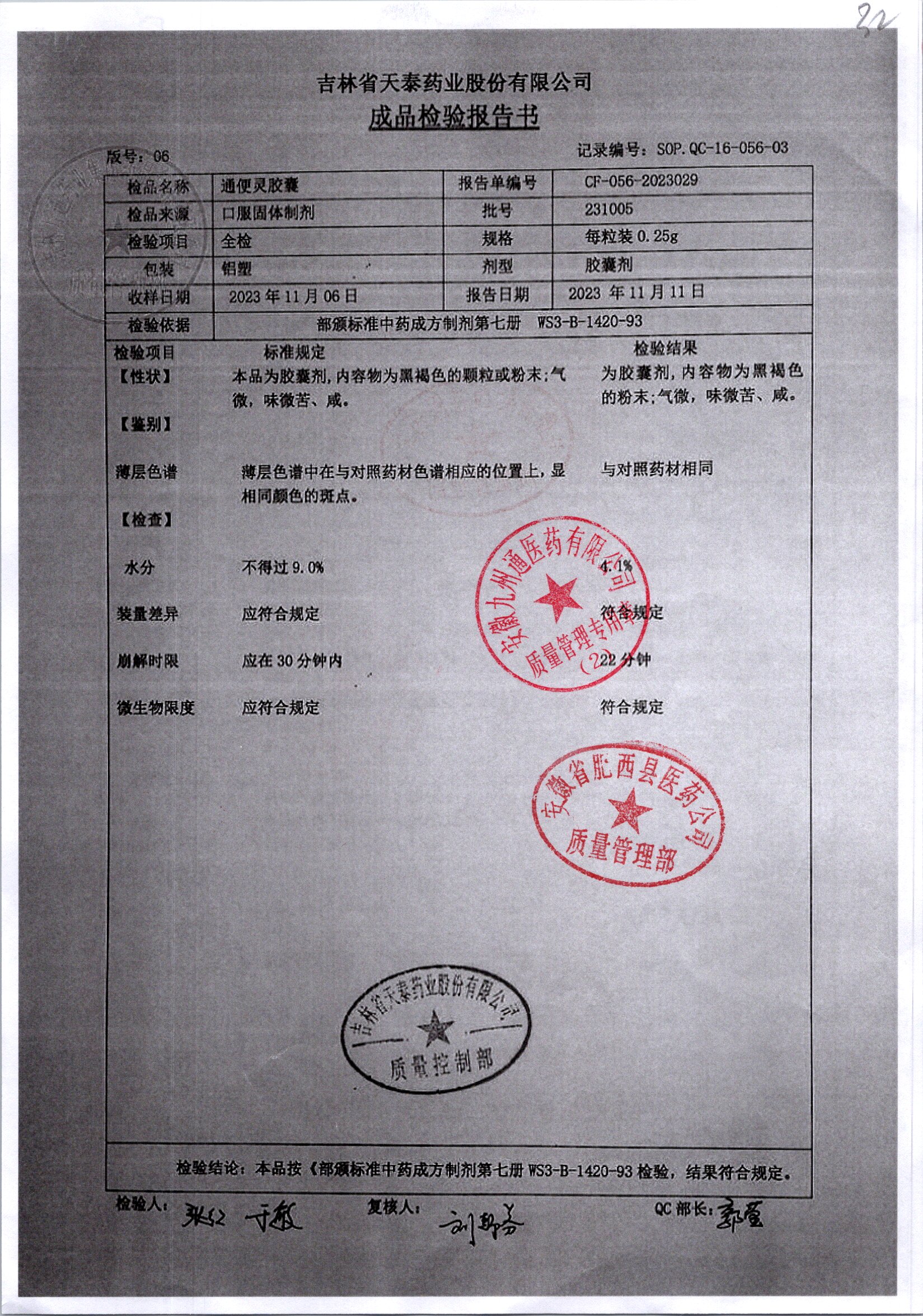 通便灵胶囊 | 0.25g | 220603 | 查看详情 |