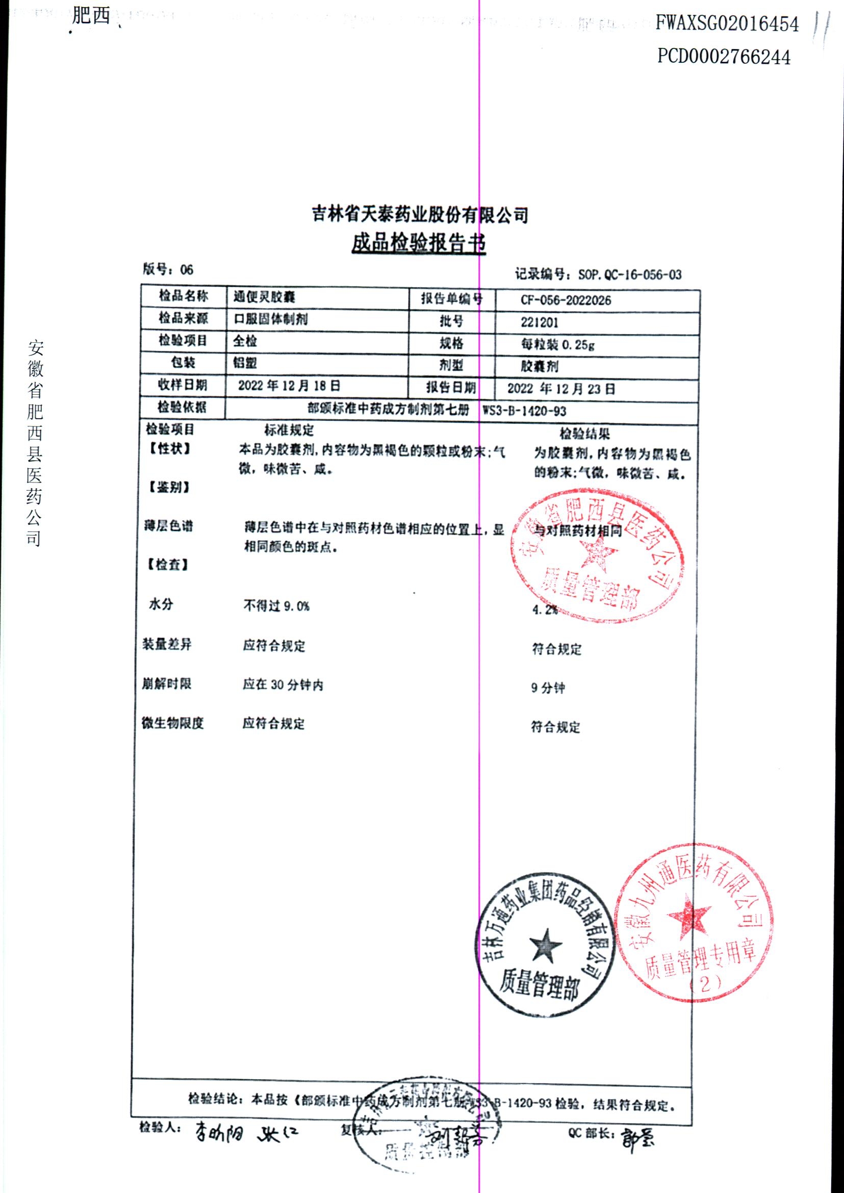 通便灵胶囊 | 0.25g | 221202 | 查看详情 |