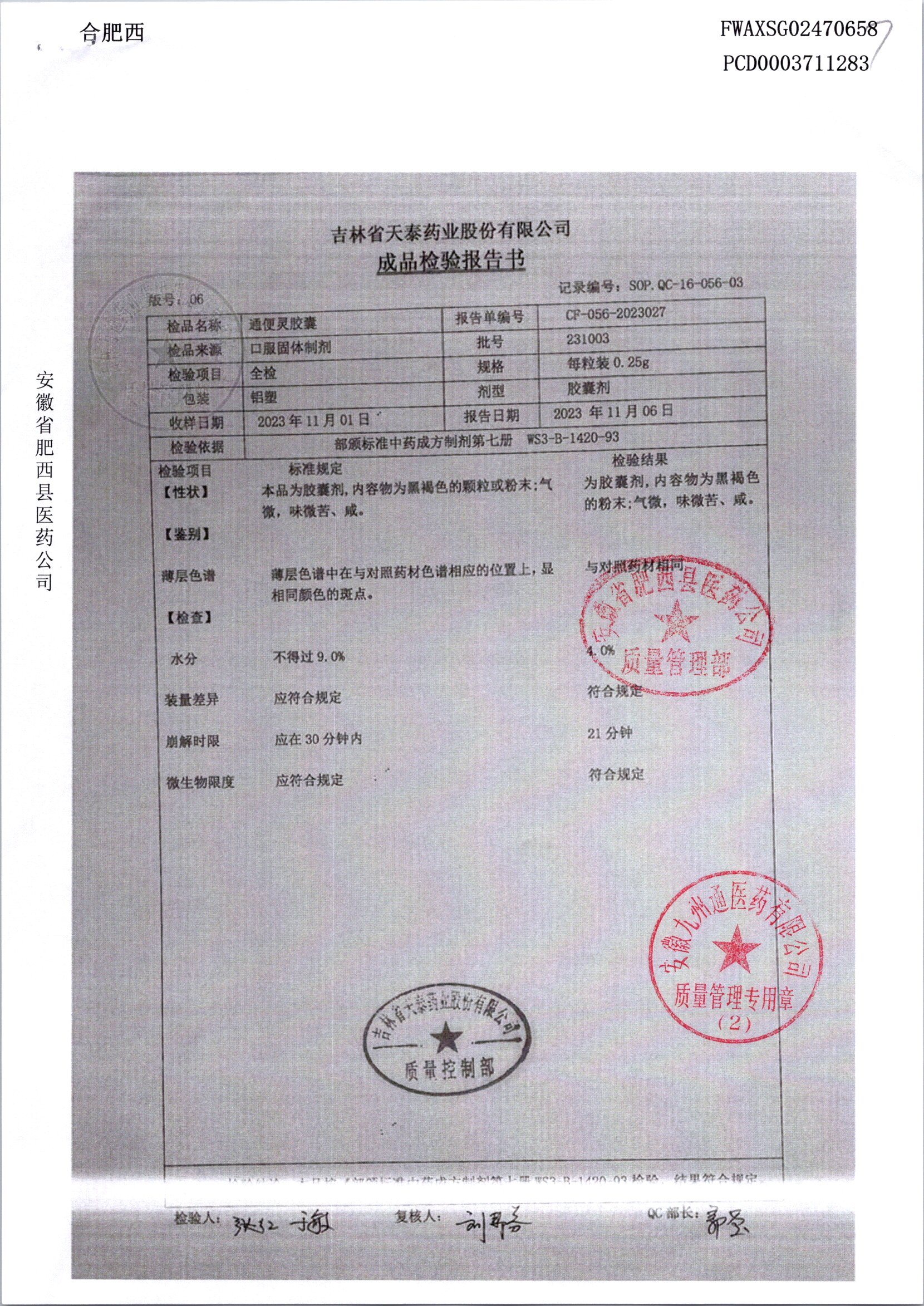 通便灵胶囊 | 0.25g | 240303/2 | 查看详情 |