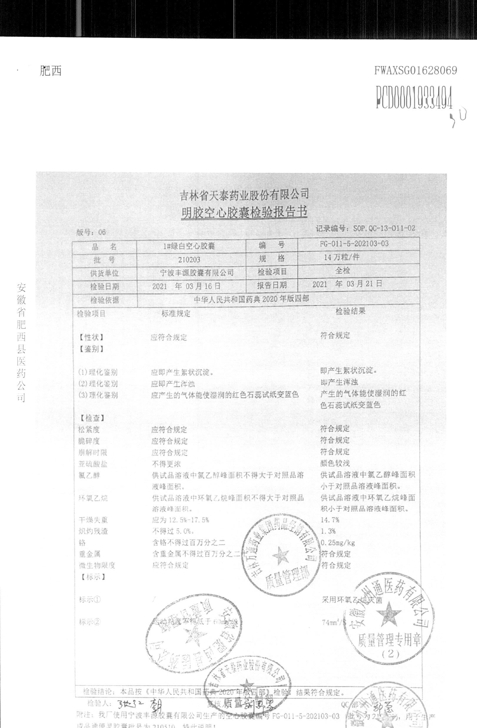 药检报告