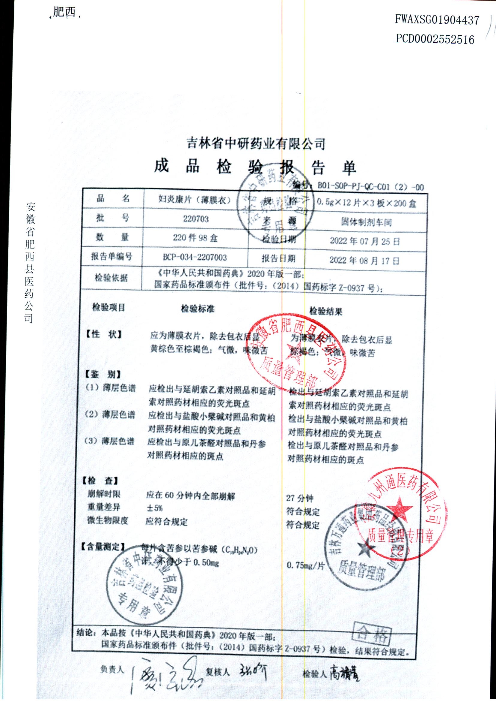 妇炎康片 | 0.5克x12片x3板 | 220703 | 查看详情 |