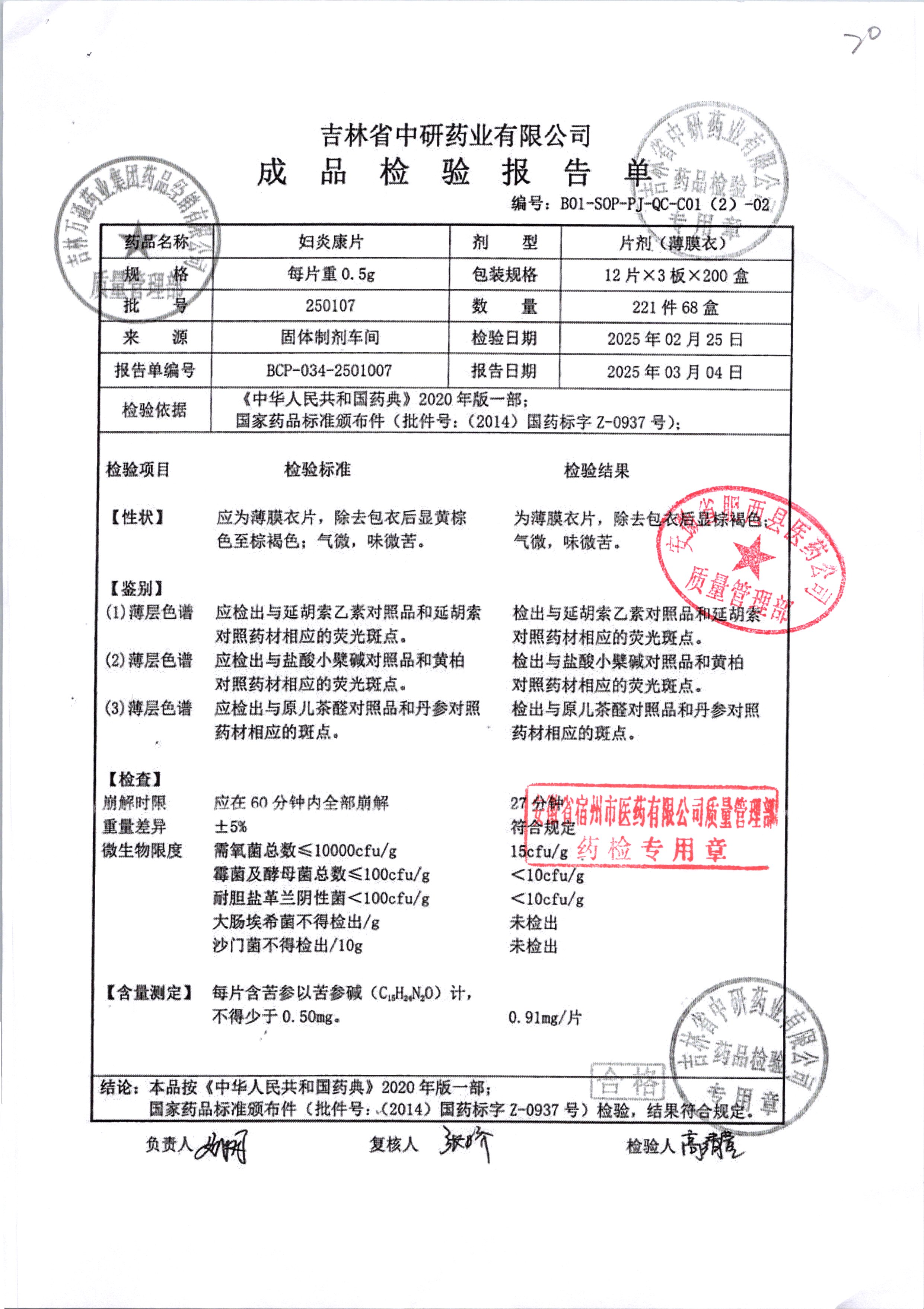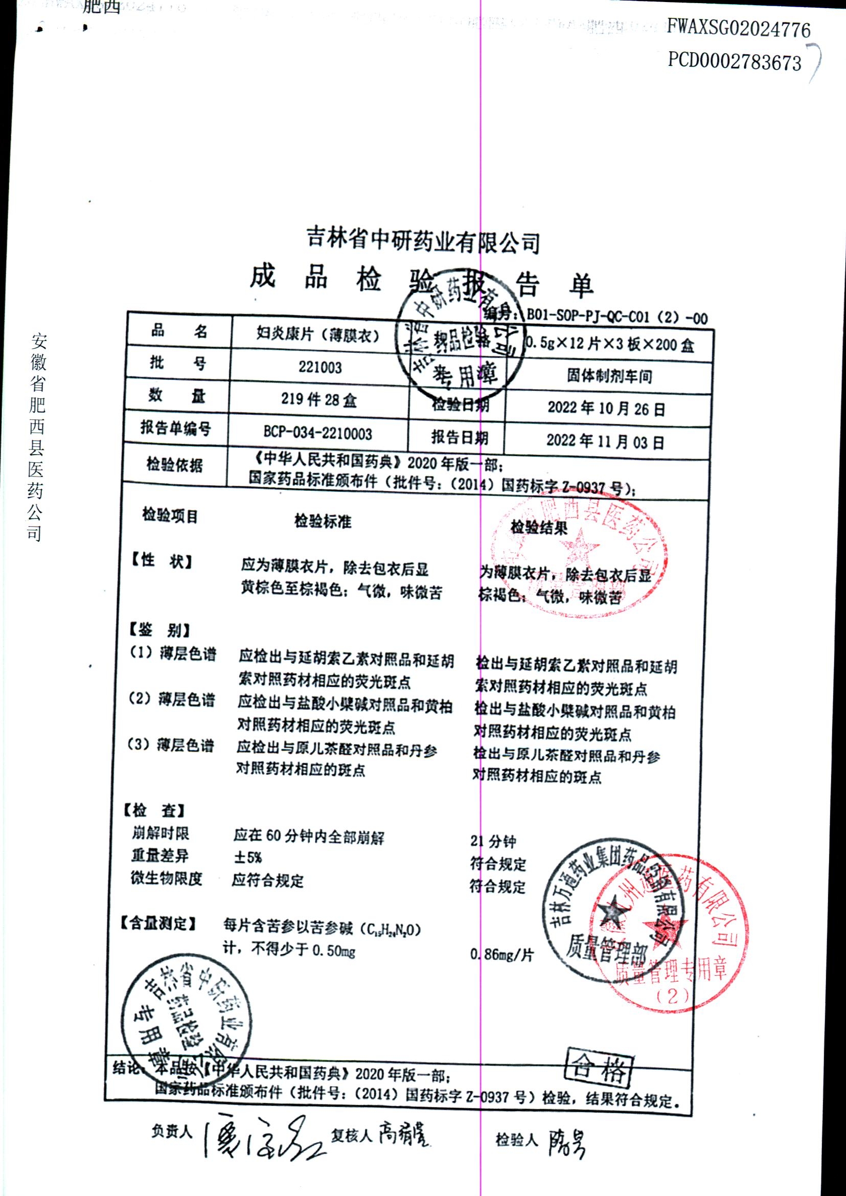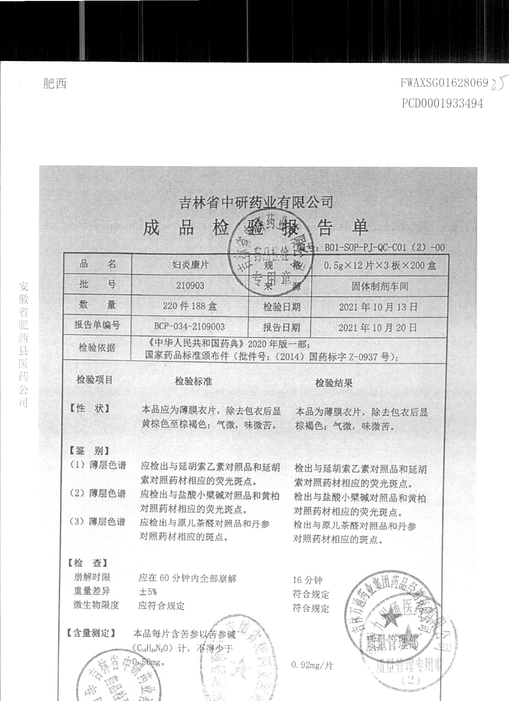 妇炎康片 | 0.5克x12片x3板 | 210903 | 查看详情 |