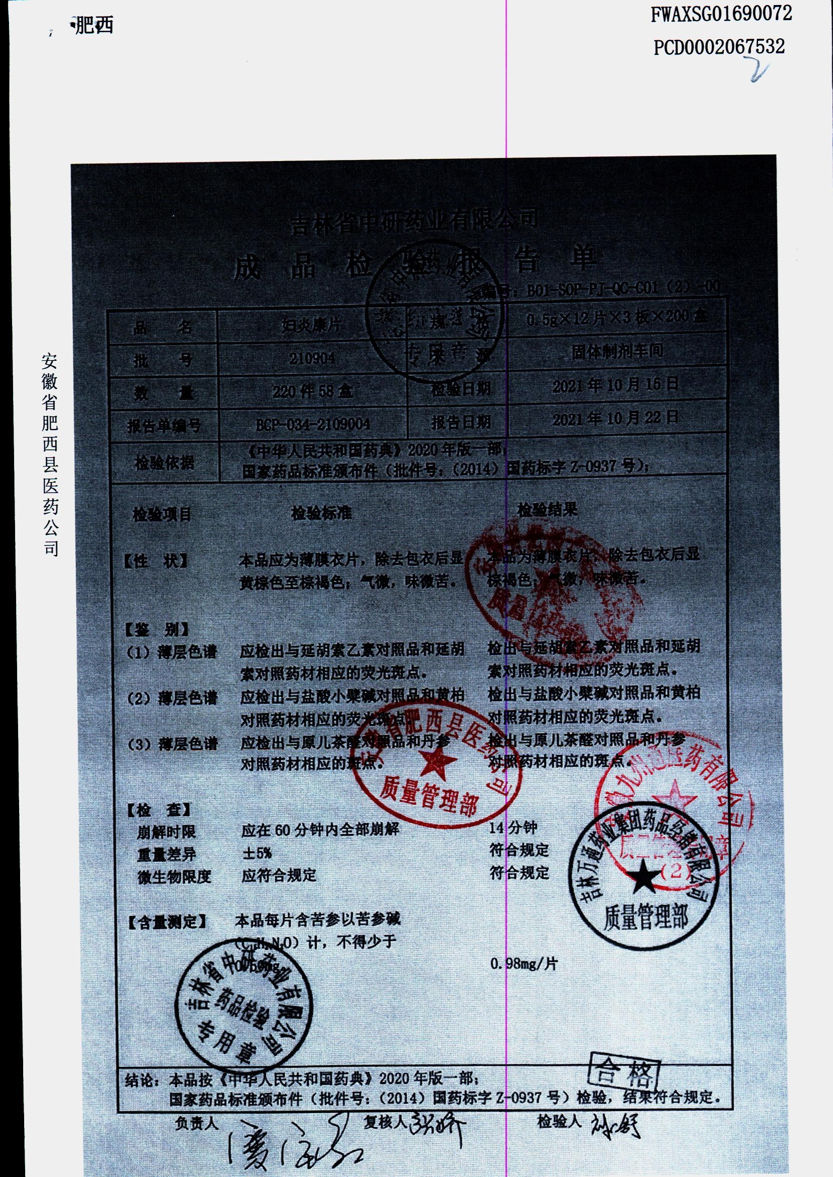 妇炎康片 | 0.5克x12片x3板 | 210904 | 查看详情 |