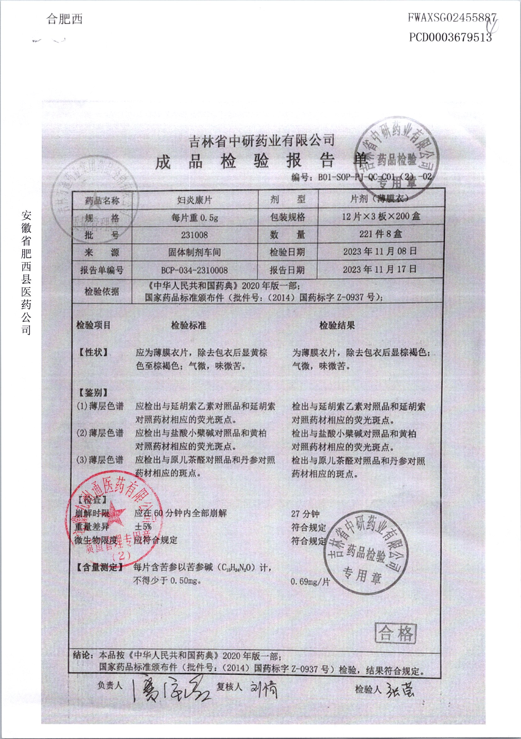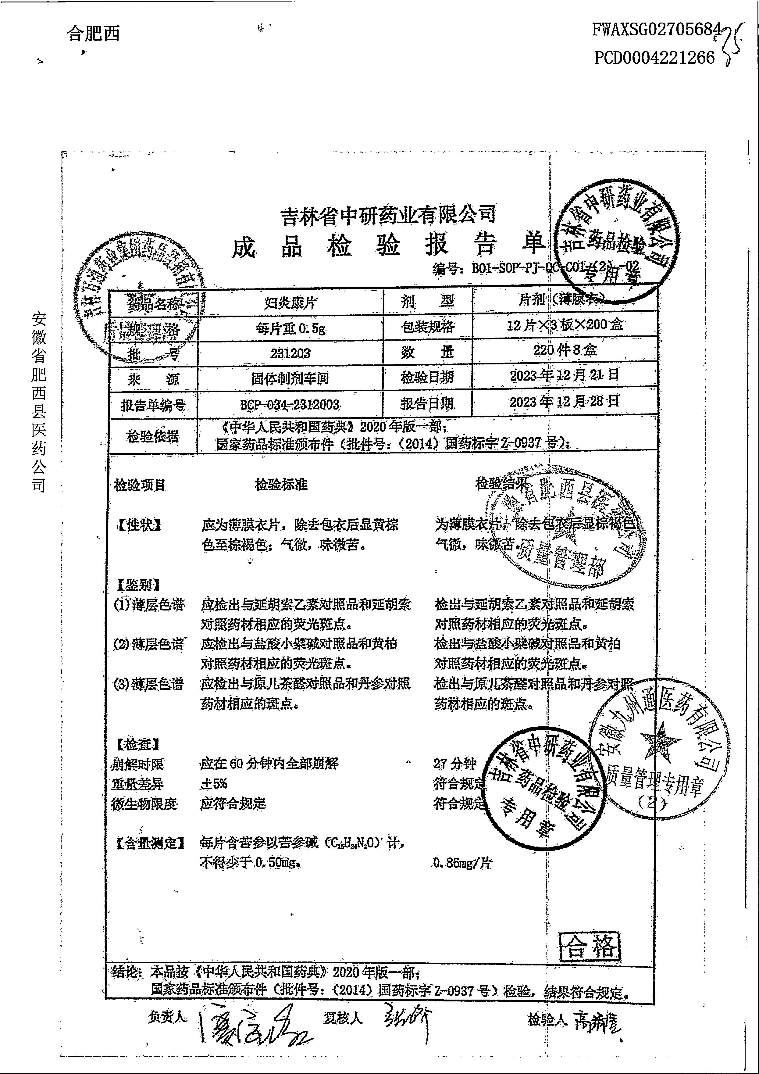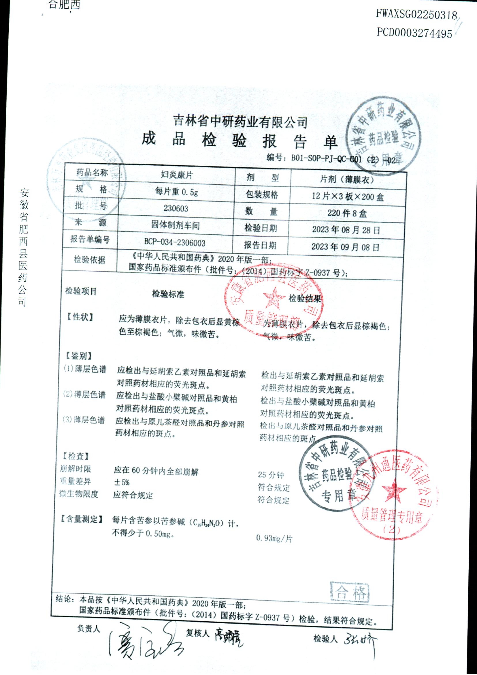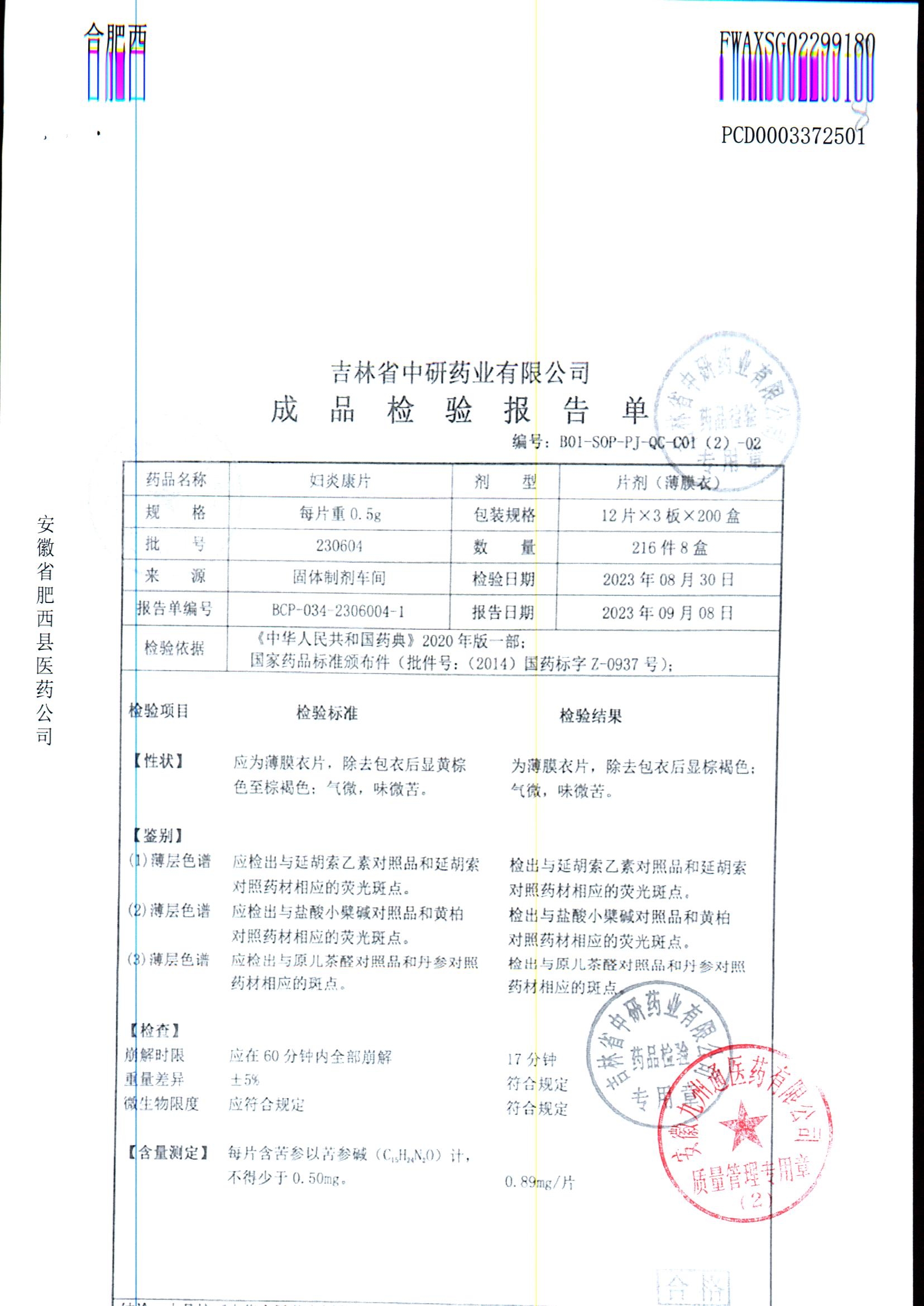 妇炎康片 | 0.5克x12片x3板 | 231203 | 查看详情 |