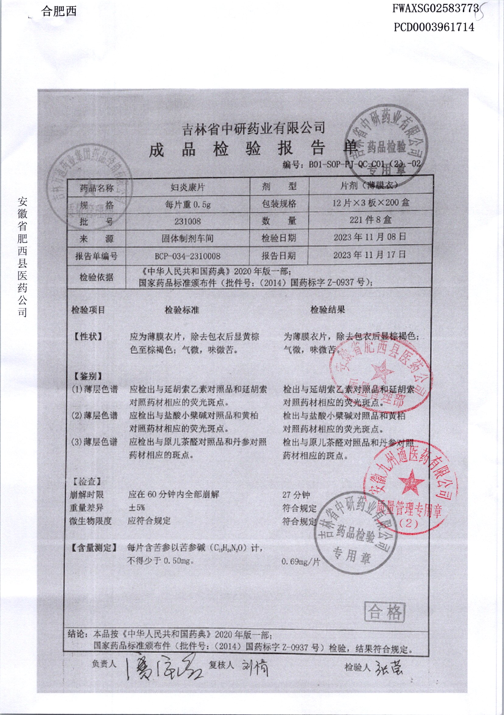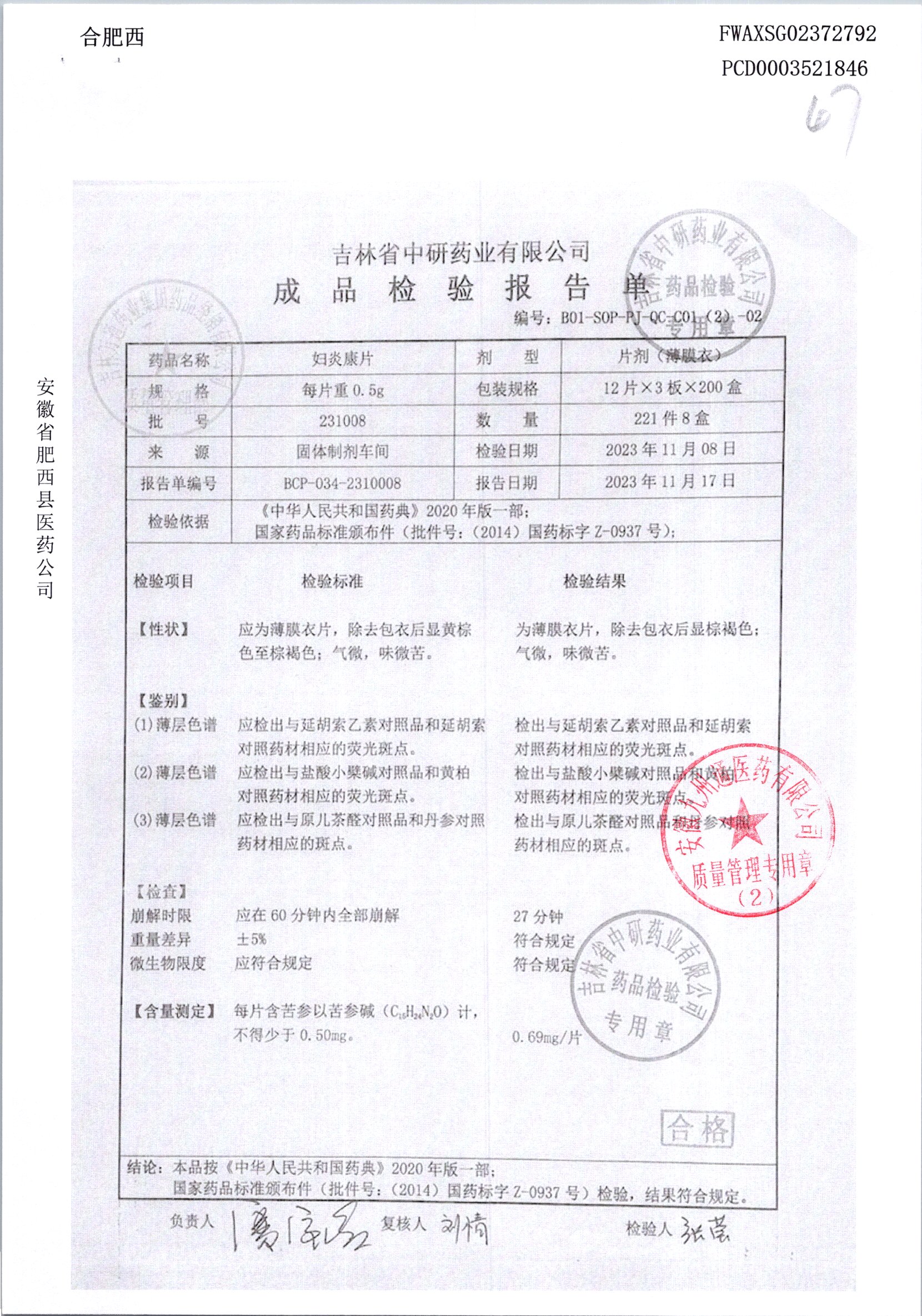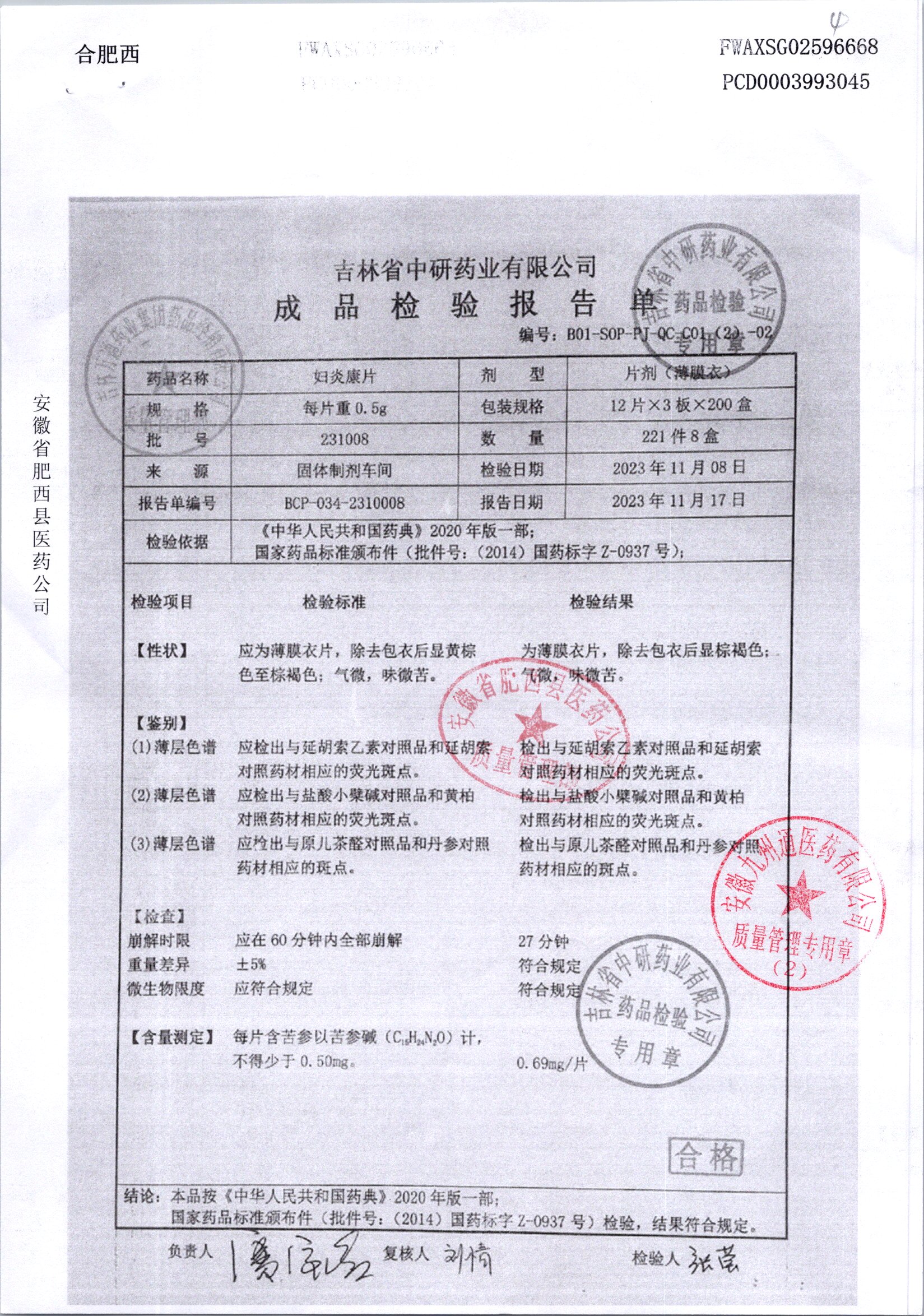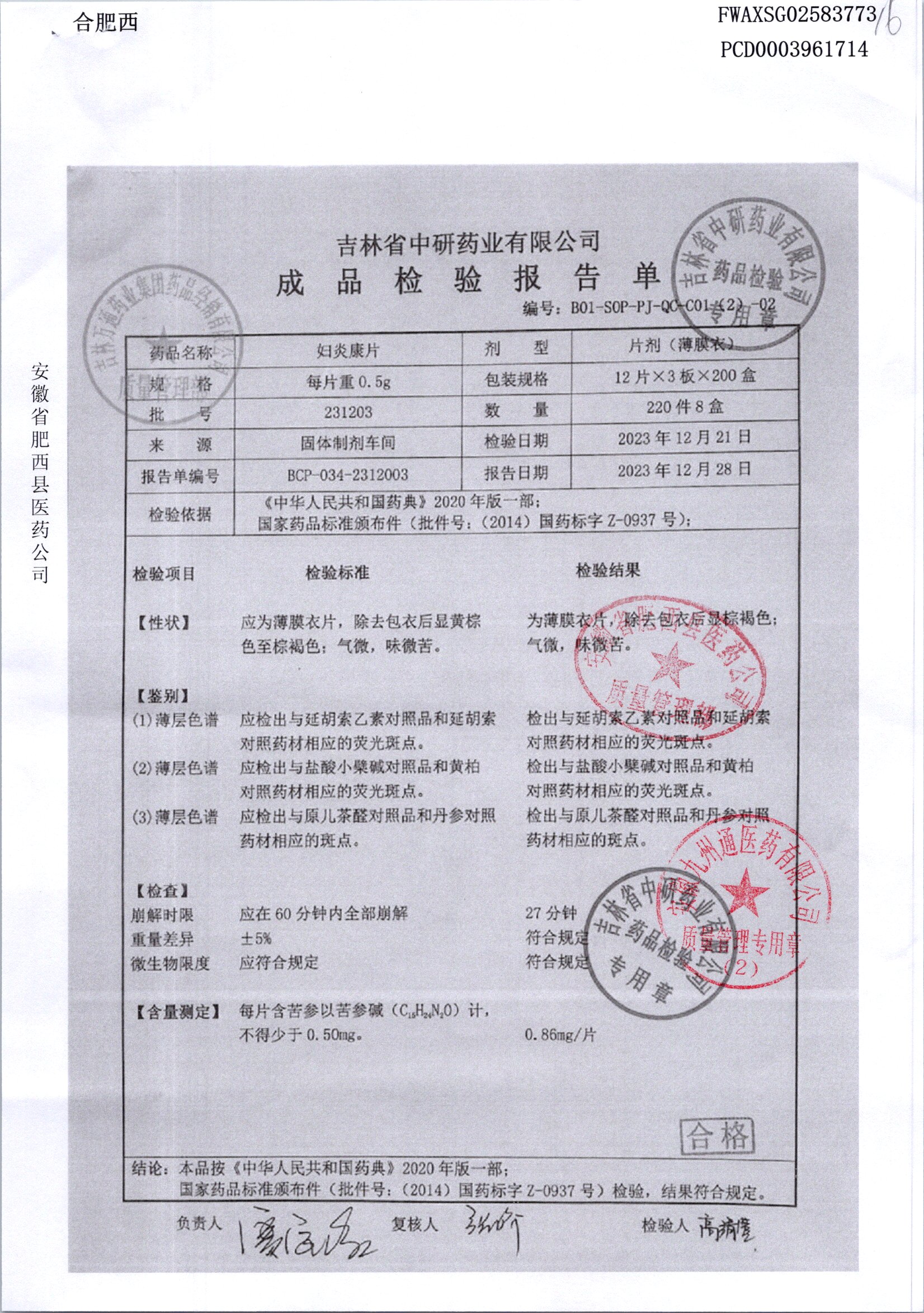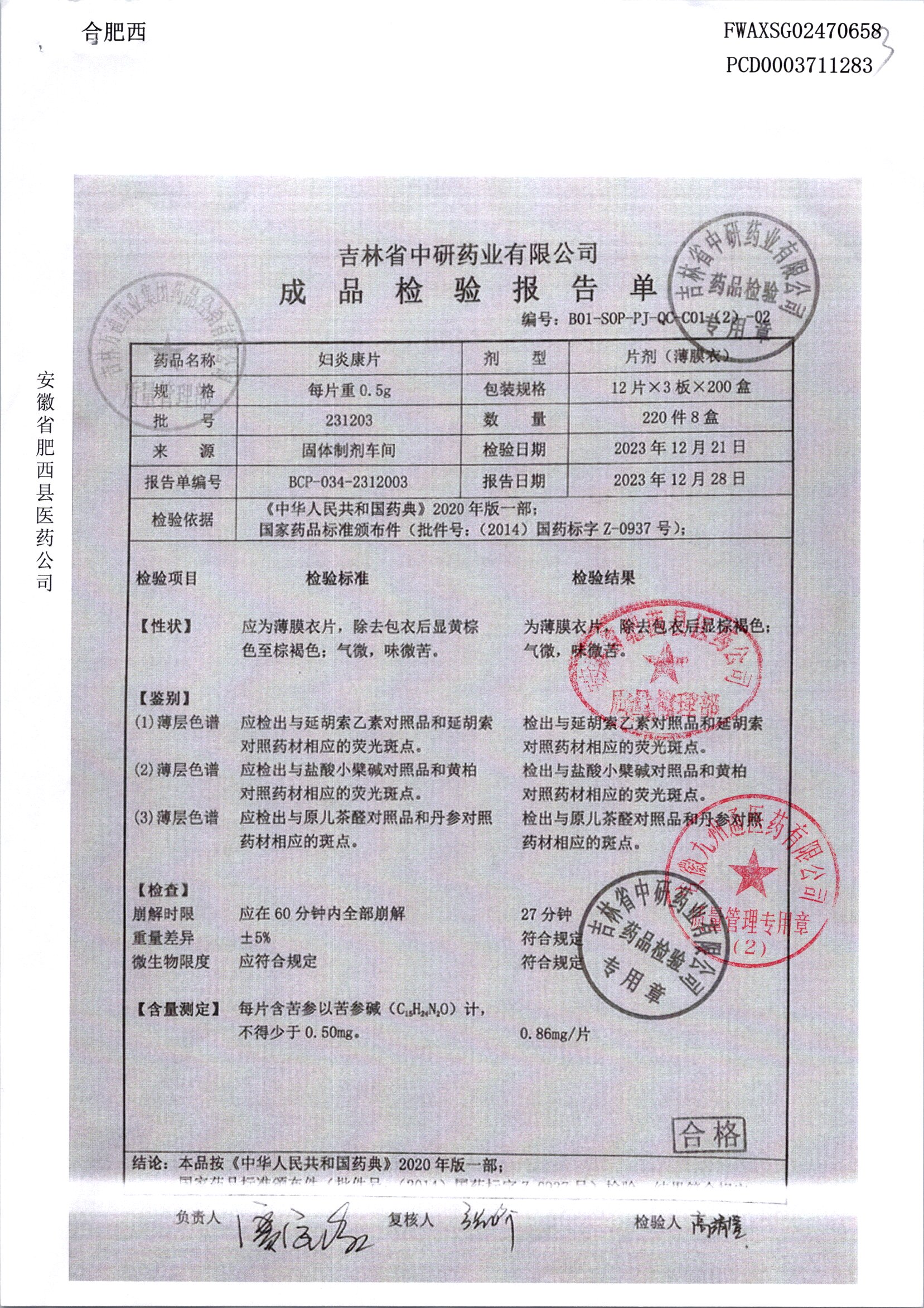 妇炎康片 | 0.5克x12片x3板 | 231203 | 查看详情 |