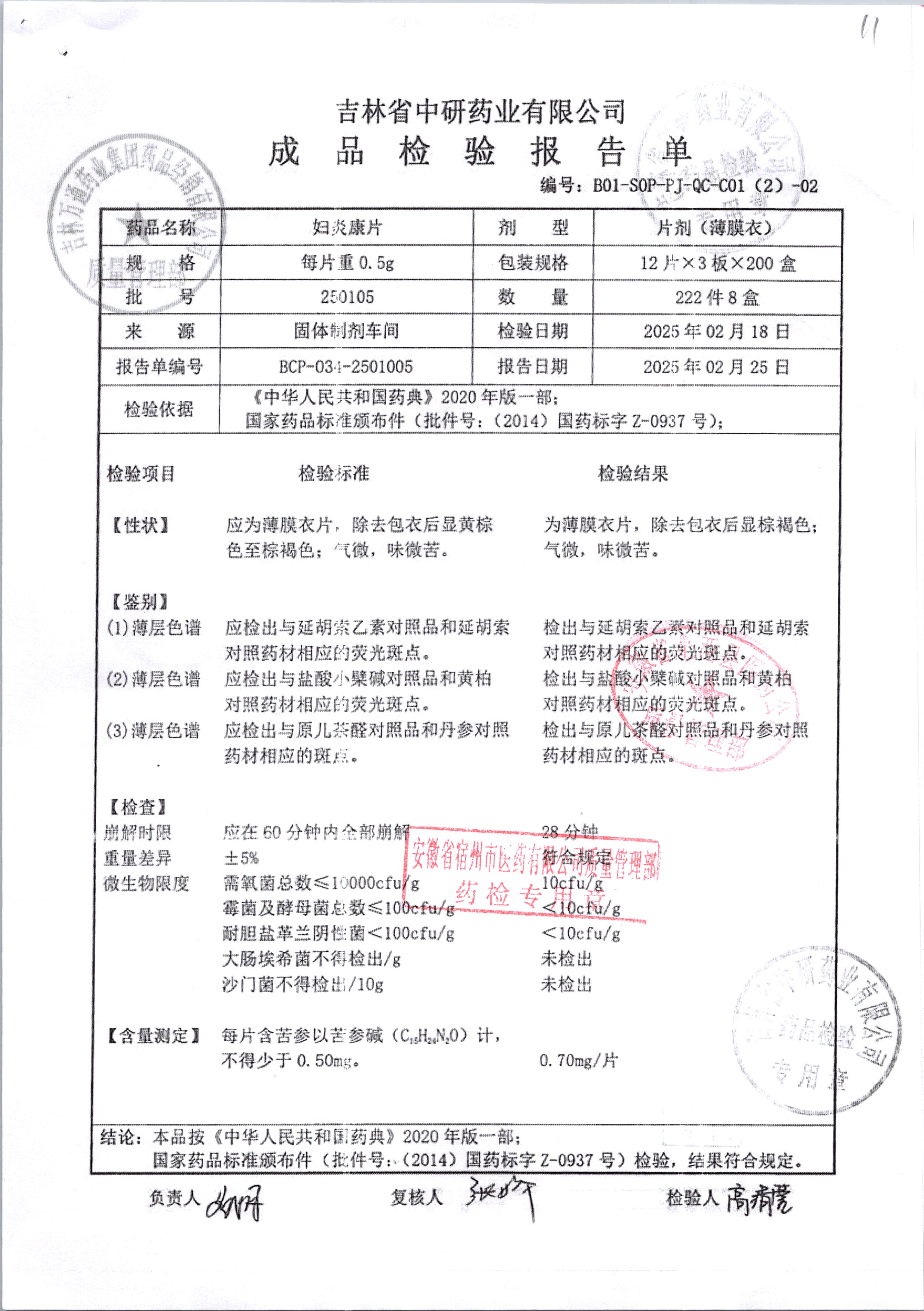 妇炎康片 | 0.5克x12片x3板 | 250105 | 查看详情 |