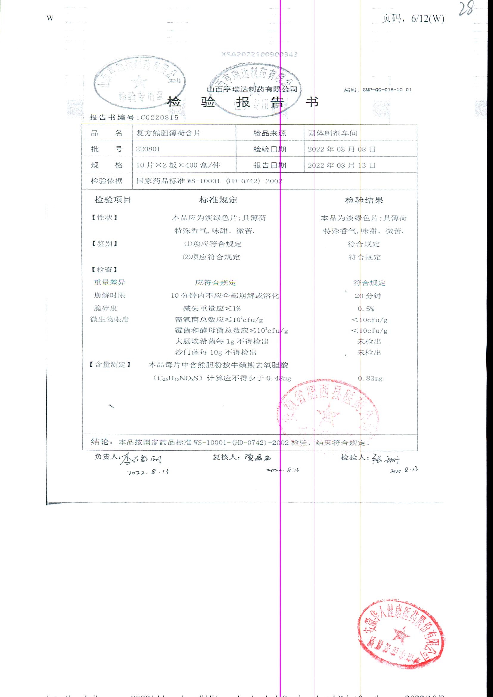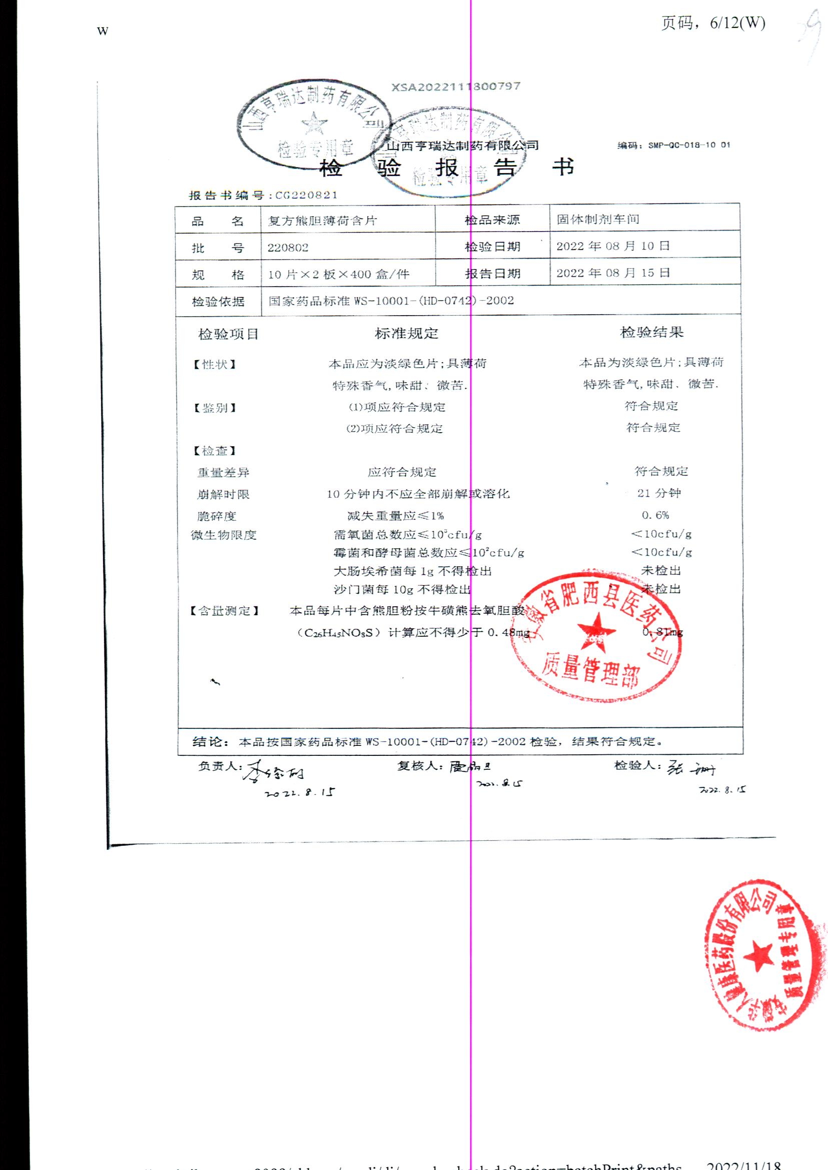 复方熊胆薄荷含片 | 20片 | 220802 | 查看详情 |