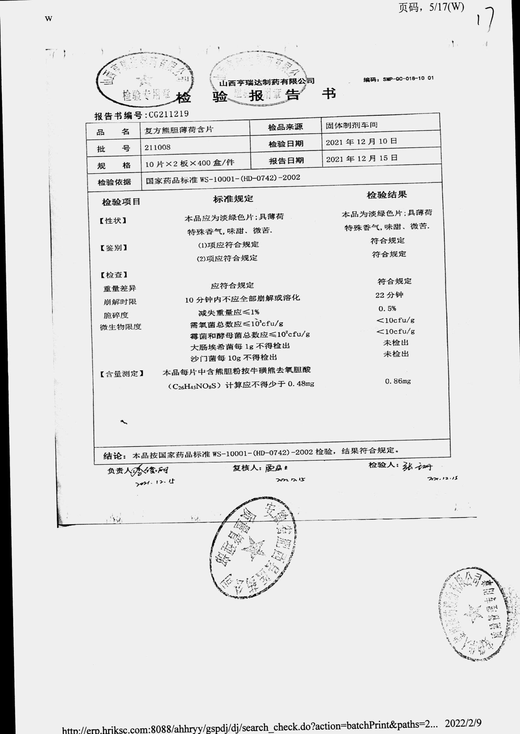 复方熊胆薄荷含片 | 20片 | 211008 | 查看详情 |