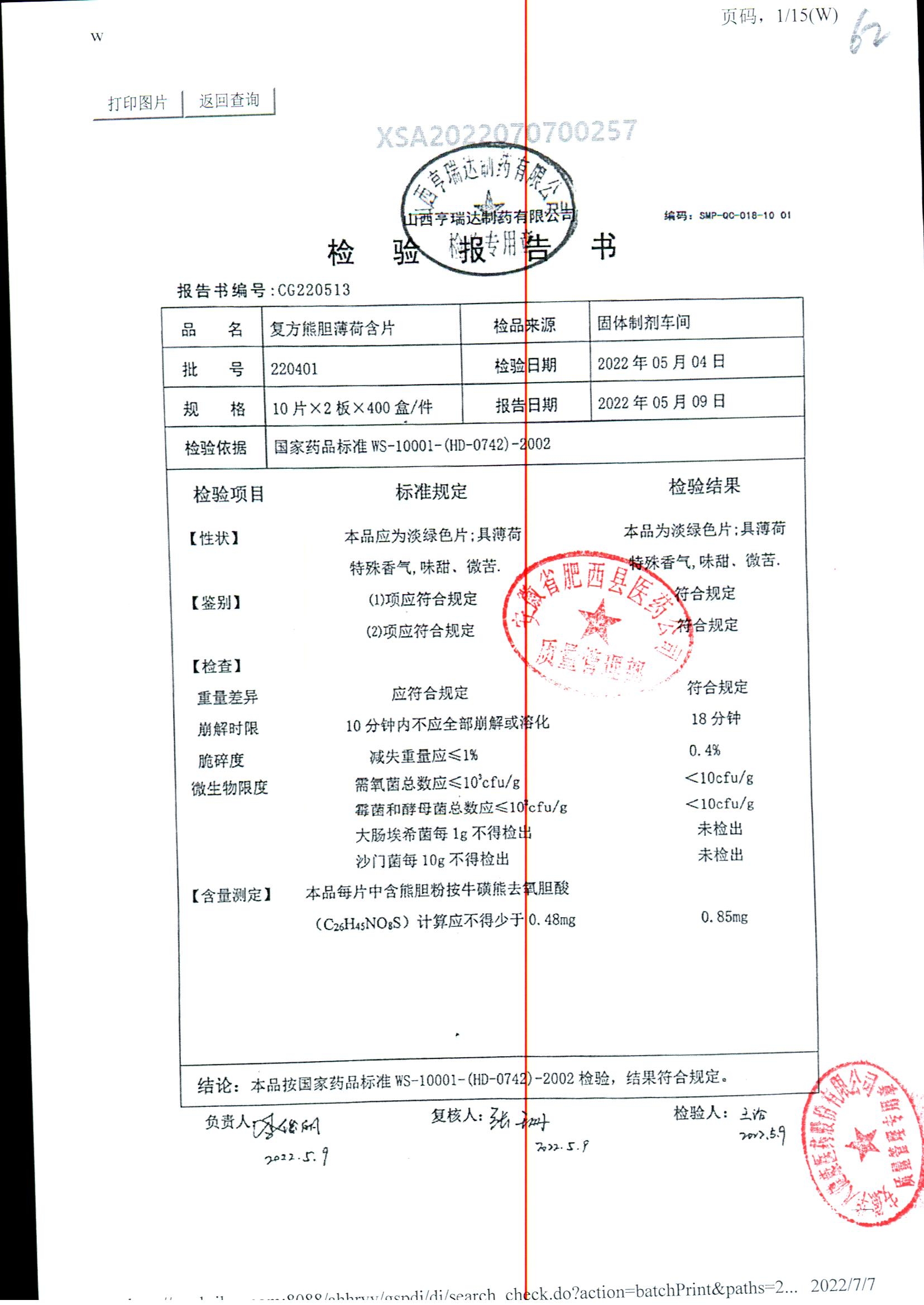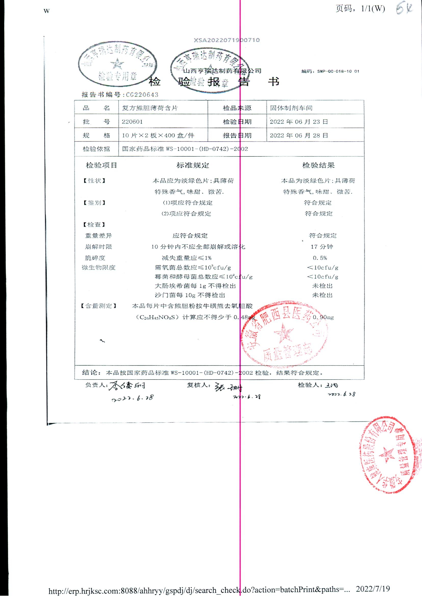 复方熊胆薄荷含片 | 20片 | 220401 | 查看详情 |
