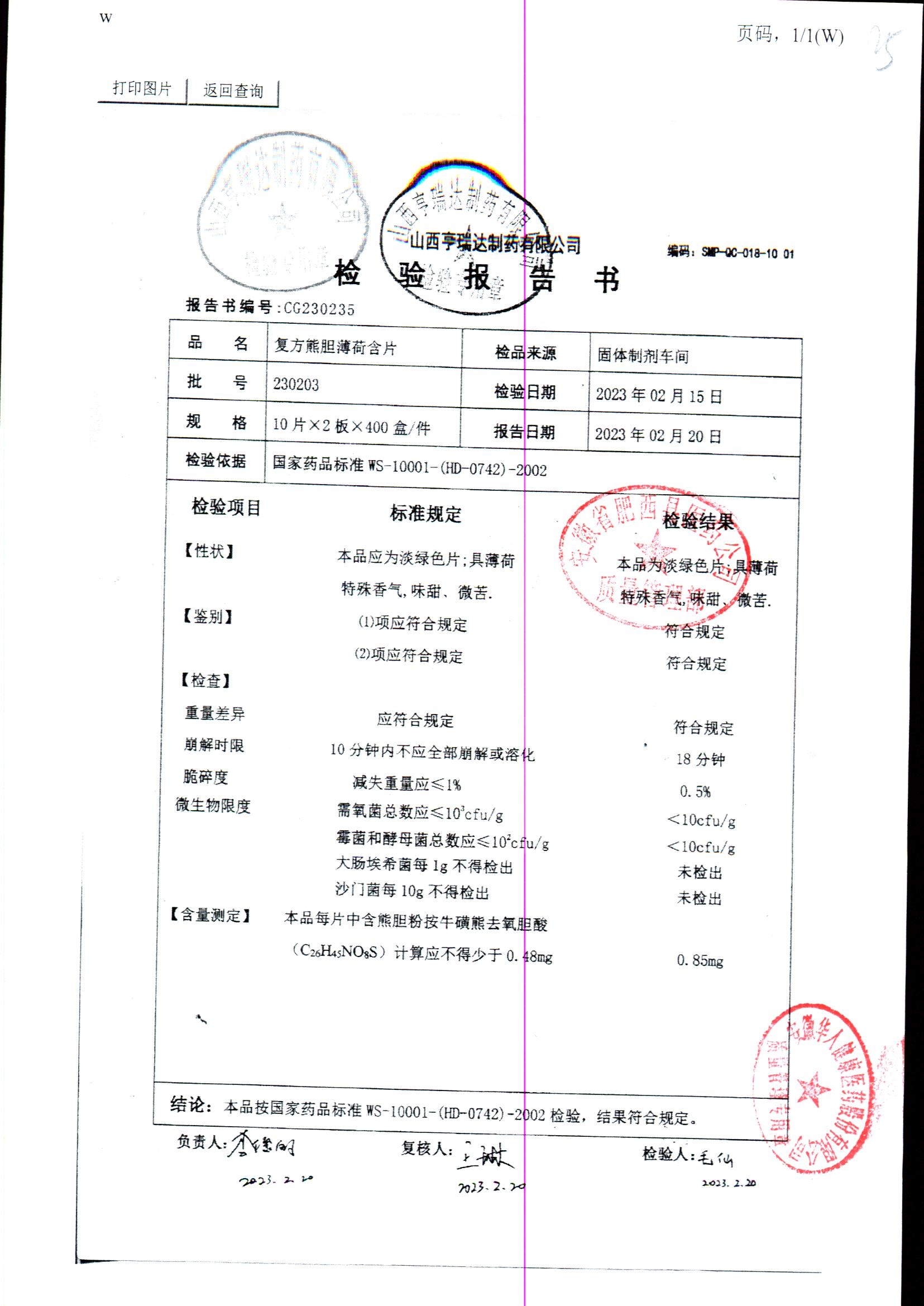 复方熊胆薄荷含片 | 20片 | 230203 | 查看详情 |