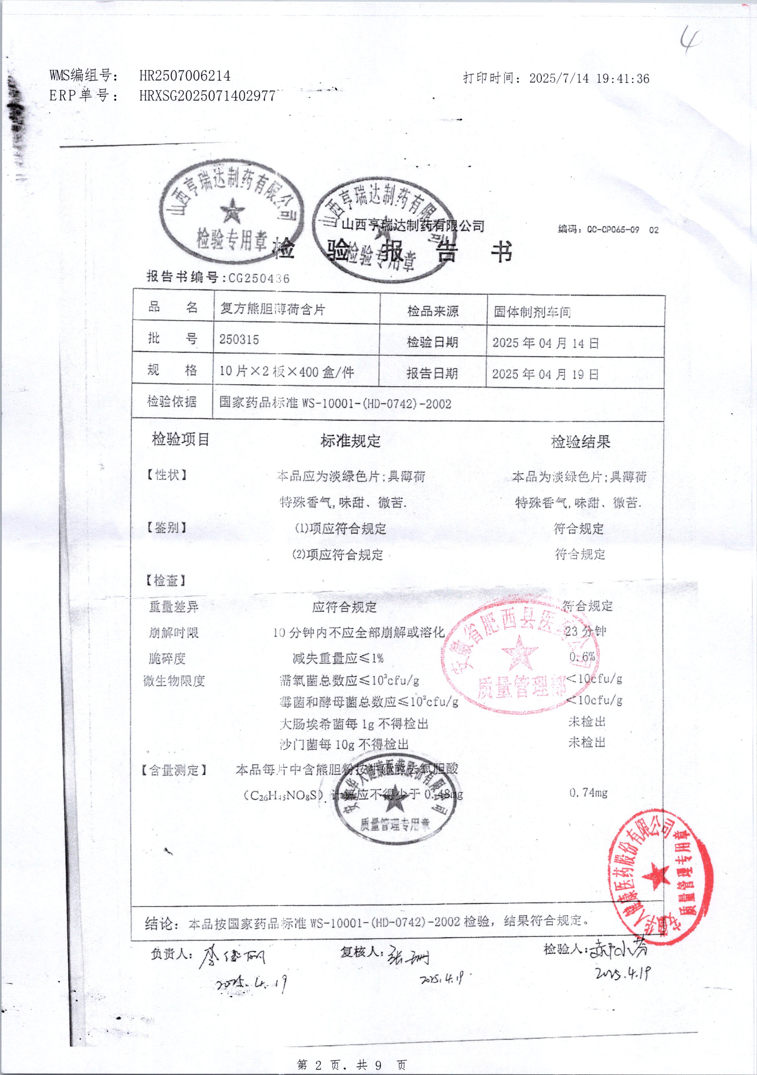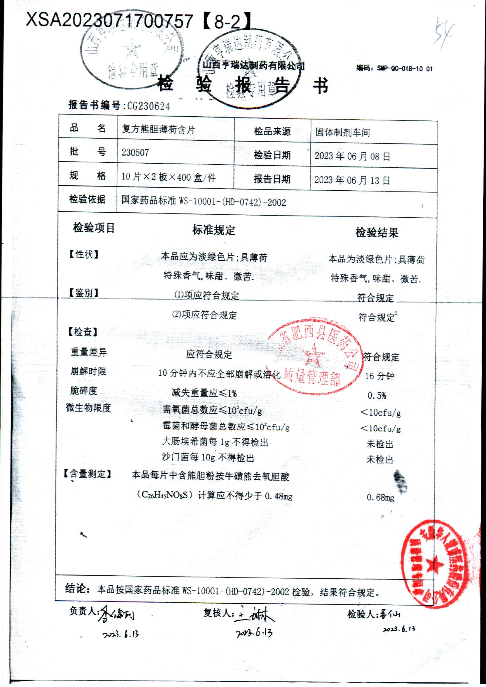 名称 | 规格 | 批号 | 药检报告 |
