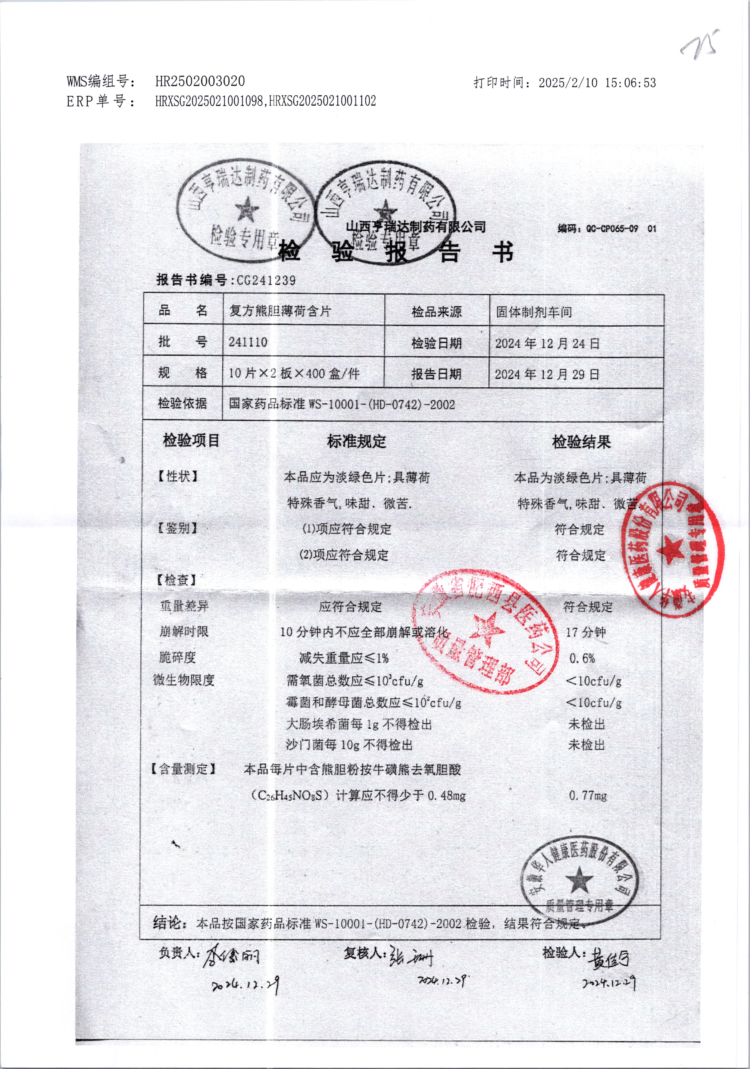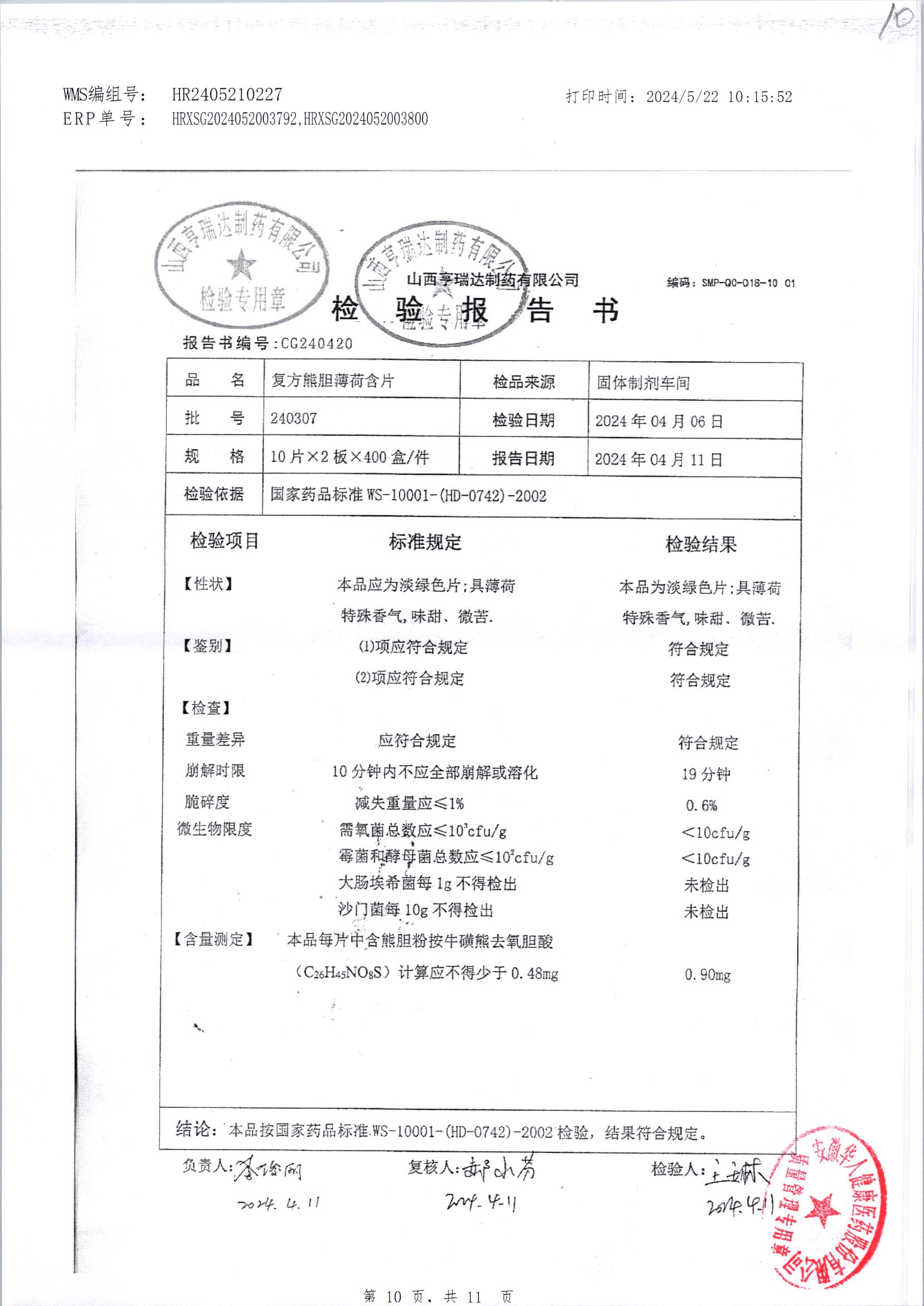 复方熊胆薄荷含片 | 20片 | 241110 | 查看详情 |
