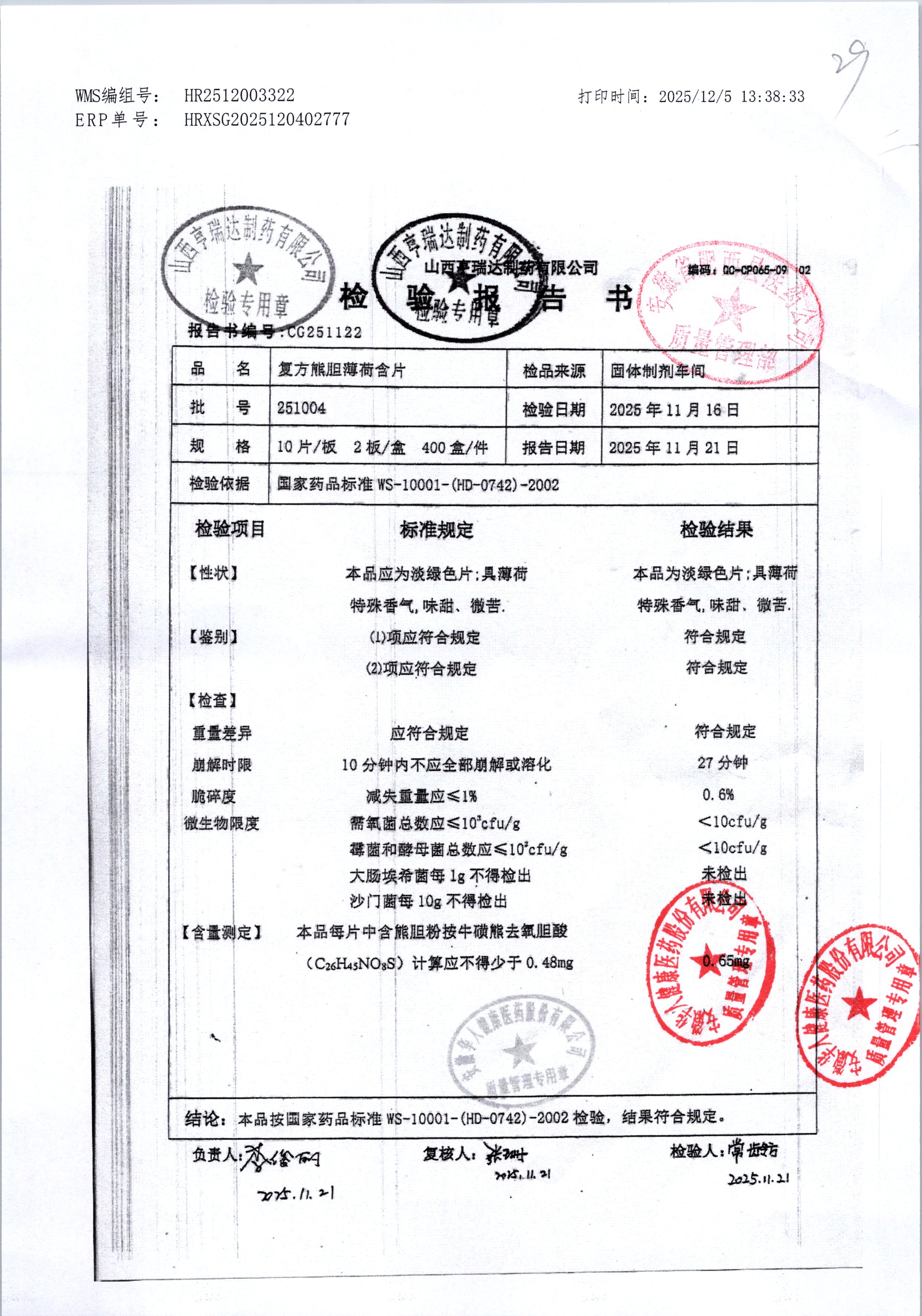 | 复方熊胆薄荷含片 | 20片 | 251004 | 查看详情 |